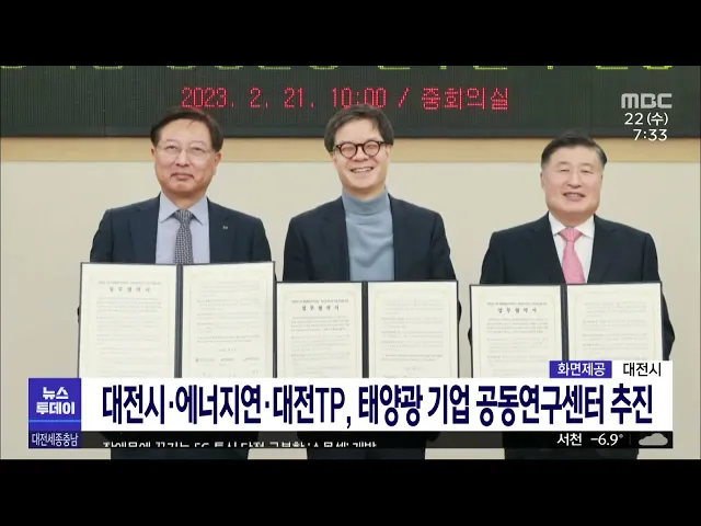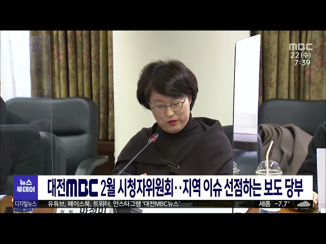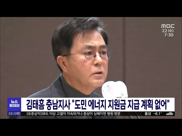 뉴스투데이 뉴스데스크뉴스투데이뉴스데스크 VOD(전체 다시보기)뉴스투데이 VOD(전체 다시보기)유튜브뉴스페이스북 뉴스카카오톡 뉴스인스타그램 뉴스 prev 2023.2.22 - 수요일 next '충청 당심 잡아라' 차기 당권주자 총출동/투데이 ◀앵커▶ 국민의힘 지도부 선출을 보름여 앞두고 차기 당권 주자와 최고위원 후보들이 충청권 합동연설회가 열린 대전을 찾았습니다. 특히 내년 총선 공천권이 걸린 전당대회가 100% 당원투표 방식으로 치... 김태욱 대전시, 에너지 요금 인상 종합대책 발표 대전시가 최근 급등한 가스 요금 등으로 어려움을 겪는 식품·위생업소 3만 6천여 곳을 대상으로 에너지 지원금 20만 원을 지급합니다. 또, 2월에서 4월까지 음식점 등 소상공인 도시가스 사용요금 납부를 ... 김태욱 김태흠 충남지사 "도민 에너지 지원금 지급 계획 없어" 김태흠 충남지사가 난방비 급등 사태와 관련해 모든 도민에게 에너지 지원금을 지급할 계획이 없다고 밝혔습니다. 김태흠 지사는 도의회 본회의에서 더불어민주당 안장헌 도의원의 관련 질문에 예산과 재... 이승섭 민선 8기 충남도정 '공방'/투데이 ◀앵커▶ 어제) 충남도의회에서 열린 본회의에서는 민선 8기 충남도정을 두고, 여야간 치열한 공방이 벌어졌습니다. 국민의힘은 김태흠 충남지사의 도정에 힘을 실었는데, 더불어민주당은 도지사는 정치인... 이승섭 대전시·에너지연·대전TP, 태양광기업 공동연구센터 대전시와 한국에너지기술연구원, 대전테크노파크가 `태양광기업 공동활용 연구센터 운영과 에너지기업 육성을 위한 업무협약`을 맺었습니다. 이에 따라 에너지기술연구원은 다음 달 말 완공될 태양광 연구... 최기웅 세종 시·신협·자율방재단연합회 지진 성금 전달 세종시와 지역 금융계, 직능단체 등이 강진 피해로 고통받는 튀르키예와 시리아를 돕기 위해 나섰습니다. 최민호 세종시장은 대한적십자사 대전세종지사에 시 공직자들이 자발적으로 모은 성금 천525만5천... 최기웅 계룡시, 사각지대 취약계층 384가구에 난방비 지급 계룡시가 에너지바우처 지급 사각지대에 놓인 취약계층을 대상으로 난방비를 긴급 지원합니다. 지원 대상은 기초생활수급자 또는 차상위 계층임에도 에너지바우처 지급요건에 해당하지 않아 난방비를 지원... 김태욱 세종 시내버스 전면 무료화..기대·우려 교차/투데이 ◀앵커▶ 최민호 세종시장이 대표 공약 중 하나인 '시내버스 전면 무료화' 추진을 공식화했습니다. 최근 대구시에 이어 대전시가 추진 중인 70세 이상 버스비 무료 정책 보다 한발 더 나간 건데요. 단순 복... 윤웅성 주차장서 쓰러진 환자 살린 사회복무원에 감사패 대전성모병원은 병원 주차장에서 심정지 상태로 쓰러진 60대를 구한 사회복무요원에게 감사패를 전달했습니다. 성모병원 등에 따르면 지난달 25일 병원 주차장에서 60대 환자가 급성 심근경색을 일으켜 쓰... 뉴스팀 충남소방본부, 지난해119 신고 72만 8천여 건 지난해 충남소방본부에 119 신고가 72만 8천여 건에 달하는 것으로 집계됐습니다. 이는 전년보다 3천여 건 증가한 것으로 하루 평균 2천여 건의 신고를 접수했는데, 충남소방은 43초에 한 번씩 119 종합상... 박선진 대전MBC 2월 시청자위원회 대전문화방송 2월 시청자위원회가 열려 이달 프로그램과 보도를 평가하고 발전 방향을 논의했습니다. 위원들은 난방비 부담 등 에너지 빈곤층에 대해 관심을 촉발시킨 보도와 함께 원도심 상생발전기금 문... 최기웅 "뭔가 수상" 보이스피싱 막아낸 은행원들/투데이 ◀앵커▶ 요즘 은행원들의 눈썰미가 경찰 못지않습니다. 보이스피싱에 속아 거액의 현금을 찾으려는 고객들을 은행원들이 기지를 발휘해 잇따라 막아냈습니다. 보도에 김지혜 기자입니다. ◀리포트▶ 20대 여... 김지혜 대전시, 노후 경유차 조기폐차 4등급까지 확대 시행 대전시는 노후경유차 조기폐차 지원사업 대상을 4등급까지 확대하고, 신청을 접수합니다. 올해부터는 매연저감장치가 부착되지 않은 4등급 경유차량과 2009년 9월 이전에 제작된 지게차와 굴착기도 지원 ... 조형찬 서산시, 하수처리수 재이용시설 가동한다 서산시가 이달 말부터 '공공 하수처리시설 처리수 재이용시설'을 본격 가동합니다. 시는 서산 공공 하수처리시설 부지에 109억 원을 들여 전체 830여㎡ 규모의 재이용시설을 조성했으며, 하루 2만 톤의 하... 뉴스팀 예산 옛 충남방적 공장 5년 내 철거 후 재탄생 20년 넘게 폐허로 방치된 예산군의 옛 충남방적 공장이 철거됩니다. 예산군은 앞으로 5년 동안 약 4백억 원을 투입해 공장을 철거하고, 주민 의견을 수렴해 지역에 활력을 불어넣는 공간으로 재창조한다는... 이승섭 세종시설공단 "윤달 맞아 은하수공원 개장 유골 화장 세종시시설관리공단은 다음 달 22일부터 4월 19일까지 윤달을 맞아 장사시설인 은하수공원의 분묘 개장 유골 화장을 확대하기로 했습니다. 다만 코로나19 여파와 환절기 사망자 급증이 예상됨에 따라 일반... 최기웅 장애물에 끊기는 5G 통신 단점 극복할 '스몰셀' 개발 속도는 빠르지만 장애물에 쉽게 통신이 끊어지는 5세대 통신의 단점을 극복할 소형기지국 소프트웨어인 스몰셀이 개발