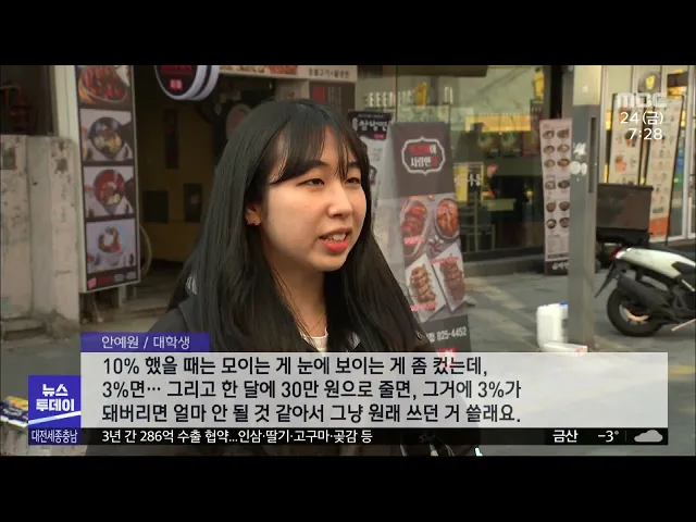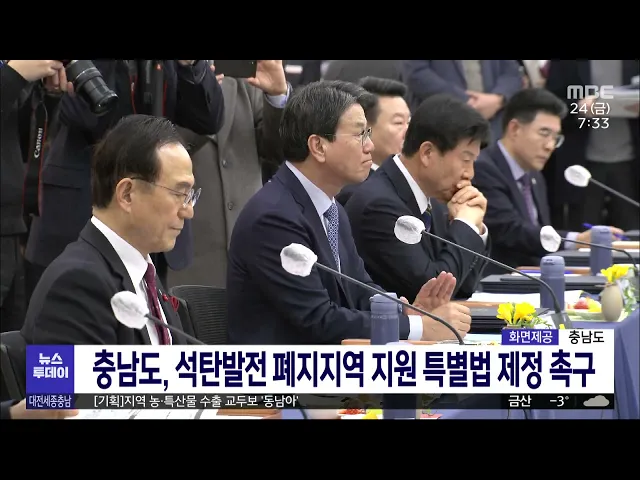 뉴스투데이 뉴스데스크뉴스투데이뉴스데스크 VOD(전체 다시보기)뉴스투데이 VOD(전체 다시보기)유튜브뉴스페이스북 뉴스카카오톡 뉴스인스타그램 뉴스 prev 2023.2.24 - 금요일 next 선별적 지역화폐 정책에 커지는 우려/투데이 ◀앵커▶ 온통대전 명칭 변경 및 캐시백 혜택 등을 대폭 축소하는 내용을 담은 개편안을 대전시가 내놨죠. 취약계층에게 맞춤형 지원을 제공하겠다는 선별적 복지에 대한 기대도 있지만 우려도 나오고 있습... 조형찬 충청권 내 수출 감소세 확대.."세계 경기 침체 본격" 세계적인 경기 침체가 본격화하면서 지역 내 수출 감소세가 큰 폭으로 확대되고 있는 것으로 나타났습니다. 한국무역협회 대전세종충남지역본부에 따르면, 지난달 기준 전년 대비 수출이 대전 24.8%, 세종... 윤웅성 시민단체 "세종의사당 설치 국회규칙 2월 임시국회서 세종참여자치시민연대는 국회 세종의사당 설치 규칙이 국회 운영위원회에 상정된 것과 관련해, 국회가 2월 임시국회에서 여야 합의로 반드시 통과시켜야 한다고 촉구했습니다. 시민연대는 성명을 통해 세... 고병권 K농특산물 수출 교두보 '베트남'/투데이 ◀앵커▶ 지역 K농특산물의 세계 시장 진출 현황과 과제를 연속 보도해 드리고 있는데요. 동남아 시장으로 수출길에 오르는 지역 농특산물이 인삼이나 곶감 등 다양한 분야로 확산되고 있습니다. 특히 논산... 조형찬 충남도, 석탄발전 폐지지역 지원 특별법 제정 촉구 충남도와 15개 시군이 석탄발전 폐지 지역을 지원하기 위한 특별법 제정을 촉구했습니다. 김태흠 충남지사와 15개 시장·군수들은 서산시청에서 열린 도 지방정부회의에서 전국 화력발전소 절반이 자리한 ... 이승섭 대전·세종·충남 158명 뽑는 조합장 선거 437명 출마 다음 달 8일, 대전·세종·충남에서 158명을 뽑는 전국동시조합장선거에 437명이 출마한 것으로 집계됐습니다. 대전·세종·충남 선거관리위원회는 대전 46명, 세종 22명, 충남 369명이 후보 등록을 마쳤고, ... 김태욱 20년째 장학금 기탁 "어릴 적 생각에"/투데이 ◀앵커▶ 서산의 한 고등학교 졸업생들이 십시일반해 모은 장학금을 20년 가까이 어려운 후배들에게 줘 훈훈한 화제가 되고 있습니다. 선배들의 도움을 받은 후배들은 감사함을 원동력으로 다른 누군가에게... 김광연 2023 대전·세종·충남 보도영상전...28일까지 열려 제1회 대전·세종·충남 보도영상전이 대전시청 1층 전시실에서 개막해 오는 28일까지 계속됩니다. 지역에서는 처음 마련된 이번 보도영상전에는 대전·세종·충남 지역 방송 영상기자 회원들이 지역 곳곳을 ... 최기웅 과기연합대학원대, 박사 190명·석사 104명 학위수여 과학기술연합대학원대학교 UST가 어제 대학본부 강당에서 학위수여식을 열고, 박사 190명과 석사 104명 등 294명에게 졸업학위를 수여했습니다. UST는 박사학위를 받은 학생들의 평균 SCIE(에스씨아이이) ... 고병권 시티즌, 막강 공격진에 핵심 멤버 잔류①/투데이 ◀앵커▶ 프로축구 개막이 이번 주말로 다가왔죠. 대전하나시티즌이 8년 만에 K리그1에 승격하면서, 그 어느 때보다 지역 팬들의 기대감이 높은 상황인데요. 대전MBC는 시즌 개막을 앞두고 세 차례에 걸쳐 ... 윤웅성 부여군의회 의장, 여성공무원에 '일부종사' 발언 논란 부여군의회 장성용 의장이 여성 공무원을 대상으로 부적절한 발언을 했다는 주장이 제기돼 논란이 일고 있습니다. 국민의힘 소속 부여군의회 장성용 의장은 지난 21일 의회 임시회에서 업무보고를 받던 중... 김태욱 '5만 원 약사' 징역형 집행유예 선고 마스크와 반창고 등을 시중가격보다 훨씬 비싼 가격에 판매하고, 환불 요청도 제대로 들어주지 않은 혐의로 재판에 넘겨진 약사에게 집행유예가 선고됐습니다. 대전지법 형사5단독 김정헌 판사는 사기와 ... 윤웅성 충남 지역 장애인 보건의료센터 홍성의료원에 개소 충남 지역 장애인을 위한 전담의료센터가 홍성의료원에 마련됐습니다. '지역 장애인 보건의료센터'는 홍성의료원 의료진 7명이 근무하며, 여성 장애인의 임신과 출산을 돕고, 장애인 건강검진과 재활 치료... 이승섭 충남도, 중소기업·소상공인 금융 지원 확대 MOU 충남도와 NH농협은행 충남본부, 충남신용보증재단이 중소기업과 소상공인의 금융 지원을 확대하기 위한 업무 협약을 맺었습니다. 이에 따라 충남신용보증재단은 NH농협은행 충남본부가 출연할 51억 원을 ... 이승섭 대전고용노동청, 실업급여 부정수급자 66명 적발 대전고용노동청이 지난해 11월부터 석 달간 '실업급여 부정수급 특별점검'을 실시해 66명의 부정수급자를 적발했습니다. 노동청은 부정수급액과 추가징수액 등 2억 7천만 원에 대한 반환명령 조치에 더해 ... 박선진 공주시, 관내 경로당 431곳에 난방비 20만 원 지급 공주시가 최근 난방비 급등으로 어려움을 겪는 관내 모든 경로당 431곳에 긴급 난방비 20만 원을 지급합니다. 공주시는 한파쉼터로 등록된 경로당 337곳은 충청남도 재해구호기금으로, 한파쉼터에서 제외... 김태욱 충남교육청, 통학 차량 안전 수칙 강화 충남교육청이 통학 차량의 안전 수칙을 강화했습니다. 충남교육청은 운전원과 동승보호자, 탑승자의 안전 수칙