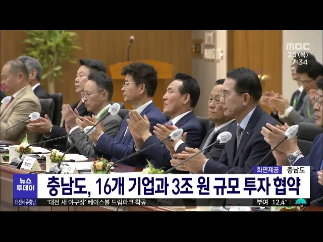 뉴스투데이 뉴스데스크뉴스투데이뉴스데스크 VOD(전체 다시보기)뉴스투데이 VOD(전체 다시보기)유튜브뉴스페이스북 뉴스카카오톡 뉴스인스타그램 뉴스 prev 2023.3.23 - 목요일 next "주택에서도 큰 피해"..곳곳서 대책 촉구/투데이 ◀앵커▶ 한국타이어 대전공장 대형 화재가 발생한 지 열흘이 지났는데요. 아직도 매캐한 냄새와 분진들이 현장 주변에 남아 있는 가운데 건강에 이상을 호소하는 주민들이 늘고 있어 우려스럽습니다. 윤웅... 윤웅성 충남도, 한국타이어 금산공장 긴급 화재 점검 충남도가 최근 발생한 한국타이어 대전공장 화재와 비슷한 사고를 예방하기 위해 한국타이어 금산공장에서 긴급 화재 점검을 실시했습니다. 도는 소방과 전기, 가스안전공사 등 관계기관과 함께 타이어 가... 이승섭 박범계 "'제3자 변제안'은 삼권분립 위배" 법무부 장관을 지낸 박범계 더불어민주당 의원이 어제대전지법 앞에서 1인 시위와 기자회견을 갖고 정부의 강제징용 피해자 '제3자 변제안'은 3권 분립을 위배한 친일 매국 외교라며 규탄했습니다. 박 의... 조형찬 이명박 전 대통령 사면 첫 일정으로 천안함 묘역 참배 이명박 전 대통령이 서해수호의 날을 앞두고 어제 국립대전현충원을 찾아 천안함 46용사를 비롯해 고 한주호 준위 묘역 등에 참배했습니다. 이 전 대통령의 대전현충원 방문은 지난 2018년 이후 5년 만으... 김윤미 우여곡절 끝에 첫 삽..베이스볼 드림파크/투데이 ◀앵커▶ 야구팬들은 물론 대전시의 숙원인 새 야구장, 베이스볼 드림파크가 드디어 첫 삽을 떴습니다. 새 야구장 건립을 확정한 지 4년 만의 착공인데요, 국비 지원은 줄고 돔구장으로 한다 만다, 우여곡... 박선진 '국회세종의사당 규칙' 심의, 오는 27일로 연기 당초 어제 국회 운영위원회 개선소위에서 심의 예정이던 세종의사당 설치 등에 관한 국회 규칙 심의가 오는 27일로 미뤄졌습니다. 국회운영위원회는 어제 오후 소위를 열고, 김진표 국회의장이 제출한 12... 조형찬 충남도, 16개 기업과 3조 원 규모 투자 협약 충남도가 국내 16개 기업과 3조 원 규모의 투자 협약을 체결했습니다. 이번 협약으로 당진 송산제2일반산업단지에 2조 원 투자 규모의 데이터센터가 들어서는 등 6개 시·군 산업단지에 투자가 이뤄집니다.... 이승섭 '국가산단' 대전 서남부권, 산업·연구 중심 신도시 대전시는 교촌동 일대가 국가산업단지 후보지로 선정된 것을 계기로 서남부권을 첨단 미래형 신도시로 조성합니다. 시는 산업용지와 공원·상업시설, 연구 시설용지, 주거·복합 용지 등 4개 권역으로 나눠 ... 문은선 검찰, 술 마신 뒤 친구 살해한 고등학생 구속기소 대전지검 서산지청은 술을 마신 뒤 친구와 말다툼하다가 흉기를 휘둘러 숨지게 한 혐의로 17살 고등학생을 구속 기소했습니다. 해당 학생은 지난달(2) 26일, 서산시 동문동의 한 아파트에서 함께 술을 마... 이승섭 음주운전 7명 사상 정부세종청사 공무원 항소심 시작 지난해 4월 세종시에서 만취상태로 운전하다 7명의 사상자를 낸 사고로 1심에서 징역 1년 4월을 선고받은 정부세종청사 공무원에 대한 첫 항소심 재판이 열렸습니다. 피해자 측 변호인은 1심에서 기각된 ... 김지혜 세종시 산단부지에서 백제고분 무더기 발굴/투데이 ◀앵커▶ 스마트그린 일반산업단지 조성사업이 한창 진행중인 세종시 전의면 읍내리에서 한성 도읍시기에 조성된 것으로 추정되는 백제 고분군 5기가 발굴됐습니다. 봉분 최대 직경이 58m로 추정되는 1호분... 김태욱 기후위기충남행동, 탄소중립 기본계획 재수립 주장 기후위기충남행동이 도청에서 기자회견을 열고 정부가 발표한 탄소중립 녹색성장 기본계획을 전면 재수립할 것을 촉구했습니다. 이들은 윤석열 정부의 임기에 온실가스를 연평균 2%씩 줄이다가 다음 정부... 이승섭 충남도, 당진에서 탄소중립 실천 릴레이 대회 시작 '탄소중립 경제 특별도'를 선포한 충남도가 당진시를 시작으로 10월 말까지 15개 시·군을 돌며 탄소중립 실천의 공감대를 형성하기 위한 릴레이 대회를 엽니다. 충남도는 첫 대회에서 당진 지역 기업 5곳... 이승섭 "세종에 KTX 운행해 달라" 10만 명 서명운동 돌입 세종시 최대 현안 중 하나인 KTX역 신설 움직임이 재점화한 가운데 10만 명 서명운동이 추진됩니다. 세종시는 현재 무정차 통과하는 조치원역에 KTX를 정차시키거나 KTX역을 신설하기 위해 전 국민을 대상... 김윤미 ③'만리포니아' 서핑 성지로 도약/투데이 ◀앵커▶ 해양 관광의 미래를 엿보는 기획보도, 마지막 순서입니다. 유럽의 대표 해양 레포츠인 서핑은 누구나 손쉽게 입문할 수 있을 정도로 저변이 넓습니다. '만리포니아'라는 별명이 붙은 태안 만리포 ... 이승섭 성성호수공원 개방 1주년..스마트폰 사진 공모전 개최 천안시가 개방 1주년을 맞은 성성호수공원의 매력을 발굴하고 전 국민에게 알리기 위해 스마트폰 사진 공모전을 개최합니다. 지난해부터 오는 5월 말까지 스마트폰으로 촬영된 성성호수공원 풍경 사진과 ... 김광연 기초연, 콧속 혈관·림프관 구조 3차원 정밀지도 코 속 혈관과 림프관의 3차원 미세지도를 국내 연구진이 최초로 완성했습니다. 기초과학연구원 혈관