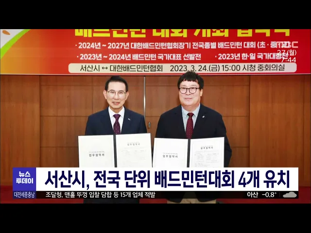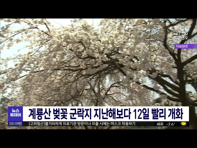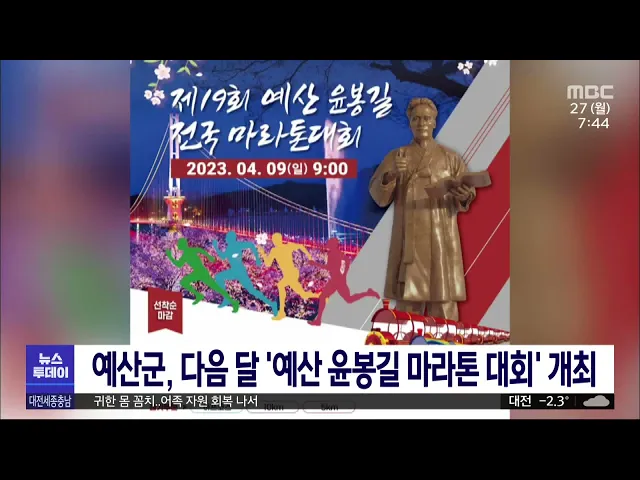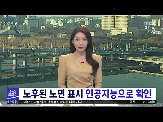 뉴스투데이 뉴스데스크뉴스투데이뉴스데스크 VOD(전체 다시보기)뉴스투데이 VOD(전체 다시보기)유튜브뉴스페이스북 뉴스카카오톡 뉴스인스타그램 뉴스 prev 2023.3.27 - 월요일 next '귀한 몸' 꼼치..어족 자원 회복 나서/투데이 ◀앵커▶ 꼼치를 아십니까? 물메기나 물텀벙이라고도 불리는 어류인데 최근 어획량이 크게 줄면서 몸값이 뛰었다고 합니다. 충남도가 꼼치 살리기에 나섰습니다. 이승섭 기자입니다. ◀리포트▶ 물메기로 잘 ... 이승섭 '국회세종의사당 규칙' 심의, 오늘도 통과 불투명 지난 22일 연기됐던 국회 세종의사당 설치 등에 관한 규칙 심의가 오늘 국회에서 다시 논의될 예정인 가운데, 이번에도 상임위 통과가 불투명하다는 지적이 나오고 있습니다. 국회 운영위원회는 오늘 오후... 고병권 조달청, 맨홀 뚜껑 입찰 담합 등 15개 업체 적발 공공기관 입찰 과정에서 담합한 맨홀 뚜껑 제조 업체들이 줄줄이 적발됐습니다. 조달청은 지난 2011년부터 2020년까지 공공기관 입찰에서 낙찰예정자와 입찰 가격을 사전에 결정한 뒤 입찰에 참여해 총 40... 문은선 AI로 노후 노면표시 탐지/투데이 ◀앵커▶ 도로에 표시된 횡단보도나 과속방지턱은 차량 통행이나 겨울철 제설 과정에서 지워지곤 해 지속적인 유지보수가 필요한데요. 하지만 보수가 필요한 곳을 일일이 다니며 확인하는 것이 현실적으로 ... 김광연 충남 유일 홍성 공공산후조리원 개원 1년 호응 지난해 충남에서 유일하게 홍성에 문을 연 공공산후조리원이 임산부들로부터 호응을 얻고 있습니다. 홍성 공공산후조리원은 개원 1년여 만에 산모 112명이 이용했고, 홍성은 물론 보령과 태안, 예산 등 충... 이승섭 충남신보, 중소기업·소상공인 지원 확대 충남신용보증재단이 중소기업과 소상공인을 위한 금융 지원과 상담을 확대합니다.· 충남신용보증재단은 위드코리아 소상공인 금융 지원 자금을 3천억 원에서 5천억 원으로 늘리고, 지원 대상도 제한 업종... 이승섭 산림청, 2030년까지 국외산림 활용 온실가스 감축 산림청이 산림 협력 대상을 아시아 중심에서 아프리카와 중남미까지 확대하는 내용 등을 담은 국제 산림 협력 추진전략을 발표했습니다. 산림청은 오는 2030년까지 조림 사업 등을 통해 온실가스 500만 톤... 고병권 계룡산 벚꽃 군락단지 어제 개화 지역 대표 벚꽃 군락지인 계룡산 벚꽃이 지난해보다 12일 빠른 어제 개화했습니다. 대전기상청은 올해 계룡산 벚꽃 개화시기는 지난해보다는 12일 빠르고, 지난 2021년 보다는 사흘 빠른 것이라고 설명했... 고병권 세종시, 농번기 농촌인력중개센터 운영 세종시가 농번기 일손이 부족한 농가와 구직자를 연결하는 농촌 인력 중개센터를 운영 합니다. 농촌인력 중개센터는 구직자들에게 복숭아 배, 딸기, 오이 등 과수와 시설 원예 분야에서 농작물 재배부터 ... 고병권 세종시, 고향사랑기부제 답례품 6개 추가…25개로 늘 세종시가 시청 테니스팀과 함께하는 레슨권 등 고향사랑 기부제 답례품 6개를 추가 선정했습니다. 추가 선정된 품목은 국내 최정상 테니스팀으로부터 교습을 받을 수 있는 레슨권을 비롯해 쌀과 빵, 복숭... 고병권 유성구, 제11회 전국 꿈나무가족 과학골든벨 개최 유성구가 제11회 전국 꿈나무가족 과학골든벨 대회를 다음 달 29일 카이스트 본원에서 개최합니다. 이번 대회에는 과학에 관심 있는 전국의 초등학교 4~6학년 학생 한 명과 부모 한 명이 팀이 돼, 과학 관... 윤웅성 세종시, 불법 광고물 집중 단속 실시 세종시가 오늘부터 매월 마지막 주 월요일을 불법 광고물 집중 단속의 날로 정하고 광고물 정비에 나섭니다. 집중 단속의 날에는 불법 현수막과 풍선 입간판 등 불법 유동 광고물을 집중 정비할 계획입니... 윤웅성 예산군, 다음 달 '예산 윤봉길 마라톤 대회' 개최 예산군이 다음 달 9일, 코로나19 이후 4년 만에 제19회 예산 윤봉길 전국 마라톤 대회를 개최합니다. 이번 대회는 하프마라톤과 10km, 5km 등 3개 종목으로 열리고, 예산종합운동장을 출발해 예산 벚꽃로... 문은선 서산시, 전국 단위 배드민턴대회 4개 유치 서산시가 대한배드민턴협회와 협약을 맺고, 앞으로 4년 동안 전국 단위 규모의 배드민턴 대회 4개를 개최합니다. 이에 따라 올해 한일 국가 대항 배드민턴 대회를 시작으로 국가대표 선발전과 협회장기 전... 이승섭