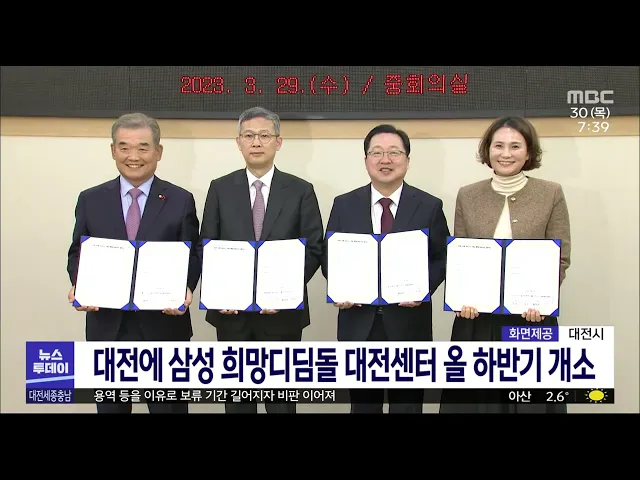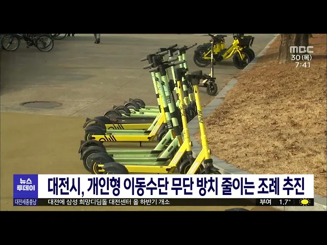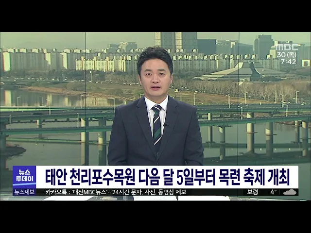 뉴스투데이 뉴스데스크뉴스투데이뉴스데스크 VOD(전체 다시보기)뉴스투데이 VOD(전체 다시보기)유튜브뉴스페이스북 뉴스카카오톡 뉴스인스타그램 뉴스 prev 2023.3.30 - 목요일 next 송선·동현신도시 돌고 돌아 결국 착수/투데이 ◀앵커▶ 공주시가 세종시와 맞닿은 미니 신도시, 송선·동현 신도시 조성사업을 다시 재개하겠다고 밝혔습니다. 최원철 공주시장은 지난해 취임 직후 원도심 공동화와 주민 반대를 이유로 민선 7기 역점 사... 김태욱 천안시, 국가산단 지원 자족가능 신도시 조성 나서 천안시가 최근 미래 모빌리티 국가산업단지로 선정된 종축장 부지 인근에 정주 여건을 갖춘 신도시를 조성합니다. 시는 국가산단 조성으로 인구 유입과 시설 입지 수요 등이 예상되는 만큼 165만 ㎡ 규모... 김광연 충남도, 공공기관 지방 이전 우선선택권 확보 총력 충남도가 수도권 공공기관의 2차 지방 이전에 우선선택권을 확보하기 위해 행정력을 모으고 있습니다. 도는 국토연구원과 국토교통부, 국가균형발전위원회 등을 연이어 찾아 혁신도시 후발주자인 충남의 ... 이승섭 '3위 돌풍' 대전, '시범 1위' 한화/투데이 ◀앵커▶ K리그 1으로 승격하자마자 무패 돌풍을 일으키며 리그 3위에 오른 대전하나시티즌이 이번 주말 리그 2위인 서울과 홈에서 맞붙습니다. 3년 연속 최하위 한화이글스도 시범 경기에서 뛰어난 경기력... 윤웅성 대전·세종·충남교육청 비정규직 총파업 대비 총력 대전과 세종, 충남교육청이 내일로 예고된 학교비정규직연대회의 총파업과 관련해 급식과 돌봄 공백을 최소화하기 위한 대책 마련에 나섰습니다. 시·도교육청은 교육과정과 관련한 파업 대응 지침을 학교... 박선진 김지철 충남교육감 "일본 교과서 개정 강력 규탄' 김지철 충남교육감이 일본 초등 교과서에 독도를 일본 고유 영토라고 쓰고 일제강점기 조선인 징병의 강제성을 희석한 내용이 실린 것에 대해 강력히 규탄했습니다. 김 교육감은 과거 제국주의 의식에서 ... 이승섭 '안 보고' 지형변화 감지 로봇/투데이 ◀앵커▶ 앞을 안 보고도 계단이나 불규칙한 지형을 자유자재로 걸을 수 있는 로봇이 개발됐습니다. 칠흑 같은 어둠 속이나 화염이 짙은 재난 현장 등에서 다양하게 활용될 전망입니다. 조형찬 기자가 보도... 조형찬 서천서 이상재 선생 추모제·마산 신장 만세운동 재연 어제 서천에서 서천 출신 독립운동가인 월남 이상재 선생의 제96주기 추모제와 마산 신장 3·1만세 운동 재연 행사가 열렸습니다. 참석자들은 자주독립과 국민계몽의 길을 걸어온 이상재 선생의 나라 사랑 ... 이승섭 훼손됐던 홍성 '평화의 소녀상', 원래 모습 복구 3·1절이었던 지난 1일, 누군가에 의해 훼손된 사실이 발견됐던 홍성 평화의 소녀상이 원래 모습을 되찾았습니다. 홍성군은 관리 주체인 홍성군 여성단체협의회와 논의를 거쳐 코와 이마, 양발에 예리한 물... 이승섭 '대전 도예가' 이종수 미술관 건립 추진/투데이 ◀앵커▶ 대전 출신의 대표적인 도예가인 고 이종수 선생의 작품을 한 곳에 모은 미술관 건립이 본격적으로 추진됩니다. 2천여 점에 이르는 유작을 유족들이 대전시에 기증하기로 한 건데요. 이종수 미술관... 김윤미 "관불산 채석단지 지정 반대" 공주시의회, 결의문 채택 공주시의회가 유구읍 관불산 채석단지 지정에 반대하는 결의문을 채택했습니다. 시의회는 결의문에서 관불산 채석단지가 개발되면 환경파괴는 물론 인근 하천과 지하수 오염으로 주민 건강권과 경제권, 행... 문은선 대전세종충남 제조·건설 현장서 안전조치 미흡 적발 대전지방고용노동청이 대전과 세종, 충남 지역 제조업체와 건설현장 등 17곳을 불시 점검한 결과 전체 사업장에서 안전조치 미흡 사항이 다수 적발됐습니다. 이번 점검에서는 화재 예방조치와 관련해 소화... 박선진 대전에 삼성 희망디딤돌 대전센터 올 하반기 개소 대전시와 삼성전자, 사회복지공동모금회가 어제 시청 중회의실에서 업무협약을 맺고, 보호아동과·자립 준비 청년의 자립을 지원하는 희망 디딤돌 대전센터를 건립하기로 했습니다. 올 하반기 문을 여는 삼... 고병권 행복청, 다음 달 세종공동캠퍼스 행복기숙사 착공 행정중심복합도시건설청이 오는 2024년 2학기 개교를 목표로 다음 달 세종공동캠퍼스 행복기숙사 공사를 시작합니다. 행복기숙사는 현재 건설이 진행 중인 세종공동캠퍼스 임대형 캠퍼스 부지 내에 지하 1... 김태욱 대전시, 소상공인 종합 법률서비스 지원 대전시가 경영환경 악화로 인한 소상공인 분쟁사례가 급증함에 따라 종합 법률서비스 지원에 나섰습니다. 지원대상은 연 매출 3억 원 이하 소상공인이며, 법률상담과 법률서식 작성, 전문가 선임비 등을 ... 조형찬 대전시,상습 교통정체 33곳 맞춤형 대책 추진 대전시가 상습 차량 정체 구간 33곳을 선정해 정체 원인별 맞춤형 개선 대책을 내놨습니다. 시는 원도심인 계룡로와 태평로 등 16개 구간은 잘못된 도로 운영 등이 정체 원인인 것으로 보고 불법주차단속... 고병권 대전시,무단방치된 개인형 이동수단(PM) 견인 추진 대전시가 공유 킥보드 등 개인형 이동수단 무단방치 문제를 해결하기 위한 조례를 추진