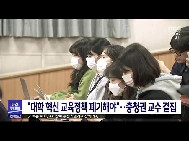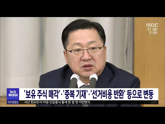 뉴스투데이 뉴스데스크뉴스투데이뉴스데스크 VOD(전체 다시보기)뉴스투데이 VOD(전체 다시보기)유튜브뉴스페이스북 뉴스카카오톡 뉴스인스타그램 뉴스 prev 2023.3.31 - 금요일 next 한국타이어 대전공장 재가동 준비 중 '또 불'/투데이 ◀앵커▶ 지난 12일 대형화재가 발생한 한국타이어 대전공장이 최근 불이 나지 않은 1공장 재가동에 나섰는데, 이 과정에서 또 불이 날 뻔했던 것으로 확인됐습니다. 여러 공정 상 화재 위험이 높아 노동자... 박선진 충청권 특별지자체 준비위 출범..행정체계 방향 제시 초광역 지방정부인 충청권 특별지방자치단체 설립을 위한 준비위원회가 위촉식과 함께 본격 출범했습니다. 준비위원회는 4개 시도에서 추천받은 전문가와 시민단체 등 위촉위원 36명을 비롯해 모두 48명 ... 김윤미 보령댐 가뭄 `관심` 단계에 충남도, 릴레이 물 절약 충남 서북부 지역에 물을 공급하는 보령댐의 가뭄 '관심' 단계가 지속하면서 충남도가 오는 5월까지 보령댐 권역 8개 시·군에서 릴레이 물절약 캠페인에 나섭니다. 도와 시·군 공무원, 지역 지속가능 발전... 문은선 대형 교회 장로, 수십억 대 사기 혐의/투데이 제보는 MBC 타이틀 ◀앵커▶ 대전의 한 대형 교회의 장로가 지인들을 상대로 수십억 원대 돈을 빌리고 잠적했다는 피해자들의 주장이 잇따르고 있습니다. 피해자 대부분은 주변 교회 지인들인데 피해액이 30... 김지혜 퇴직교사 단체·충남대교수진 "굴종 외교 규탄" 대전지역 퇴직 교사 170명이 윤석열 정권의 대일 굴종 외교와 헌정질서 유린을 규탄하는 성명을 발표했습니다. 대전참교육동지회 등 퇴직 교사들은 어제 대전교육청 앞에서 기자회견을 열고 "윤 대통령은 ... 윤웅성 "대학 혁신 교육정책 폐기해야"..충청권 교수 결집 7개 단체로 구성된 충청지역 교수연대회의가 충남대에서 어제, 출범 기자회견을 갖고 소수 대학만 지원하는 현 정부의 교육정책은 균형 발전을 저해한다며, 폐기하라고 촉구했습니다. 이들은 제대로 된 대... 윤웅성 서산공항 불투명..지역 반발/투데이 ◀앵커▶ 충남도의 숙원 사업이자 윤석열 대통령의 지역 공약이기도 한 서산공항 건설 사업이 무산 위기에 놓였습니다. 정부의 예비타당성조사를 통과하지 못할 것으로 보이는데, 지역의 반발이 거셉니다. ... 이승섭 세종시 아파트값 2주 연속 상승, 전셋값도 상승 전환 87주 만에 하락을 멈추고 반등했던 세종시 아파트값이 2주 연속 상승했습니다. 한국부동산원에 따르면, 지난 27일 기준 세종시 주간 아파트 가격은 전주와 똑같이 0.09% 상승했습니다. 부동산원은 새롬동... 고병권 "세종 신호체계 개편하면 지체시간 34% 줄어" 대중교통보다 승용차 이용 비율이 월등히 높아 도심 교통 정체가 잦은 세종시에서 신호체계만 바꿔도 지체되는 시간이 크게 줄어든다는 조사 결과가 나왔습니다. 세종시가 도로교통공단에 맡긴 용역 결과,... 김윤미 세종시 소각장 송성리 확정/투데이 ◀앵커▶ 주민 반발로 4년 넘게 갈등을 빚어 온 세종시 폐기물처리시설 입지가 결국 전동면 송성리로 결정됐습니다. 주민들은 애초 월산공단이었던 입지가 바뀌게 된 절차와 최민호 세종시장의 원점 재검토... 김태욱 충남교육청, 2025년까지 학교 조리실 환기 설비 개선 학교 급식실 노동자의 폐 질환이 늘었다는 지적과 관련해 충남교육청이 당초 계획보다 2년 앞당겨 오는 2025년까지 급식실 환경을 개선하기로 했습니다. 도 교육청은 지난해 실시한 급식 종사자 폐암건강... 문은선 대전 세종 충남 자치단체장 재산 변동 내역 공개 이장우 대전시장이 시장 취임 후 직무 관련성 심사 결과로 보유 주식 2억 원어치를 매각한 것으로 나타났습니다. 공직자윤리위원회가 전자 관보에 게시한 공직자 재산 공개 현황에 따르면, 이 시장과 가족... 고병권 "반도체 특화단지 대전이 최적지" 국회서 토론회 열려 정부가 전방위적인 지원을 예고하며 반도체와 디스플레이 등 3개 분야 국가첨단전략산업 특화단지 지정을 위한 공모를 진행 중인 가운데 반도체 특화단지를 대전에 조성해 하는 당위성을 알리는 토론회가 ... 김윤미 예산시장, 재정비 마치고 다음 달 재개장 예산시장이 한 달간의 재정비를 마치고 이번 주말다시 문을 엽니다. 이번에 재개장을 하면서 기존 5개 업체 외에 가락국수와 만두, 갈치구이 등을 파는 가게 16곳이 추가로 문을 열고 화장실과 퇴식구를 ... 김광연 천안시, 배 인공수분 도울 자원봉사자 모집 천안시는 농촌 고령화 등으로 인력 수급에 어려움을 겪는 배 재배 농가를 돕기 위해 인공수분 작업을 도울 자원봉사자를 모집합니다. 시는 기관·단체와 기업, 대학 등에 자원봉사자 모집을 적극 홍보하고 ... 김광연 서산 천수만서 야생·인공증식 황새 한쌍 첫 자연번식 서산 천수만에서 야생 황새와 인공증식 후 방사된 황새가 자연 번식에 성공했습니다. 인공증식 후 야생으로 방사된 개체가 짝을 이뤄 자연번식에 성공한 경우는 종종 있었지만 야생 황새와 방사 개체 간 ... 문은선 서산시 신청사 건립 후보지 3곳으로 압축 서산시 신청사 건립 후보지가 3곳으로 압축됐습니다. 서산시 청사 입지 선정위원회는 개발 여건과 상징성, 접근성