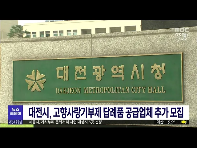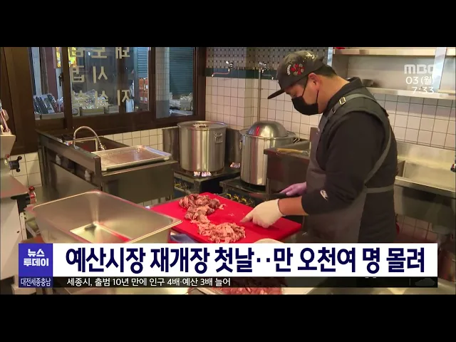 뉴스투데이 뉴스데스크뉴스투데이뉴스데스크 VOD(전체 다시보기)뉴스투데이 VOD(전체 다시보기)유튜브뉴스페이스북 뉴스카카오톡 뉴스인스타그램 뉴스 prev 2023.4.3 - 월요일 next 금산,대전도 산불3단계..9백여명 대피/투데이 ◀앵커▶ 홍성을 비롯해 밤새 충남 곳곳에서 산불이 계속 확산해 밤샘 진화 작업이 이어졌습니다. 금산에서 시작된 산불이 대전으로 넘어오면서 홍성과 마찬가지로 이곳에도 대응 3단계가 발령됐습니다. 특... 박선진 대전 은행강도살인 피고인들 2심 다음 달 시작 대전 국민은행 권총 강도살인 사건 피고인들에 대한 항소심이 다음 달 시작되는 가운데, 항소심에서도 피고들간의 공방이 예상됩니다. 대전고법 형사1-1부는 다음 달 10일 강도살인 등 혐의로 구속 기소돼... 최기웅 예산시장 재개장 첫날, 만 5천 인파 몰려 전국적인 명소로 떠오른 예산시장 재개장 첫날, 만 5천여 명의 인파가 몰렸습니다. '예산시장 살리기 프로젝트'로 유명세를 얻기 시작한 예산시장은, 편의시설 등이 부족하다는 지적에 따라 한 달여간의 ... 김태욱 해경 인재개발원 어디로? "발표 서둘러야"/투데이 ◀앵커▶ 해경이 추진하고 있는 인재개발원 유치전에 보령과 당진 등 전국에서 3개 지자체가 뛰어든 가운데 유치를 위한 치열한 경쟁을 벌이고 있는데요. 그런데 당초 올해 초인 지난 1월 말쯤 후보지 발표... 김광연 산림 공익기능 2020년 기준 259조…2년 전보다 산림청 국립산림과학원은 국토녹화 50주년을 맞아 평가한 산림의 공익기능 가치가 2020년 기준으로 259조 원에 달한다고 밝혔습니다. 1960년 이후 우리나라는 120억 그루 나무를 심고 잘 가꿔 산림 전체 ... 최기웅 세종시 아파트 거래량, 최근 1년 만에 2배로 늘어 세종지역 올해 1분기 아파트 매매 건수가 지난해 같은 기간과 비교해 2배 가량 증가한 것으로 나타났습니다. 국토교통부 실거래가 공개시스템 자료에 따르면 올해 1분기 세종지역 아파트 매매 건수는 천23... 김태욱 세종시, 28일까지 여민전 부정유통 일제단속 세종시가 지역화폐 '여민전' 부정유통을 막기 위해 오는 28일까지 일제단속에 나섭니다. 단속 대상은 실제 매출금액 이상의 거래를 진행하거나, 등록 제한 업종에서 사용하는 행위, 그리고 상품권 결제를 ... 김태욱 세종시, 출범 10년 만에 인구 4배·예산 3배 늘어 지난 10년 사이 세종시 인구는 4배, 예산은 3배 이상 늘어난 것으로 나타났습니다. 세종 시정 주요 통계에 따르면 인구는 지난해 말 기준 38만 8,927명으로 10년 새 3.9배 증가했고, 시 예산은 1조 9,213... 김태욱 아산페이 한도액 설정·선착순 판매 아산시가 이달부터 지역사랑상품권인 아산페이 월 판매한도를 정하고 선착순 판매합니다. 이달 판매한도액은 2백억 원 규모로, 시는 판매 추이를 살펴 하반기부터 한도를 하향 조정할 계획입니다. 시는 정... 김광연 충남 쌀 생산비 전국에서 가장 저렴 충남이 전국에서 단위 면적당 쌀 생산비가 가장 저렴한 것으로 조사됐습니다. 통계청이 발표한 지난해 기준 쌀 생산비 조사에 따르면 충남의 천 ㎡당 생산비는 79만 4천 원으로 전국 평균 85만 4천 원보다... 고병권 서천 한산모시문화제 6월 9∼11일 개최 제33회 한산모시문화제가 오는 6월 9일부터 사흘 동안 서천군 한산모시관 일원에서 열립니다. '천500년 한산모시, 이음과 만남'을 주제로 열리는 행사에는 한산모시 제작과 모시옷 입어보기 등 체험과 디... 김광연 대전시, 고향사랑기부제 답례품 공급업체 추가모집 대전시가 고향사랑기부제 답례품 공급에 참여할 지역 업체를 추가 모집합니다. 모집 대상은 대전에 사업장을 두고 농축산물과 가공식품, 공산품과 관광·서비스 분야 답례품을 안정적으로 생산·배송할 수 ... 김태욱 최근 3년 새 대전 김치냉장고 화재 50건.. 리콜 당부 최근 3년 새 대전에서 노후 김치냉장고 화재 50건이 발생한 것으로 집계됐습니다. 노후 김치냉장고 화재는 지난 2020년 14건, 2021년 19건, 지난해 17건이 발생하는 등 꾸준히 이어지고 있습니다. 대전소... 김태욱 세종시, 고령친화도시 회원 재인증 세종시가 세계보건기구로부터 고령친화도시 국제네트워크 회원 재인증을 받았습니다. 시는 65살 이상 노인이 활기차고 건강한 노년을 보낼 수 있도록 2020년 WHO 고령친화도시 국제네트워크 회원에 가입했... 최기웅
