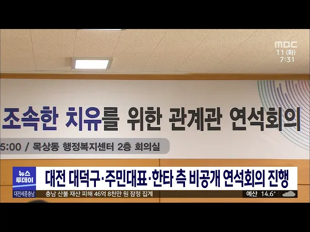 뉴스투데이 뉴스데스크뉴스투데이뉴스데스크 VOD(전체 다시보기)뉴스투데이 VOD(전체 다시보기)유튜브뉴스페이스북 뉴스카카오톡 뉴스인스타그램 뉴스 prev 2023.4.11 - 화요일 next 만취운전에 초등생 참변 추모 확산/투데이 ◀앵커▶ 대낮 음주운전 사고로 어린이 보호구역에서, 인도를 지나던 초등학생 4명을 덮친 60대 운전자가 구속됐습니다. 이번 사고로 숨진 9살 배승아 양 추모 분위기가 확산하는 가운데 유족과 시민들은 ... 김지혜 대낮 음주운전 단속..사고에도 여전/투데이 ◀앵커▶ 앞서 전해드린 것처럼 이번 사고는 어린이보호구역에서 그것도 대낮에 벌어졌습니다. 음주운전은 살인 행위나 마찬가지라는 사회적 비판에도, 음주운전 처벌을 강화하는 이른바 윤창호 법에도 음... 박선진 대전시, 음주 사망 사고 피해자 트라우마 치료 지원 지난 주말 대전 둔산동에서 60대 운전자가 만취 상태로 차량을 몰다 9세 어린이를 치어 숨지게 한 사고와 관련해, 사고 피해자와 주변 친구들을 상대로 트라우마 치료가 추진됩니다. 대전시 소방본부는 사... 고병권 "백 년 터전 불탔다" 온정 잇따라/투데이 ◀앵커▶ 충남에서 20여 년 만에 최악의 산불로 기록된 홍성 산불. 불길은 이미 사그라졌지만, 피해 주민의 고통은 끝이 보이지 않습니다. 일상을 되찾기 위한 움직임이 시작됐고 곳곳에서 온정의 손길도 ... 이승섭 대전시, 산불 특수 진화 차량 구입 추진 대전을 비롯한 충청권에 대형 산불에 대처할 수 있는 고성능 산불 진화차가 없다는 대전MBC 보도와 관련해 대전시가 특수 차량을 확보하기로 했습니다. 대전시는 현재 보유중인 소방차보다 담수량이 3배 ... 고병권 충남소방본부, 한국타이어 금산공장 소방법 위반 적발 충남소방본부가 한국타이어 금산공장 소방 관계 법령 위반사항을 적발하고 과태료를 부과하기로 했습니다. 소방본부는 한국타이어 대전공장 화재를 계기로 금산공장에 대한 긴급 안전조사를 진행한 결과 ... 윤웅성 여 "정권교체 마침표" VS 야 "윤 정부 심판"/투데이 총선 타이틀 ◀앵커▶ 내년 4월 치러질 제22대 국회의원 총선거가 꼭 1년 앞으로 다가왔습니다. 대전MBC는 충청권 유권자들의 현명한 선택에 도움이 될 수 있도록 앞으로 1년간 기획보도를 이어갈 계획인데... 김윤미 독립운동가 황기환 지사 유해 대전현충원에 안장 대한민국임시정부 외교관으로서 미국과 유럽에서 독립운동을 펼치다가 미국 땅에 묻혔던 황기환 지사의 유해가 순국 100년 만에 국내로 봉환돼 오늘(투데이 어제) 대전현충원에 안장됐습니다. 황 지사의 ... 김윤미 `철거 위기` 대전부청사 보존 가닥 문화재적 가치에도 민간 부동산업체가 사들여 철거 움직임이 있었던 옛 대전부청사가 보존될 것으로 보입니다. 대전시는 부청사가 시간이 갈수록 근대 건축물로서 가치를 지닐 것이라며 시와 건물 소유주... 고병권 쓴 맛 방울토마토.. 밭 갈아엎다/투데이 ◀앵커▶ 최근 정부가 쓴 맛이나 구토 증세를 유발하는 특정 방울토마토 품종의 출하 중지를 권고하면서 일반 토마토까지 기피해 농가 피해가 크다는 소식 전해드렸는데요, 피해가 확산하자 일부 지자체는 ... 김태욱 '구체적 시기 없는', 금강 보 처리방안 비판 쏟아져 최근 환경부가 보 해체 시기를 특정하지 않고 금강 보 처리방안 세부계획 용역 결과를 발표한 것과 관련해, 지역 시민단체들이 한화진 환경부 장관 사퇴를 요구하고 나섰습니다. 대전·세종·충남 환경운동... 고병권 김태흠 충남지사 시군 순방..청양 발전 약속 김태흠 충남지사가 민선 8기 출범 2년 차를 맞아 청양을 시작으로 15개 시군 순방에 나섰습니다. 김태흠 지사는 청양을 찾아 군민들과 만나고 대한파크골프협회 이전과 약초산업 육성, 자연치유센터 조성 ... 이승섭 전국 시도의회의장단 대전서 임시회..12개 안건 의결 전국 16개 시·도의회로 구성된 대한민국시도의회의장협의회가 어제 대전에서 임시회를 열고 시도별 현안을 논의했습니다. 또, 어린이 통학버스에 전기차 보급 확대를 촉구하는 건의안을 비롯해 농수산물 ... 김윤미 충남도, 내포신도시 쓰레기 자동집하시설 개선 착수 충남도가 운영과 유지에 큰돈이 들어 애물단지로 전락한 내포신도시의 쓰레기 자동집하시설을 개선해 다시 활용하기로 했습니다. 도는 지난 1일에 출범한 충남혁신도시조합이 충남개발공사로부터 쓰레기 ... 이승섭 대전시·세종시, 서울시와 교류 강화 나서 대전과 세종시가 잇따라 서울시와 교류 강화를 위한 업무협약을 맺고 상생 협력 체계 구축에 나섰습니다. 이장우 대전시장은 오세훈 서울시장과의 협약식에서 고향사랑기부제 활성화를 위한 협의체 구축과... 김윤미 충남교육청, 성 비위 3건 발생..징계 의결 요구 올해 들어 충남 교육계에서 성 비위 사건 3건이 발생한 것으로 집계됐습니다. 충남교육청이 공개한 올해 1분기 공직감사 결과를 보면 충남 모 고등학교와 중학교 교직원은 각각 성희롱과 강제추행을 저질... 이승섭 순천향대천안병원, 태안 기름유출 사고지역 중고생 건 순천향대 산하 충남도 권역형 환경보건센터가 오늘까지 이틀간 2007년 허베이 스피리트호 기름유출 사고지역 청소년을 대