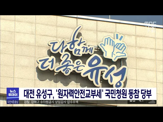 뉴스투데이 뉴스데스크뉴스투데이뉴스데스크 VOD(전체 다시보기)뉴스투데이 VOD(전체 다시보기)유튜브뉴스페이스북 뉴스카카오톡 뉴스인스타그램 뉴스 prev 2023.4.13 - 목요일 next '또 음주사고' 반복 이유는/투데이 ◀앵커▶ 대낮 어린이보호구역에서 만취 차량에 초등학생이 치어 숨진 지 며칠 되지도 않았는데 대전에서 또 음주 운전 사고가 났습니다. 이른바 윤창호법이 시행 중이지만, 반성했다는 이유로 재판에서 감... 김지혜 대전시민단체, 인권·성문화 수탁과정 정보공개 촉구 대전인권비상행동이 어제시청 앞에서 기자회견을 열고 대전시에 시 인권센터와 시 청소년성문화센터 위·수탁 과정에 대한 정보 공개와 위탁 재선정을 촉구했습니다. 이들은 지난해 11월 차별금지법과 문화... 김태욱 '산불 피해' 부여군 지역화폐 인센티브 15%로 상향 최근 산불로 특별재난지역으로 선포된 부여군이 다음 달 10일까지 한시적으로 지역화폐인 굿뜨래페이 인센티브를 15%까지 올리기로 했습니다. 이에 따라 기존에 매달 70만 원 한도로 최대 10%였던 인센티... 김윤미 산업단지 충남 지역 농촌 피해 현안 토론회 개최 충남환경운동연합과 공익법률센터 농본이 어제, 내포혁신플랫폼에서 산업단지와 산업 폐기물 매립장으로 인한 충남 지역 농촌의 피해 상황을 주제로 토론회를 열었습니다. 참석자들은 지난 20년 동안 충남... 이승섭 응급의료기관 전원율 대전 1.8%…전국 최저 대전지역 병원 응급실을 찾은 환자가 병실이나 의료진이 없어 다른 병원으로 옮기는 비율이 전국에서 가장 낮은 것으로 나타났습니다. 대전시는 통계 분석 결과, 심혈관질환이나 중증외상환자 등 3대 중증... 고병권 연쇄 방화 남성 검거..소방관 눈썰미 빛났다/투데이 ◀앵커▶ 최근 대전에선 한밤중 생활 쓰레기 배출 장소 인근에서 작은 화재가 잇따랐는데요, 그저 실화가 잦다 정도로 넘길 수 있었던 사건이 베테랑 소방관의 눈썰미 덕에 덜미가 잡혔습니다. 결국 옮겨 ... 윤웅성 임무 중인 '다누리' 달 뒷면 촬영 영상 등 공개 지난해 성공적으로 발사돼 임무를 수행 중인 국내 최초 달 궤도선 '다누리'가 지구에서는 볼 수 없는 달 뒷면 촬영 영상이 공개됐습니다. 과학기술정보통신부와 항공우주연구원은 다누리에 탑재된 고해상... 김윤미 2자녀 가정 부모 대전도시철도 무료 이용 18살 이하 자녀 2명 이상을 둔 대전시민은 다음 달부터 도시철도를 무료로 이용할 수 있게 됩니다. 대전시는 조례 개정으로 그동안 자녀 3명 이상 가정에만 발급하던 꿈나무사랑 카드를 자녀 2명 이상 가... 고병권 세종 행정복지센터서 민원인이 흉기 휘둘러..3명 부상 어제 오후 4시쯤 세종시 조치원읍의 한 행정복지센터에서 40대 남성이 공무원 등에게 흉기를 휘두르는 사건이 발생했습니다. 이 과정에서 공무원 2명이 손가락을 다쳤고 사회복무요원이 폭행을 당해 병원... 윤웅성 검찰, 강래구 수자원공사 상임감사 압수수색 검찰이 강래구 한국수자원공사 상임감사에 대해 정치권에 불법 자금을 건넨 혐의로 압수수색을 벌였습니다. 서울중앙지검 반부패수사 2부는 강 감사가 공공기관감사협회장 재직 시절인 지난 2021년 민주당... 고병권 일주일 빠른 만개..배꽃 인공수분 일손 돕기/투데이 ◀앵커▶ 올해는 연초부터 날이 따뜻해서 꽃이 일찍 폈죠, 배꽃도 평년보다 일주일 정도 빨리 피다 보니 농가마다 인공수분이 급해졌습니다. 일일이 손으로 해야 하는 작업이라 일손이 특히 많이 필요해 봉... 김광연 대전도시공사, 갑천 2블록 4.46% 금리로 대출 지원 대전도시공사가 국민은행과 협약을 맺고 지난해 11월 분양한 대전 갑천 2블록 아파트 계약자들에게 전국 최저 수준인 4.46%의 금리로 중도금 대출이 지원됩니다. 대출 금리는 국민은행과 은행연합회가 공... 김태욱 대전 유성구, "원자력안전교부세" 국민청원 동참 당부 대전 유성구가 원자력 안전 교부세를 신설하는 내용의 지방교부세법 개정을 위한 국회 국민청원에 동참해 달라고 당부했습니다. 유성구는 개정안의 내용은 지방교부세 재원을 늘려 원자력 안전 교부세 세... 고병권 골칫거리 황 폐기물로 적외선 렌즈 신소재 개발 원유 정제과정에서 발생하는 부산물인. 1kg에 200원 정도로 값싼 황 폐기물을 활용해 고부가가치 적외선 투과 렌즈용 신소재를 생산하는 기술이 개발됐습니다. 한국화학연구원과 한양대, 충남대 공동 연구... 김윤미 예산시장 입구 '백종원 거리' 간판 철거 예산시장 입구에 백종원 더본코리아 대표 이름이 내걸렸던 '백종원 거리' 간판이 철거됐습니다. 예산군은 백 대표와 협의한 대로 지난 2018년부터 예산시장 입구에 세워졌던 간판을 없애고, 간판이 놓였던... 이승섭 수은폐기물 거점수거 시범운영.. 보완도 필요/투데이 ◀앵커▶ 지난해 식품의약품안전처가 혈압계나 체온계 등 수은이 들어간 의료기기 사용을 금지하면서 전국 의료기관에서는 약 2만 3천 개의 수은 함유 폐기물이 발생했는데요. 수은의 경우 독성물질이라 폐... 김태욱 충남도, 천수만 대하 어획 활성화 연구 착수 충남도가 서해안 최대 대하 어장인 천수만 해상에서 대하 어획을 활성화하기 위한 방안을 연구합니다. 도는 