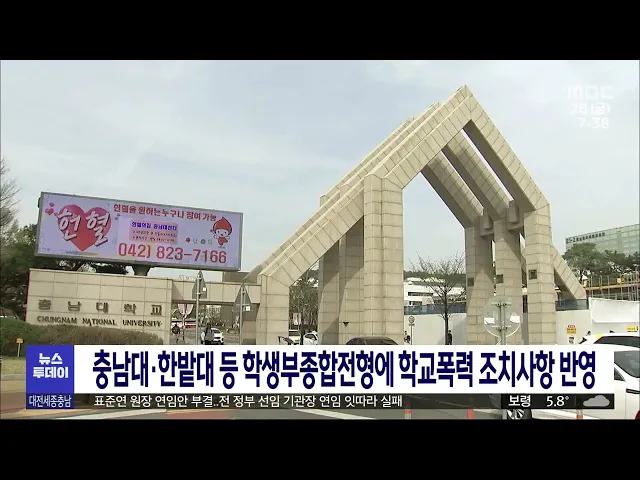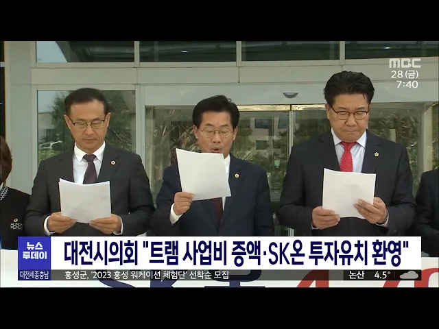 뉴스투데이 뉴스데스크뉴스투데이뉴스데스크 VOD(전체 다시보기)뉴스투데이 VOD(전체 다시보기)유튜브뉴스페이스북 뉴스카카오톡 뉴스인스타그램 뉴스 prev 2023.4.28 - 금요일 next "승용차 도시 이제 그만" 내년부터 버스 공짜/투데이 ◀앵커▶ 대중교통 중심 도시로 설계됐지만 승용차가 넘쳐나고 교통체증이 갈수록 심각해지는 도시가 바로 세종시죠. 세종시가 내년 하반기부터 출퇴근 시간대만이라도 버스 요금을 무료화해 승용차 통행량... 김윤미 김태흠 충남지사, 공주 백제문화촌 조성 속도 내겠다 김태흠 충남도지사가 시·군 방문 세 번째 일정으로 공주시를 방문해 현안을 청취했습니다. 김 지사는 오는 2030년까지 백제문화촌 조성에 2천억 원을 투입해 백제왕실문화촌과 웅진 신화뮤지엄, 금강풍경... 김태욱 충남도, 도청 홍예공원 370m '차 없는 거리' 추진 충남도가 도청과 홍예공원을 잇는 도청대로 370m 구간에 '차 없는 거리'를 조성합니다. 도는 내포 홍예공원 기본계획 수립 용역 중간보고회를 열고, 도시와 공원의 연결 강화를 위해 도청대로 370m 구간을... 김태욱 대한민국 과학축제, 18년 만에 대전서/투데이 ◀앵커▶ 대한민국 과학축제가 50주년을 맞은 대덕특구가 자리잡은 우리나라 과학수도 대전에서 개막했습니다. 주로 수도권에서 열려 온 과학축제가 대전에서 열린 것은 지난 2005년 이후 18년 만인데요. ... 고병권 박현민 표준연 원장 연임안 부결 국가과학기술연구회는 어제임시이사회를 열고 한국표준과학연구원장 재선임안을 심의한 결과, 요건인 재적 이사 2/3 찬성을 얻지 못해 부결됐다고 밝혔습니다. 국가과학기술연구회는 출연연 기관장이 기관... 고병권 충청권 인구 유입 증가..대전만 '순유출' 충청 대부분 지역에서 유입 인구가 늘었지만 대전에서만 인구 순유출이 일어났습니다. 통계청이 발표한 3월 국내인구 이동통계를 보면, 지난달 대전은 전입 인구보다 전출이 324명 더 많았습니다. 반면 세... 문은선 육사 대신 ADD 센터.. '꿩 대신 닭?'/투데이 ◀앵커▶ 충남도의 숙원이자 윤석열 대통령의 공약이었던 육군사관학교 논산 이전에 대해 이종섭 국방부 장관이 거듭 이전 반대 의사를 밝힌 것으로 확인됐습니다. 대신 논산에 국방과학연구소 부속 연구센... 김태욱 충남도, 7,328억 규모 1차 추경안 의회에 제출 충남도가 올해 1차 추가경정예산으로 7,328억 원 규모 예산안을 도의회에 제출했습니다. 여기에는 지역사랑상품권 발행 지원에 471억 원, 노인일자리·사회활동 지원에 78억 원, 그리고 2027 하계세계대학... 김태욱 천수만 한눈에, 홍성스카이타워 오는 6월 완공 홍성군 서부 해안에 새로운 랜드마크로 조성 중인 홍성스카이타워가 오는 6월 완공을 목표로 마감재 설치 등 마무리 공정에 들어갔습니다. 홍성스카이타워는 65m 높이의 수직타워로 조성돼 천수만의 낙조... 김태욱 경찰관에 욕설·발길질해도 귀가/투데이 ◀앵커▶ 한 중학생이 파출소에서 경찰에게 욕설과 발길질하는 영상이 퍼지면서 논란이 일고 있습니다. 경찰은 해당 학생이 만 13세 촉법소년이란 이유로 아무런 조치도 취하지 못하고 귀가시켰습니다. 김광... 문은선 지역대학도 대입전형에 '학폭' 반영 학교폭력이 심각한 사회문제가 되면서 지역 대학들도 입시 전형에 학교폭력 이력을 반영합니다. 한국대학교육협의회가 공표한 2025학년도 대학입학전형 시행계획에 따르면 충남대, 한남대, 한밭대, 건양대... 문은선 여고생 성폭행 통학차 기사, 1심 징역 15년 선고 자신의 통학차량을 이용하던 여고생을 수년간 성폭행한 혐의를 받는 50대 통학차량 기사에게 중형이 선고됐습니다. 대전지법 제11형사부 최석진 재판장은 미성년자 유인, 강간 등 위반 혐의로 기소된 피고... 김지혜 홍성 산불 이재민, 오늘 공공임대주택 첫 입주 홍성에서 발생한 대형산불로 대피소 생활을 하던 이재민 가구가 오늘공공임대주택에 처음으로 입주합니다. 홍성군은 입주 이재민을 위해 대한적십자사 충남지사 등이 후원한 밥솥과 그릇, 쌀 등 생활필수... 김태욱 대전시의회,트램 사업비 증액,SK온 투자유치 적극환영 대전시의회 의원들은 오늘(투데이 어제) 의회 앞에서 기자회견을 열고, 대전 도시철도 2호선 트램 총사업비 증액, SK온 투자유치 등의 집행부 성과를 환영하며 시의회 차원에서 적극적으로 지원하겠다고 ... 고병권 천안시, `전세사기 피해지원 대책반` 운영 천안시가 전세사기 피해지원 대책반을 구성해 운영합니다. 대책반은 정신건강복지센터와 변호사 등 민간 전문가와 경찰 등이 협력해 피해 접수창구를 마련하는 한편, 소득과 자산 기준을 충족하는 경우 우... 문은선 M87 블랙홀의 그림자·제트 동시 포착..부착원반 확인 한국천문연구원과 경북대를 포함해 한미일 등 17개 나라가 참여한 국제 공동연구팀이 지구에서 5천400만 광년 떨어진 M87 은하 중심에 위치한 초거대 블랙홀의 그림자와 강력하게 분출되는 제트를 최초로 ... 김윤미 대전하나시티즌, 30일 제주와 10라운드 홈경기 프로축구 K리그 1에서 돌풍을 일으키고 있는 대전하나시티즌이 주말인 오는 30일 제주 유나이티드를 상대로 홈경기를 치릅니다. 대전은 개막 5경기 