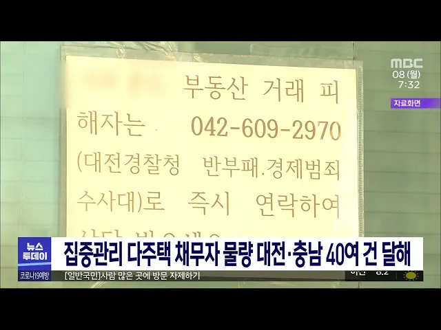 뉴스투데이 뉴스데스크뉴스투데이뉴스데스크 VOD(전체 다시보기)뉴스투데이 VOD(전체 다시보기)유튜브뉴스페이스북 뉴스카카오톡 뉴스인스타그램 뉴스 prev 2023.5.8 - 월요일 next 천안서도 전세사기 의심 신고..경찰 수사/투데이 ◀앵커▶ 최근 수도권을 비롯해 대전 등 전국에서 전세사기가 잇따르면서 각종 대책이 쏟아지고 있지만 정작 피해자들은 대책을 체감하지 못한다는 지적이 많습니다. 이런 가운데 천안에서도 전세사기 의심... 김광연 집중관리 다주택 채무자 대전·충남 40여 건 전세사기 피해가 사회적 이슈로 부상한 가운데 이른바 악성 임대인으로 분류될 수 있는 '집중관리 다주택 채무자' 물건이 대전·충남에서 40여 건에 달하는 것으로 나타났습니다. 주택도시보증공사에 따르... 최기웅 스쿨존 배승아 양 사고 이후...음주 단속 618명 적발 대낮 어린이보호구역에서 음주운전 차량에 치여 9살 초등학생이 숨진 지 한 달여가 지난 가운데, 사고 이후 대전과 세종, 충남에서 음주단속으로 618명이 적발된 것으로 나타났습니다. 경찰이 사고 직후인... 김지혜 '첫 실전' 누리호..막바지 준비 순조/투데이 ◀앵커▶ 우리 손으로 만든 발사체 '누리호'가 오는 24일 처음으로 실용위성을 품고 세 번째 우주로 향합니다. 소형위성 등 모두 8개의 위성을 잘 태우고 가서 정확한 궤도에 올려줘야 하는 임무를 맡게 된 ... 김윤미 대전·충남 청년 10명 중 8명 취업 도움 못받아 대전·충남 청년 10명 중 8명이 공공기관에서 취업과 관련해 도움을 받은 적이 없다는 설문조사가 나왔습니다. 통계청이 전국 만 19~34살 청년 만5천여 명을 대상으로 실시한 '청년삶 실태조사'에 따르면 ... 최기웅 대전 서구, 청년 자격증 응시료 최대 10만원 지원 대전 서구가 청년 취업과 창업 경쟁력 강화를 위해 자격증 시험 응시료를 지원합니다. 구는 토익 등 어학시험, 한국사 능력검정시험, 국가기술자격증 등에 대한 응시료를 한 사람당 1차례에 한해 최대 10... 김지혜 순천향대 천안병원, 권역응급의료센터 지정 순천향대 천안병원이 중증응급환자의 응급의료 접근성 강화를 위해 보건복지부가 진행한 종합평가에서 최종 통과해 권역응급의료센터로 지정됐습니다. 권역응급의료센터는 중증 응급환자 진료와 재난 상황... 김광연 충남도, 여름철 비상방역체계 가동 충남도는 기온 상승과 야외활동이 늘어나는 계절을 맞아 수인성·식품 매개 감염병 집단 발생에 대비해 오는 9월까지 비상방역체계를 운영합니다. 질병관리청에 따르면 수인성·식품 매개 감염병과 관련해 ... 최기웅 세종대왕 탄신일 맞아 세종서도 14∼15일 기념행사 오는 15일 세종대왕 탄신 제626째 해를 맞아 세종대왕의 정신과 업적을 기리는 공식 기념행사가 세종시에서 열립니다. 세종시는 14일부터 이틀간 한솔동 한글사랑 거리에서 '세종대왕 나신 날' 기념행사를... 김지혜 봄빛 동행축제 이용객 위해 전통시장 주차 허용 국내 최대 규모 중소기업·소상공인 제품 판매촉진 행사인 ‘대한민국 동행축제'가 지난 1일부터 전국에서 열리고 있는 가운데 대전경찰청은 전통시장 7곳을 대상으로 한시적 주차를 이달 28일까지 허용합니... 최기웅 충청권 제조기업·비제조기업 경기 '전망 교차' 이달 들어 충청권 제조기업과 비제조기업 체감 경기가 다소 상반된 모습을 보이고 있습니다. 한국은행 대전세종충남본부의 지역 기업경기조사에 따르면 지난달 기준 지역 내 제조업 업황 기업경기실사지수... 최기웅 자율주행차 센서융합기술 특허출원 한국 2위 자율주행차 센서 융합 분야 특허출원에서 우리나라가 세계 2위를 차지했습니다. 특허청에 따르면 2016년부터 5년간 한국, 미국, 중국, 일본, 유럽연합 등 주요국 특허청에는 자율주행차 관련 특허 799건이... 김지혜