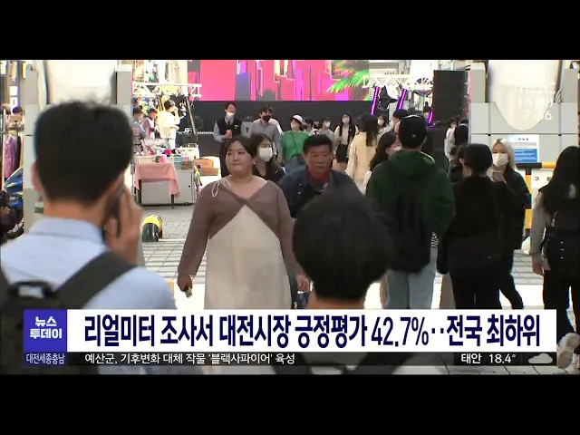 뉴스투데이 뉴스데스크뉴스투데이뉴스데스크 VOD(전체 다시보기)뉴스투데이 VOD(전체 다시보기)유튜브뉴스페이스북 뉴스카카오톡 뉴스인스타그램 뉴스 prev 2023.5.16 - 화요일 next 홍성 산불 이재민 조립주택 첫 입주/투데이 ◀앵커▶ 지난달 충남 역대 2위 규모의 산불이 덮친 홍성에서는 91명의 이재민이 집을 잃었습니다. 이후 이재민들은 비좁고 딱딱한 대피소 텐트에서 지내왔는데, 산불 발생 40여 일 만에 임시주거용 조립주... 김태욱 국토부-충남도, `예타 탈락` 서산공항 사업 재추진 논 국토교통부가 최근 정부의 예비타당성 조사에서 탈락한 서산공항 사업의 추진 의지를 재확인했습니다. 국토부는 충남도와 회의를 갖고 서산공항 사업의 재기획 용역을 통해 사업계획을 보완해 타당성을 갖... 문은선 한국타이어 이전 요구 속 이장우 시장도 공식 거론 대형 화재가 잇따라 발생해 인근 아파트단지 등에 큰 피해를 입힌 한국타이어 대전공장 이전 문제를 대전시가 공식 거론해 눈길을 끌고 있습니다. 이장우 대전시장은 회의에서 "이전과 존치 등 경우의 수... 김윤미 모두가 선생님..마을이 함께 키우는 아이들/투데이 ◀앵커▶ 어제는 스승의 은혜를 되새기고 가르침에 감사를 표하는 스승의 날입니다. 학령인구 감소에 특히 농촌학교는 소멸 위기까지 더해지면서 스승에 대한 개념도 확장하고 있습니다. 온 마을 주민이 선... 박선진 원격수업으로 주춤하던 교권 침해 다시 증가세 코로나19가 유행하던 시기 교권 침해가 다소 줄었지만, 최근 들어 다시 증가하는 것으로 나타났습니다. 시·도 교육청에 따르면, 대전지역 교권 침해 건수는 원격수업이 한창이던 지난 2020년 35건에서 지... 문은선 세종교육청, 디지털 교육혁신 공모 선정…선도학교 15 세종시교육청이 디지털 기반 교육혁신 시범교육청 공모사업에 선정돼 15억 원의 특별교부금을 받게 됐습니다. 시 교육청은 디지털 선도학교 15곳을 지정해 교육 역량 강화 연수와 디지털 학습기기 보급 등... 고병권 세종대왕 나신 날, 한글문화 수도 표방/투데이 ◀앵커▶ 어제는 우리 겨레의 큰 스승인 세종대왕의 탄신일이기도 합니다. 세종시가 이와 관련해 첫 공식 행사를 열고 한글을 창제한 세종대왕의 정신을 계승하겠다고 밝혔습니다. 고병권 기자가 보도합니... 고병권 리얼미터 조사서 대전시장 긍정평가 전국 최하위 여론조사기관의 전국 광역자치단체장 직무수행 지지도 조사에서 이장우 대전시장이 지난달까지 석 달 연속 전국 최하위에 머문 것으로 나타났습니다. 리얼미터가 실시한 조사에서 이 시장에 대한 긍정평가... 문은선 대전 회덕향교 인근 장등천교 왕복 2차로 확장 개통 설치된 지 40년이 넘은 대전시 읍내동 회덕향교 인근 경부선 철로 아래에 위치한 장등천교가 폭 15m, 왕복 2차로로 확장 개통됐습니다. 장등천교 확장 개통으로 인근 지역 주민들과 회덕향교 방문객들의 ... 김윤미 특허청, 해외 명품 위조 귀금속 제조·유통업자 적발 해외 유명상표가 버젓이 찍혀 있는 반지와 귀걸이 등 위조 귀금속을 만들어 대량 유통한 업자들이 적발됐습니다. 특허청 상표특별사법경찰은 서울 종로에 제조공장을 차려놓고 해외 유명상표를 위조한 목... 김윤미 세종시 올해 첫 추경예산, 2,047억원 편성 세종시가 올해 첫 추경 예산으로 2천47억 원을 편성해 시의회에 제출했습니다. 세종시는 이번 추경이 지역 경제 활성화와 대중 교통혁신 지원, 복지 안전망 구축, 문화·체육 기반 조성 등에 중점을 뒀다고... 고병권 충남도, 여성어업인 건강검진 비용 지원 충남도가 여성어업인 2백 명을 대상으로 근골격계 등 특화건강검진 비용을 최대 90%까지 지원합니다. 대상은 맨손 어업이나 장비 없이 잠수 어업에 종사하는 만 45세 이상 여성 어업인으로, 다음 달 중순... 김태욱 충남 펜션화재 증가세..7월까지 화재 합동점검 최근 3년간 충남지역 펜션 화재가 증가한 것으로 나타났습니다. 충남소방본부에 따르면 지난 2020년 7건이었던 도내 펜션 화재가 지난해 12건으로 해마다 증가했으며, 화재 원인으로는 부주의가 41%로 가... 문은선 보령시, 소공인 마케팅 비용 최대 4백만 원 지원 보령시가 소규모 제조업체의 판로 다각화와 온라인시장 진출을 돕기 위해 마케팅 비용을 최대 4백만 원까지 지원하는 '소공인 경영안정 지원사업'을 실시합니다. 대상은 대기업이나 프랜차이즈를 제외한 ... 김태욱 세종시 발달장애인 긴급돌봄센터 개소…전국 최초 아 세종시에 사는 발달장애인에게 24시간 돌봄 서비스를 제공할 긴급돌봄센터가 종촌동에 문을 열었습니다. 전국 최초 아파트형 돌봄 센터인 이 시설은 긴급 상황이 발생해 일시적 돌봄이 필요한 경우 만 6살... 문은선 청양군, 지방소멸 위기 극복 제안 10점 선정 청양군 옛 구봉광산 일대에 추진 중인 파크골프장 인근에 숙박시설과 먹거리 마을을 조성하자는 주민 제안이 지방소멸 위기 극복 우수 제안으로 뽑혔습니다. 해당 제안은 중부권 유동 인구 유입을 위해 파... 문은선 대전 김인균 4월 경기서 시속 36.39km 주파 프로축구 K리그 1에서 지난달 가장 빠르게 달린 선수는 대전하나시티즌 김인균 선수로 나타났습니다. 한국