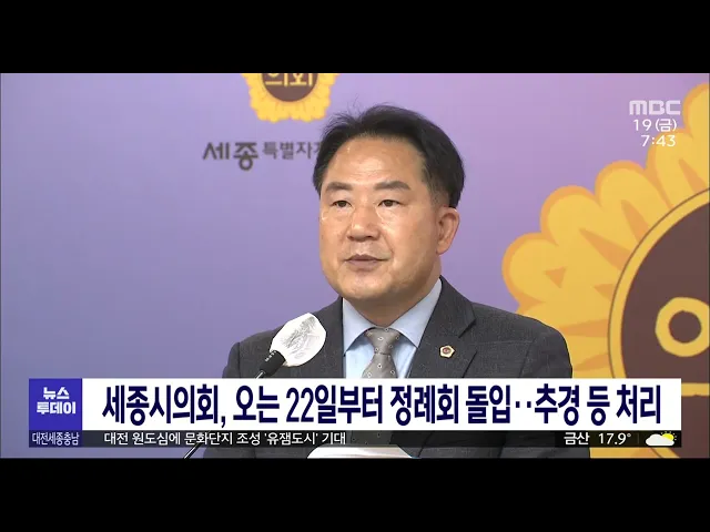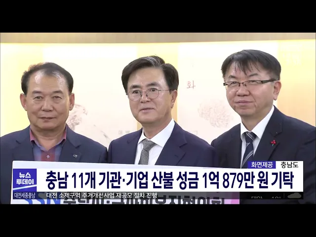 뉴스투데이 뉴스데스크뉴스투데이뉴스데스크 VOD(전체 다시보기)뉴스투데이 VOD(전체 다시보기)유튜브뉴스페이스북 뉴스카카오톡 뉴스인스타그램 뉴스 prev 2023.5.19 - 금요일 next 개원 앞두고 파업 조짐..국비 지원도 전무/투데이 ◀앵커▶ 이달 말 개원을 앞둔 대전 공공어린이재활병원, 그동안 추진 과정에서도 순탄치 않았는데 이번엔 직원 처우를 놓고 논란이 빚어지고 있습니다. 직원 대다수가 처우 개선을 요구하며 단체 행동에 ... 고병권 대전형 양육수당 받는 가정 97% "경제적으로 도움" 양육비 부담을 덜어주기 위해 대전시가 지난해부터 만 2살 이하 영유아를 키우는 모든 가정에 매달 30만 원씩 지원하는 대전형 양육기본수당이 좋은 반응을 얻고 있는 것으로 조사됐습니다. 대전시는 수당... 김윤미 세종시 인권센터 개소..인권침해 사례 상담 등 실시 세종시민들의 인권 증진을 위한 세종시 인권센터가 시청사 4층에 문을 열고 시민을 대상으로 한 인권 교육을 비롯한 다양한 인권 증진 사업에 나섰습니다. 세종시는 올해 하반기부터는 인권 침해 사건에 ... 김윤미 창립총회만 두 번, 시작부터 꼬이나?/투데이 ◀앵커▶ 충청권 4개 시도가 공동 추진하는 2027 하계 세계 대학 경기대회가 조직위원회 구성부터 난항을 겪고 있습니다. 정부가 조직위원회 출범에 제동을 걸면서, 두 달 만에 창립총회부터 다시 열어야 ... 고병권 강제추행 등 혐의 상병헌 세종시의회 불구속 기소 동료 의원을 성추행한 혐의 등으로 검찰수사를 받아오던 세종시의회 상병헌 의장이 기소됐습니다. 대전지검 여성·아동 범죄조사부는 지난해 8월 시의원 연수 이후 가진 식사 자리에서 동료 의원 2명을 강... 고병권 법원, 술값시비 살인 40대 남성 구속영장 발부 대전지방법원 서산지원이 지난 16일 서산시내 도로에서 흉기를 휘둘러 술집 주인을 살해한 40대 남성에게 구속영장을 발부했습니다. 법원은 영장실질심사에서 추가 도주우려가 높다고 보고 구속영장을 발... 김태욱 '노잼도시' 탈출? 원도심에 문화단지 조성/투데이 ◀앵커▶ 대전시가 두 번째 시립미술관과 공연장 등을 갖춘 문화예술단지를 원도심에 짓겠다는 청사진을 발표했습니다. 재미를 느끼거나 즐길 게 마땅치 않다는 의미로 '노잼도시'로 불리는 대전을 문화적 ... 김윤미 충남 11개 기관·기업 산불성금 1억 879만 원 기탁 홍성 등 5개 시·군에서 발생한 대형 산불 피해 복구에 써달라며 충남지역 11개 기관과 기업들이 1억 879만 원을 충남도에 기탁했습니다. 기관별로는 케이엠티엘에스가 3천만 원, 대한전문건설협회 세종충... 김태욱 화력발전소 폐지지역 주민·직원 대체산업 육성 시급 충남 도내 화력발전소 폐지지역 주민과 발전사 직원 10명 중 4명은 발전소 폐지에 따른 대책으로 대체산업 육성을 원하는 것으로 나타났습니다. 충남도가 지난 2월 화력발전소 폐지 지역 주민과 발전사 직... 김태욱 서산시, 군용비행장 소음피해보상금 26억 지급 결정 서산시가 군용비행장 소음 피해보상지역 대책심의위원회를 열고 주민들에게 소음 피해보상금 26억 원을 지급하기로 결정했습니다. 서산시에는 올해 들어 군용비행장 소음 피해보상 신청 만여 건이 접수됐... 김태욱 대전 소제구역 주거개선사업 재공모 절차 진행 지난 2월 한 차례 유찰된 대전시 동구 소제동 주거환경개선 사업 민간 사업자 재공모에 14개 건설사가 참가 의향서를 제출했습니다. 대전시와 LH는 최초 공모 때보다 사업비에 반영될 물가 변동률을 상향... 고병권 에너지연 "옥수수 부산물이 바이오 항공유 연료로 한국에너지기술연구원 민경선 박사팀이 쓸모없이 버려지는 옥수수 속대에서 항공유를 만들 수 있는 중간물질 '레불린산'을 추출하는 기술을 개발했습니다. 연구팀은 촉매의 농도와 반응 온도, 시간 등을 ... 고병권 "고독사 막자" 부여군, 노인 등 대상 AI 안부 살핌 서 부여군은 지역민을 대상으로 `인공지능 안부 살핌 서비스`를 시작합니다. 이 서비스는 AI 기술을 활용한 안부 전화 시스템을 활용해 고독사를 예방하고 도움이 필요한 가구가 있을 경우 필요 서비스를 연... 최기웅 개발정보 전달하고 아내 명의로 땅 산 LH 직원 집유 지인에게 개발 정보를 건네고 아내 등의 명의로 땅을 사 징역형의 집행유예를 선고받은 한국토지주택공사 직원이 항소를 포기해 형이 확정됐습니다. 1심 재판부는 해당 부동산을 사들인 가격보다 싸게 팔... 박선진 세종시의회 오는 22일부터 정례회 돌입 세종시의회는 오는 22일부터 시작될 정례회에서 시와 교육청이 제출한 3천 800억 원 규모의 올해 첫 추가 경정예산을 심의처리한다고 밝혔습니다. 시의회는 또, 조례안 47개와 예산안 4개 등 모두 76개의 ... 고병권 천안시, 도시계획에 빅데이터 기반 인공지능 활용 천안시가 국토교통부의 AI 도시계획 연구개발 실증 대상 지자체로 선정됐습니다. 이에 천안시는 올해 발주 예정인 2040년 도시기본계획에 빅데이터 기반 인공지능 도시계획 연구개발 기술을 시범 적용하며... 김광연 대전교육청·대전하나시티즌, 8개 학교서 축구교실 운 대전시교육청은 학생들이 즐거운 학교생활을 하며 스포츠정신을 기를 수 있도록 대전하