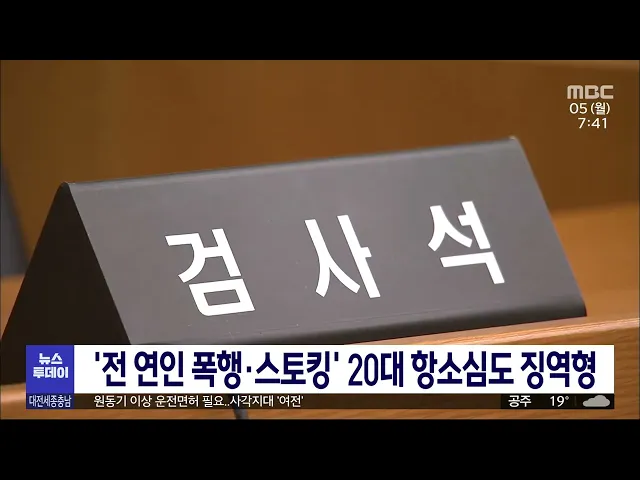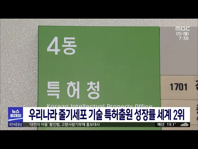 뉴스투데이 뉴스데스크뉴스투데이뉴스데스크 VOD(전체 다시보기)뉴스투데이 VOD(전체 다시보기)유튜브뉴스페이스북 뉴스카카오톡 뉴스인스타그램 뉴스 prev 2023.6.5 - 월요일 next 사고는 계속 나는데 여전한 '공유 킥보드'/투데이 ◀앵커▶ 전동 킥보드로 인한 사고가 사회 문제가 되면서 2년 전부터 원동기 이상 운전면허가 있어야 이용할 수 있도록 법이 개정됐습니다. 문제는 아직까지 대여업체가 면허 소지여부를 검증해야 할 의무... 박선진 대전 중구 `안전 플랫폼` 구축…대피소 실시간 확인 최근 북한 우주발사체 발사 당시 서울시가 부정확한 재난 문자로 혼란을 초래한 가운데 대전 중구가 재난 상황에서 대피소 등을 쉽게 찾을 수 있도록 안전 플랫폼을 구축했습니다. 중구는 지진이나 대형화... 문은선 대전 현대아울렛 오는 12일 재개장...화재 9개월 만 지난해 9월 대형 화재로 8명의 사상자를 낸 현대아울렛 대전점이 9개월여 만인 오는 12일 영업을 재개합니다. 현대아울렛 대전점은 현재 노동당국의 건물에 대한 작업중지 명령 해제 심의 절차만 남겨둔 ... 김지혜 숲에서 태교를..치유 공간 된 숲/투데이 ◀앵커▶ 나무 자원을 확보하는 수단이던 숲이 몸과 마음을 치유하는 공간으로 부상하고 있습니다. 숲에서 태교 프로그램을 진행하기도 하고 기존 어린이 위주의 숲 체험 프로그램이 다양한 연령층으로 확... 김광연 '조수미 기증' 휠체어 그네 안전기준 마련 성악가 조수미 씨가 세종시의 특수학교에 기증한 휠체어 그네가 관련 규정이 없어 폐기 처분된 것과 관련해 정부가 안전기준을 마련합니다. 산업통상자원부 국가기술표준원은 장애인용 휠체어 그네의 안전... 김지혜 대전 갑천습지 내륙습지보호지역 지정 대전 갑천습지가 습지보호지역으로 지정됐습니다. 환경부는 도심 하천구간인데도 퇴적층이 발달해 자연 상태가 원시성을 유지하는 등 생태 가치가 우수하다며 일대 0.901㎢ 구역을 국가 내륙습지 보호지역... 문은선 대전기상청, 폭염 영향예보 음성전달 시범서비스 대전지방기상청이 공주시, 보령시, 부여군, 예산군 등 충남 4개 시군과 함께 농촌 어르신을 대상으로 올여름 폭염 영향예보 음성전달 시범 서비스를 운영합니다. 기상청은 폭염 등 여름철 위험 기상이 예... 문은선 한국, 줄기세포 기술 특허출원 성장률 세계 2위 줄기세포 기술 특허출원 연평균 증가율이 중국에 이어 우리나라가 2위를 기록했습니다. 특허청에 따르면 2011년부터 10년간 우리나라 줄기세포 특허출원량은 연평균 10.7% 증가했는데, 32.6%인 중국에 이... 김지혜 코레일 사장 추천위 회의 결과 외부 블로그 유출 논란 한국철도공사 신임 사장 선임을 위한 임원추천위원회 평가 결과가 외부로 유출돼 논란이 일고 있습니다. 지난 3월 해임된 나희승 전 코레일 사장 후임을 정하기 위한 임추위가 지난 1일 후보자 5명을 추렸... 김지혜 "같이 죽자" 스토킹 355회 20대, 항소심서 징역 4년 대전지법 형사항소 5부 김진선 부장판사는 전 연인을 수백 차례 협박하고 스토킹해 1심에서 징역 4년 6월을 선고받은 20대의 항소심에서 징역 4년에 40시간 스토킹 치료 프로그램 이수를 선고했습니다. 재... 김지혜 대전 자치구, 증명서 발급 등 주민 편의 개선 대전지역 자치구들이 대민 서비스를 개선합니다. 대전 유성구는 충청지방우정청과 협약을 맺고 이달(6)부터 장애인등록증 개별 배송 서비스를 실시해 기존 장애인등록증 수령을 위해 동 행정복지센터를 방... 문은선 '대전의 아들' 황인범, 고향사랑기부제 홍보대사 '대전의 아들' 축구 국가대표 황인범이 대전시 고향사랑기부제 홍보대사로 위촉됐습니다. 대전에서 태어나 학교를 다니고 프로 데뷔도 대전시티즌에서 한 황 선수는 고향사랑기부제 홍보는 물론 대전 0시 ... 문은선 충남도, 지역대학 지원 전담조직 만든다 충남도가 지역대학을 체계적으로 지원하기 위해 전담 조직을 신설합니다. 도는 교육지원담당관을 고등교육정책담당관으로 변경하고 대학협력팀을 대학정책팀과 지산학협력팀으로 확대 신설하는 내용의 조... 김지혜 국제정원박람회 붐 조성 시동…세종서 1가정 미니정원 세종시가 오는 2025년 국제정원도시 박람회 개최를 앞두고 붐 조성을 위해 한 가정 한 개 미니정원 갖기 운동을 펼칩니다. 국제정원관광네트워크 세종지회는 미니정원 갖기 운동의 하나로 오는 13일 베어... 김지혜 홍성군, 가업승계 소상공인 지원..최대 천만 원 홍성군이 가업승계 소상공인을 발굴하고 장수 소상공인으로 육성하기 위해 가업승계를 지원합니다. 대상은 같은 업종으로 2대 이상에 걸쳐 15년 이상 사업을 하고 있는 소상공인으로, 올해 3개 업체를 선... 문은선