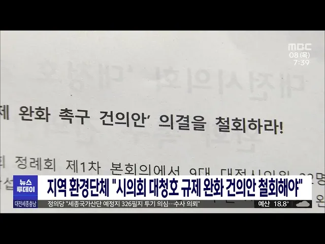 뉴스투데이 뉴스데스크뉴스투데이뉴스데스크 VOD(전체 다시보기)뉴스투데이 VOD(전체 다시보기)유튜브뉴스페이스북 뉴스카카오톡 뉴스인스타그램 뉴스 prev 2023.6.8 - 목요일 next 尹 "청주 도심 통과"..광역철도 속도?/투데이 ◀앵커▶ 충청권을 하나의 생활권으로 묶기 위한 가장 핵심으로 꼽히는 광역철도 사업, 최근 예비타당성 조사 대상에서조차 빠져 우려를 낳았는데요. 윤석열 대통령이 청주 도심 통과 노선을 사실상 확정하... 김윤미 윤 대통령, 부여 청년 농업인과 모내기 어제충북 청주에서 열린 평택-오송 구간 고속철도 2복선화 착공식에 참석한 윤석열 대통령은 이어 부여군 임천면의 한 영농조합법인을 찾아 청년 농업인들과 함께 모내기에 참여했습니다. 윤 대통령은 최... 고병권 정의당 "세종국가산단 예정지 326필지 투기 의심…수 정의당 세종시당은 세종국가산업단지가 조성될 연서면 일대에 투기가 의심되는 부동산이 320여 필지에 이른다고 주장했습니다. 정의당은 국토교통부가 제출한 자료를 분석한 결과, 2017년부터 지난해까지 ... 고병권 대회 조직위 갈등, 충청권도 갈라서나?/투데이 ◀앵커▶ 2027 충청권 하계세계대학 경기대회 조직위원회 구성을 놓고 문화체육관광부와 대한체육회가 첨예한 갈등을 빚고 있는데요. 그런데, 이런 논란이 대회를 공동 유치한 충청권 4개 시도 안에서도 서... 고병권 세종시의회 후임 의장에 이순열 의원 추대 전임 의장 불신임 의결로 현재 공석 상태인 세종시의회 의장에 더불어민주당 이순열 의원이 추대됐습니다. 민주당 세종시당은 그제오후 비공개 의원총회를 열고 상병헌 전 의장 후임에 현 산업건설위원장... 고병권 '벌금 1500만 원' 박경귀 아산시장 항소 공직선거법 위반 혐의로 1심에서 벌금 천 5백만 원을 선고받은 박경귀 아산시장이 항소했습니다. 1심 재판부는 박 시장이 상대 후보가 당선되지 못하게 할 목적으로 허위사실이 담긴 성명서를 배포했다며 ... 김광연 조화 쓰레기만 8톤..처리 어쩌나/투데이 ◀앵커▶ 그제 현충일을 맞아 4만 명이 넘는 추모객들이 국립대전현충원을 다녀갔는데요. 추모객들이 헌화한 꽃이 대부분 플라스틱 조화다 보니 매년 그렇듯, 올해도 조화 쓰레기 양이 어마어마합니다. 이... 뉴스팀 공주 제2금강교 8월 착공 추진..오는 2026년 완공 노후된 금강교를 대체해 공주시 신관동과 금성동을 연결하는 제2금강교 건설사업이 본격 추진됩니다. 행정중심복합도시건설청과 공주시는 385억 원의 사업비를 투입해 총길이 513미터로 건설하는 제2금강... 김윤미 서천군 신청사 준공.. 13일부터 청사 이전 서천군이 신청사 준공을 마치고 오는 13일부터 일주일 동안 청사를 이전합니다. 서천군 신청사는 서천읍 군사리 옛 서천역 주변에 지하 1층, 지상 6층 규모로, 문화강좌와 열린 도서관, 북카페 등을 갖춘 ... 김태욱 대전교육감 "용문 재건축지역 내 초등교 신설 어려워" 대전 용문동 재건축지역에 초등학교 신설을 요구하는 민원 등에 대해 대전시교육감이 어렵다는 입장을 내놨습니다. 설동호 교육감은 대전시의회 본회의에 출석해 가칭 용문초 신설 계획을 묻는 질의에 용... 문은선 "대전시의회, 대청호 규제 완화 촉구 철회해야" 대전과 충북지역 환경단체는 대전시의회 앞에서 기자회견을 열고 최근 시의회가 의결한 '대청호 주변 지역 규제 완화 촉구 건의안'을 철회할 것을 촉구했습니다. 이들 단체들은 "대청호는 지역에 식수와 ... 김지혜 한남대, 고 서의필 박사 추모 행사·전기 출판기념회 한남대는 대학 설립자 중 한 명인 고 존 서머빌, 한국 이름 서의필 선교사를 추모하는 예배에 이어 흉상 제막식과 전기 출판기념회를 가졌습니다. 이 자리에는 고 서의필 박사의 동료 교수였던 오승재 명... 문은선 연료 아낀 달탐사선 '다누리' 수명 2년 늘어날 듯 성공적으로 달 궤도에 도착해 관측 임무를 수행 중인 국내 첫 달 탐사선 '다누리'의 수명이 오는 2025년까지로 2년 더 늘어날 전망입니다. 과학기술정보통신부는 다누리의 연간 소모 연료량이 예상보다 적... 김윤미 천안 태학산휴양림에 사계절 푸른 수직정원 조성 천안시 풍세면 태학산자연휴양림 치유센터에 사계절 내내 푸르름을 선사하는 실내수직정원 '스마트가든볼'이 조성됐습니다. '스마트가든볼'은 공기 정화 식물인 스킨답서스, 테이블 야자 등 7종 380본으로... 김광연 천안시, 천안삼거리공원 재개발 사업 내년 말 마무리 지난해 사업에 착수한 천안삼거리공원 재개발 사업이 오는 8월까지 주변 인프라 조성을 마무리하고 오는 2025년 가족형 공원으로 재탄생합니다. 시는 삼거리천 일부에 하천 관람 스탠드와 수변 산책로, 생... 김광연 "대전 원도심에 새로운 볼거리"…목척교 야간경관 개 대전 원도심에 있는 목척교 야간경관 개선사업이 마무리돼 매일 밤 다양한 이미지가 연출됩니다. 새로 조성된 야간경관은 교량 상징조형물 옆과 아래에 LED 조명 천여 개를 설치하고 조형물 안과 기상전광... 문은선 아산 문화재 '야행' 성황리 개최..4만여 명 방문 지난 2일부터 나흘 동안 아산시 외암민속마을에서 열린 아산 문화재 '야행'에 4만 명에 달하는 방문객들이 찾아오는 등 성