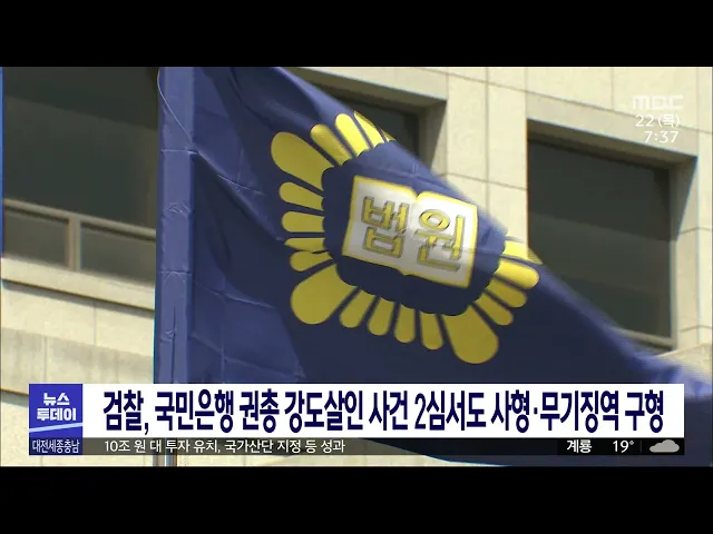 뉴스투데이 뉴스데스크뉴스투데이뉴스데스크 VOD(전체 다시보기)뉴스투데이 VOD(전체 다시보기)유튜브뉴스페이스북 뉴스카카오톡 뉴스인스타그램 뉴스 prev 2023.6.22 - 목요일 next 한타 화재 또 원인불명...이전 논의 불붙나/투데이 ◀앵커▶ 지난 3월 한국타이어 대전공장에서 발생한 화재가 9년 전 화재와 마찬가지로 화재 원인을 특정할 수 없다는 감정 결과가 나왔습니다. 비슷한 대형 화재가 반복되면서 주민들 뿐 아니라 대전시까지... 김지혜 "대청호 골프장 저지" 충청권 60개 시민단체 대책위 충북 옥천군 대청호 인근에 골프장 건설이 추진되는 가운데 이를 반대하는 대전과 세종, 충남북 지역 60개 시민 환경단체들이 대책위를 꾸려 공동 대응에 나섰습니다. 이들은 골프장 예정지는 환경부 지정... 문은선 "학생 볼모 삼은 학비노조 파업 철회하라" 대전시교원단체총연합회와 대전시교육청공무원노조 등이 시의회 앞에서 기자회견을 열고 비정규직노조 파업 철회를 촉구했습니다. 이들은 비정규직노조 파업이 장기간 이어지면서 급식과 돌봄 대란 등 학... 박선진 "기소된 구청장 사퇴하라" 민주당 대전서구의원 서철모 대전 서구청장이 체육회장 선거 후보자 사퇴를 종용한 혐의로 불구속 기소된 가운데, 더불어민주당 서구의회 의원들이 구청장 사퇴를 촉구하며 본회의 구정 질문을 거부했습니다. 어제 열린 대전 ... 고병권 2백억 원대 피해..전화금융사기 일당 검거/투데이 ◀앵커▶ 경찰이 중국에 콜센터를 만들어 2백억 원대 전화금융사기를 벌인 일당 일부를 붙잡았습니다. 이들은 검찰 수사관과 검사, 금감원 등 3단계로 콜센터 역할을 나누는 등 치밀하게 범행한 것으로 드... 김광연 대전 국민은행 강도살인..두 피고인 권총발사 부인 검찰이 22년 전 발생한 대전 국민은행 권총 강도살인 사건의 주범 이승만에 대해 2심에서도 법정 최고형인 사형을 구형했습니다. 대전고법 형사1부 심리로 열린 항소심 결심 공판에서 검찰은 이승만과 이... 박선진 천안 지하주차장 화재 사건, 불 낸 직원 항소심 감형 차량 677대가 피해를 본 천안 아파트 지하주차장 화재 사건과 관련해 불을 낸 출장 세차업체 직원이 항소심에서 감형됐습니다. 대전고법 제4형사부는 해당 직원의 과실이 분명하고 결과도 엄중하지만 단순... 박선진 '세종서 만취운전으로 7명 사상' 검찰 상고 만취상태로 차를 몰다 7명의 사상자를 낸 정부세종청사 공무원에 대한 항소심에서 징역 2년이 선고된 가운데, 검찰이 판결에 불복해 상고했습니다. 해당 공무원은 지난해 4월 밤 세종시 금강보행교 앞 도... 박선진 만 70세 이상 대전시민 9월부터 버스요금 무료 오는 9월부터 만 70살 이상 대전 시민들은 무료로 시내버스를 이용할 수 있습니다. 시는 오늘 대전 대덕구청에서 시구 협력 회의를 열고, 무임 교통카드 발급을 위한 안내문 배포 등 협조를 구했으며 오는... 고병권 충남 서남부권 해바라기센터 내년 1월 홍성의료원에 성폭력 피해자 지원 기관인 해바라기센터가 현재 천안에 한 곳이 운영중인 가운데 홍성의료원에 추가로 설치됩니다. 충남도는 여성가족부의 설치 승인이 나면 다음 달 공사를 시작해 내년 1월부터 365일 2... 문은선 취임 365일, 성과와 과제는? 충남도지사/투데이 ◀앵커▶숨 가쁘게 달려온 민선 8기의 지난 365일을 되짚어 보는 기획보도, 오늘은 마지막으로 충청남도 순서입니다. 김태흠 충남지사는 취임 전부터 '힘쎈 충남'을 내걸고 지지부진한 지역 현안 해결을 약... 김태욱 충청권 메가시티 지역별 설명회 충청권 메가시티 건설이 목표인 특별지방자치단체 합동추진단이 오는 26일부터 4개 시도를 돌며 설명회를 엽니다. 4개 시도 연구원 등이 주관하는 설명회는 오는 26일 충북도를 시작으로 대전시와 세종시,... 고병권 태극전사 황인범, 충남 산불피해 복구비 3천만원 기탁 대전 출신의 축구 국가대표 황인범 선수가 지난 4월 충남에서 발생한 대형 산불 피해 복구 성금 3천만 원을 대전사회복지공동모금회에 기탁했습니다. 황 선수는 산불로 생계가 무너진 이재민들이 지금도 ... 문은선 '지상 15층' 정부세종청사 중앙동 화재 대비 훈련 정부세종청사 가운데 지상 15층으로 가장 높은 중앙동에서 발생할 수 있는 화재에 대비한 훈련이 행정안전부와 기획재정부 등 4개 기관 합동으로 어제 실시됐습니다. 이번 초고층 건물 화재 대비훈련은 중... 김윤미 반크, 국가별 언어사전에 `인삼`(insam) 단어 등재 추 사이버 외교 사절단 반크가 국가별 언어 사전에 인삼 영문표기를 현재 '진생'이 아닌 한글 발음 그대로 '인삼' 으로 등재하는 방안을 추진합니다. 반크는 영문으로도 'Insam(인삼)' 단어를 등재하는 캠페... 문은선