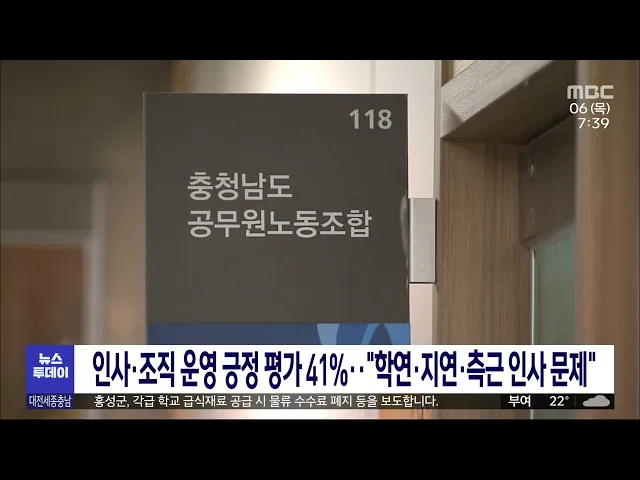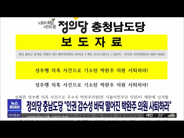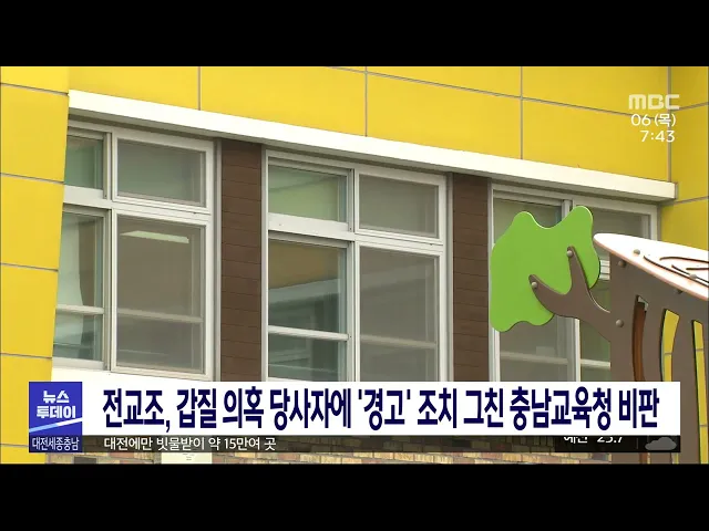 뉴스투데이 뉴스데스크뉴스투데이뉴스데스크 VOD(전체 다시보기)뉴스투데이 VOD(전체 다시보기)유튜브뉴스페이스북 뉴스카카오톡 뉴스인스타그램 뉴스 prev 2023.7.6 - 목요일 next 꽉 막힌 빗물받이…집중호우 때 '무용지물'/투데이 ◀앵커▶ 우리 지역에 내렸던 이번 장맛비는 일부 지역에는 하루 만에 최대 100mm 넘는 강수량을 기록했습니다. 특히 짧은 시간 많은 양을 쏟아붇는 집중호우의 특성이 이번에도 여실히 드러났는데요. 이처... 뉴스팀 KPIH 유성복합터미널 사업면허 취소 확정..사업 탄력 대전 유성복합터미널 사업 시행자였던 KPIH가 대전시장을 상대로 대법원에 낸 '사업면허 취소처분 취소청구' 소송이 기각됐습니다. KPIH는 지난 2019년 사업면허를 취득한 뒤 토지매매계약 대금 594억 원... 조형찬 대덕과학문화센터, 한국토지신탁에 920억에 매각 목원대가 수의계약을 통해 대전 대덕과학문화센터를 한국토지신탁에 920억 원에 매각했습니다. 목원대는 앞서 한국자산관리공사 공매 시스템인 온비드를 통해 두 차례 공개 입찰을 진행했으나 자격조건 미... 문은선 천안시, 시내버스 3사와 준공영제 도입 위해 협력 천안시가 시내버스 업체 세 곳과 협약을 맺고 천안형 시내버스 준공영제 도입과 스마트 교통혁신을 위해 협력하기로 했습니다. 천안시와 업체들은 표준운송원가 산정과 정산 방법, 운수종사자 1일 2교대제... 김광연 "갈라지고 꺼지고" 대전시 공사로 곳곳 피해/투데이 ◀앵커▶ 대전시가 원도심 상권을 살리겠다며 대전천을 사이에 두고 단절된 지하상가 두 곳을 잇는 공사를 진행했습니다. 그런데 공사 현장 주변에서 멀쩡하던 건물 곳곳이 갈라지거나 땅이 꺼지는 등 피해... 김윤미 충남공무원노조, 김 지사 도정 수행 만족 인사엔 불만 충남도 공무원의 66%가 김태흠 지사의 지난 1년간의 도정 수행을 긍정적으로 평가한다는 설문 결과가 나왔습니다. 충남도 공무원노동조합이 김 지사 취임 1년을 맞아 설문 조사를 진행한 결과 응답자의 66... 김태욱 정의당 충남도당 "박완주 의원 사퇴하라" 정의당 충남도당이 보좌관 성추행 혐의로 불구속 기소된 무소속 박완주 의원에 대해 의원직 사퇴를 촉구했습니다. . 정의당은 "이번 사건을 통해 인권감수성이 바닥에 떨어진 것을 적나라하게 보여준 박완... 김광연 '교사 집단 퇴사' 세종 국공립어린이집 원장 직무정지 세종시가 부실 급식 의혹과 고용승계 갈등 등으로 보육교사가 집단으로 퇴사했던 세종의 한 국공립어린이집의 원장에게 직무 정지를 결정했습니다. 시는 감사위원회의 조사와 함께 아동학대 혐의에 대한 ... 이승섭 대전시, 인구 회복 원년 선포/투데이 ◀앵커▶ 대전시의 인구는 10년째 감소하고 있습니다. 150만 명 아래로 떨어진 지 오래고 인구 감소의 속도도 빨랐는데, 최근 긍정적인 변화가 감지되고 있습니다. 대전시가 올해를 인구 회복 원년으로 정... 이승섭 전교조, 갑질 당사자 '경고'에 그친 충남교육청 비판 보령의 한 공립유치원에서 발생한 관리자 갑질 의혹과 관련해 충남도교육청이 감사를 통해 '경고' 조치를 내린 것에 대해 전교조 충남지부가 비판하고 나섰습니다. 전교조는 피해 교사들이 구체적인 내용... 김태욱 설동호대전교육감 "비정규직노조와 합리적 교섭 노력" 급식 조리원 등 비정규직노조의 파업으로 50일 넘게 일부 학교의 급식 중단 사태가 이어지는 가운데 설동호 대전교육감이 교섭에 최선을 다하겠다고 말했습니다. 설 교육감은, 취임 1년 기자회견에서 학교... 박선진 최교진 세종교육감 "방학 중에도 학교 급식 제공" 최교진 세종교육감이 방학 중에도 학교 급식을 지원하겠다고 밝혔습니다. 최 교육감은 취임 1년을 맞아 연 월례회의에서 방학은 단절의 시간이 아니라 성장의 시간이 돼야 한다며 방학 중에도 학교 급식을... 문은선 홍성군, 예비부부에 건강검진 무상 지원 홍성군이 이달부터 무상 건강검진 지원 대상자를 기존 예비맘에서 배우자를 포함한 예비부부로 확대합니다. 지원 대상은 홍성군에 주소를 둔 예비부부와 신혼부부들로 검진 희망자는 신분증과 가족관계증... 김태욱 서천군, 모바일 서천사랑상품권 한도 30->50만 상향 서천군이 이달부터 모바일 서천사랑상품권의 월 구매 한도를 50만 원으로 상향합니다. 서천군은 고물가에 따른 소비위축으로 어려움을 겪는 소상공인을 돕기 위해 구매 한도를 상향하고, 할인율은 기존과 ... 김태욱