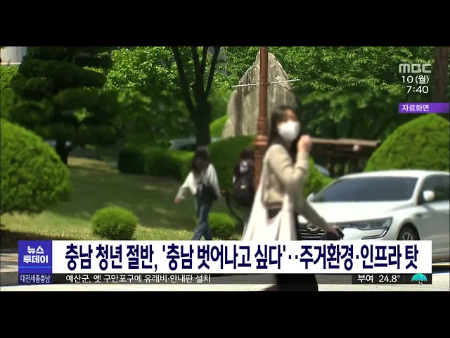 뉴스투데이 뉴스데스크뉴스투데이뉴스데스크 VOD(전체 다시보기)뉴스투데이 VOD(전체 다시보기)유튜브뉴스페이스북 뉴스카카오톡 뉴스인스타그램 뉴스 prev 2023.7.10 - 월요일 next 내포신도시에 충남 산업동물의료원 추진/투데이 ◀앵커▶ 충남은 전국 최대 규모 양돈 농가가 밀집해 있는 지역이어서 가축 전염병 등에 더 민감한데요, 하지만 정작 산업 동물 진료와 의약품 연구, 수의과 인재를 양성할 시설이 없었는데 내포신도시에 ... 김태욱 과기부·충청권, 디지털 활용 재난안전관리체계 구축 대전과 세종, 충남북 등 충청권 4개 광역단체가 과학기술정보통신부와 함께 디지털 기술을 활용한 재난안전관리 실증 사업을 추진합니다. 올해부터 3년간 국비 등 120억 원이 투입되는 이번 사업은 지역별... 뉴스팀 대전경찰청 "미등록 영아 24명 확인 중" 대전경찰청이 출산 기록은 있으나 출생 신고가 안 된 이른바 `미등록 영아` 사건과 관련해 24명의 소재를 파악 중이라고 밝혔습니다. 경찰은 대전시로부터 출생 미신고 아동 전수조사를 통해 43명에 대해 ... 뉴스팀 지역 소상공인 경기 전망 악화...인건비 등 부담 대전지역 소상공인들의 체감경기가 전국에서 가장 악화된 것으로 나타났습니다. 지난달 기준 소상공인시장 경기동향조사에 따르면 전국 평균 소상공인 경기체감 지수는 63.9로 나타났는데, 이중 대전은 전... 최기웅 충남 청년 절반, '충남 벗어나고 싶다' 충남도가 지역 내 청년 2천 명을 대상으로 청년종합실태조사를 진행한 결과 응답자 절반이 다른 지역에서 살고 싶다고 답한 것으로 나타났습니다. 이주를 원하는 이유로는 주거환경·인프라가 부족하거나 ... 김태욱 산불·산사태 AI로 예측…농림위성 활용 산림청 국립산림과학원이 2027년까지 인공지능으로 산불·산사태를 예측하고 농림위성을 활용하는 디지털 산림관리체계를 구축합니다. 국립산림과학원이 발표한 `산림과학 연구 중기 기술개발 실행계획`에 ... 최기웅 예당호에 생태수로·생태체험장 등 조성한다 충남도는 예산군 예당호 일원에 내년까지 국비 55억원을 투입해 3만3천㎡ 규모의 생태수로와 생태숲·생태체험장·정화 습지 등을 조성합니다. 예당호 일대는 환경부 주관 생태수로 조성 공모사업 대상지로 ... 최기웅 보령 성주산휴양림 오는 15일부터 피서철 운영 보령시가 피서철을 맞아 오는 15일부터 다음 달 24일까지 성주산자연휴양림 성수기 운영에 들어갑니다. 성주산자연휴양림은 편백나무 숲과 함께 숙박시설 20개 실과 캠핑장, 편의시설 등을 갖추고 있으며 ... 김태욱 충남도 "여름철 식중독 예방 점검 실시" 충남도가 오늘부터 닷새간 여름 휴가철 식중독 예방을 위한 점검에 나섭니다. 충남도는 각 시군 그리고 대전지방식약청과 함께 합동점검반을 꾸려 여름 성수품 제조업체와 휴가지 음식점, 보양식 판매점 ... 뉴스팀