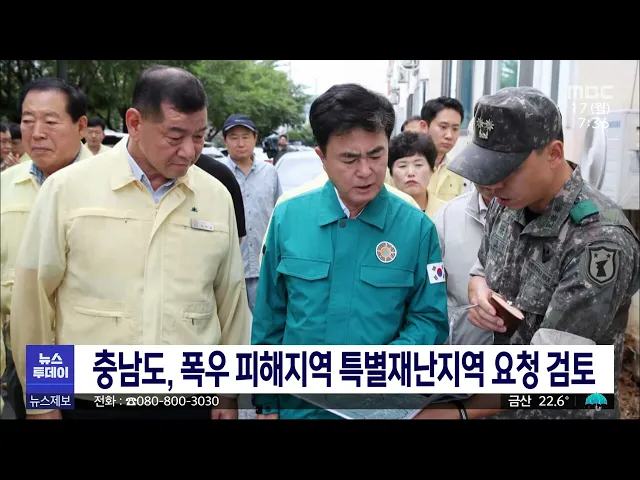 뉴스투데이 뉴스데스크뉴스투데이뉴스데스크 VOD(전체 다시보기)뉴스투데이 VOD(전체 다시보기)유튜브뉴스페이스북 뉴스카카오톡 뉴스인스타그램 뉴스 prev 2023.7.17 - 월요일 next 청양·논산 제방 3곳 와르르.. 물바다/투데이 ◀앵커▶ 계속된 비로 충남 청양과 논산에서 제방 3곳이 무너지면서 농경지와 축사 등 370ha, 축구장 5백개에 달하는 면적이 물에 잠겼습니다. 하루새 청양과 논산에서만 7백여 명의 이재민이 발생했고, 아... 김태욱 산사태에 가축 구출 작전까지/투데이 ◀앵커▶ 사흘간 집중적으로 내린 극한호우에 산사태와 홍수가 주택을 덮치는가 하면 가축이 떠내려가는 등 피해가 속출했습니다. 필사적인 구조와 탈출에 나선 피해 현장들이 많았는데요. 여러분들이 주신... 조형찬 충남도, 폭우 피해지역 특별재난지역 요청 검토 지난 13일부터 계속된 폭우로 5명이 숨지는 등 많은 피해가 발생한 충남도가 정부에 특별재난지역 요청을 검토하고 있습니다. 김태흠 충남지사는 어제피해 현장 등에서 상황을 확인한 뒤 인명 피해와 이재... 조형찬 논산 산사태 사망.."합장 일정 조정 않은 논산시 책임 폭우로 논산 양지추모원 납골당에서 산사태로 2명이 숨진 것과 관련해 논산시의 책임론이 제기됐습니다. 더불어민주당 충남도당은 어제김종민 의원과 복기왕 도당 위원장 등이 숨진 추모객의 빈소를 찾은 ... 조형찬 충남 등 호우 피해지역에 자원봉사지원단 가동 행정안전부는 집중호우 피해지역 수해복구 지원을 위해 충남에 자원봉사지원단을 가동했습니다. 이들은 이재민 구호와 급식·급수, 환경정비 등을 지원하고 있으며 앞으로 피해 집 정리, 세탁, 농작물 복구... 문은선 세종시 합강캠핑장 폐쇄..복구 후 10월 재개장 폭우로 완전 침수된 세종시 연동면 합강캠핑장이 폐쇄돼 오는 10월 재개장합니다. 세종시시설관리공단은 캠핑장에 설치된 캐러밴 63대 중 7대만 고지대로 옮겼다며 석 달간의 복구작업을 거쳐 오는 10월 ... 문은선 남당항-죽도 도선 운항, 한 달 동안 중단 홍성군 죽도와 남당항을 오가는 배 운항이 오늘부터 한 달 동안 중단됩니다. 해당 도선 운항사인 홍주해운은 해양쓰레기가 스크루에 자주 걸려 고장이 잦고 운항하지 못하는 날이 많다 보니 적자가 쌓여 ... 김태욱 공주시 `일상돌봄 서비스 사업` 선정 공주시가 보건복지부 주관 일상 돌봄 서비스 사업 수행지역으로 선정됐습니다. 대상은 질병이나 고립 등으로 혼자 일상생활이 어려운 중장년과 가족 돌봄 청년으로, 재가 돌봄과 가사 서비스 등 일상생활 ... 문은선 게임장에 앙심 '감금' 상습 허위신고 남성 2명 구속 대전경찰청은 게임장에 앙심을 품고 상습 허위 신고를 한 남성 3명을 검거해 2명을 구속했습니다. 이들은 지난 5월부터 대전의 사행성 게임장 4곳을 상대로 경찰과 소방 당국에 '감금을 당했다'는 등의 허... 조형찬 미국 내 우리기업 특허공격 80%는 '특허괴물' 제소 지난해 미국에서 우리나라 기업을 상대로 한 특허소송 10건 중 8.5건은 이른바 특허괴물로 불리는 글로벌 특허관리전문회사가 제소한 것으로 나타났습니다. 특허청이 분석한 미국 내 우리 기업의 특허분쟁... 문은선 상반기 국내 특허출원 10만7천건..4.1% 증가 상반기 국내 특허출원이 10만 7천 건으로 지난해 보다 4.1% 늘었습니다. 특허청은 반도체와 디지털 통신 정보전송, 전기기계, 이차전지 등 수출 주력산업을 중심으로 특허출원이 늘었고, 전자상거래 중개 ... 조형찬 대전 대덕구, 오는 21일부터 맥주페스티벌 오는 21일부터 대전 대덕구 일대에서 '대덕거리 맥주페스티벌'이 6주간 순차적으로 열립니다. 대전 대덕구는 지역 골목 상권 활성화를 위해, 오는 21일과 22일 중리동, 28일과 29일은 신탄진동 등 상점가... 조형찬 시민참여형 '청년작가 5인 미술전' 9월까지 진행 시민참여형 청년작가 5명의 미술전이 개막 2주 만에 주목받으며 오는 9월까지 대전시립미술관에서 계속됩니다. 공모를 통해 선정된 김피리, 박다빈 등 5인의 작가가 참여하는 '넥스트코드 2023, 다이버, ... 조형찬 충남도, 21일까지 테러 대비 다중이용시설 합동 점검 충남도가 오는 21일까지 닷새동안 국정원과 충남경찰청, 시·군과 함께 테러에 대비해 다중이용시설을 합동 점검합니다. 점검 대상은 테러에 취약한 문화시설과 대형마트, 버스터미널과 종합병원 등 34곳으... 김태욱 [충북/리포트]위험한 산지 개간..개인 개발 속수무책 ◀ANC▶ 이번 집중호우에서 보듯 장마철 많은 비가 내리면 지반이 약해지면서 산사태 위험이 커집니다. 사고가 발생하면 인명 피해가 발생하지만 정작 개인이 개발행위를 하는 곳에서는 손쓸 방법이 없... 문은선