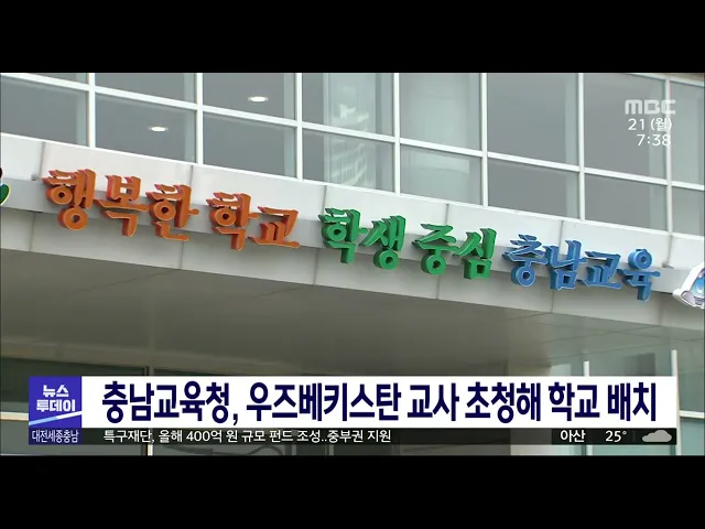 뉴스투데이 뉴스데스크뉴스투데이뉴스데스크 VOD(전체 다시보기)뉴스투데이 VOD(전체 다시보기)유튜브뉴스페이스북 뉴스카카오톡 뉴스인스타그램 뉴스 prev 2023.8.21 - 월요일 next 폭염에 주목받는 민간정원/투데이 ◀앵커▶ 민간정원이 확산하고 있습니다. 대전에서만 5곳이 지정돼 가꾸는 사람이나 보는 사람한테 심신의 안정을 주고 있는데요. 극심한 폭염이나 풍수해 예방 효과도 기대됩니다. 조형찬 기자가 보도합니... 조형찬 '부인 금테크 사기 혐의' 부여군의원 자진 사퇴 부인의 금테크 사기 사건이 불거진 부여군의원이 의원직에서 스스로 물러났습니다. 해당 군의원은 변호사를 통해 배포한 입장문에서 불미스러운 사건으로 물의를 일으켜 사죄드린다며 모든 게 자신의 불찰... 문은선 세종시, 광역시 최초로 농업인 수당 지급 세종시가 최근 광역시 가운데는 처음으로 농업인 3명에게 농업인 수당을 지급한 것을 비롯해 오는 11월까지 농가에 수당을 지급합니다. 시는 농촌 소멸을 막고 농업의 공익적 가치를 높이기 위해 지난해 ... 김광연 `휠체어 그네` 설치·관리 안전기준 마련…10월말부터 장애인 어린이용 휠체어 그네에 대한 안전 기준이 마련돼 이르면 오는 10월부터 휠체어 그네를 다시 사용할 수 있게 됩니다. 산업통상자원부가 휠체어 그네의 안전 기준을 담은 안전 인증 대상 어린이 제... 문은선 충남교육청, 우즈베키스탄 교사 초청 추진 충남교육청이 내년부터 중앙아시아 출신 학생들의 편입학이 많은 학교에 우즈베키스탄 교사들을 배치해 외국인 학생들의 적응을 돕습니다. 충남교육청은 최근 우즈베키스탄 현지에서 타슈켄트한국교육원과... 김태욱 '야구장 칼부림' 예고글 작성한 20대 남성 긴급체포 대전경찰청은 어제 새벽 2시쯤 야구 유튜브 채널 댓글에 야구장에 칼부림하러 간다며 살인 예고 글을 작성한 20대 남성을 협박 혐의로 긴급체포해 조사하고 있습니다. 경찰은 구글에 국제공조를 요청하는 ... 김광연 오토바이 리스 사업 투자금 2백억 챙긴 일당 기소 오토바이 리스 사업으로 돈을 벌 수 있다며 20여 명으로부터 2백억 원이 넘는 투자금을 받아 챙긴 일당이 재판에 넘겨졌습니다. 구속 기소된 50대 남성 등 3명은 코로나19로 배달업이 성장하자 오토바이 ... 김광연 생명연 "감염병 대응 우선순위 1위는 코로나19" 최근 코로나19 신규 확진자가 다시 증가세를 보이는 가운데 선제적 대응과 지원이 필요한 1순위 감염병에 코로나19가 선정됐습니다. 감염병 치료제와 백신 개발에 필수적인 전임상시험을 지원하는 국가 거... 김윤미 특구재단, 400억 원 규모 펀드 조성..중부권 지원 연구개발특구진흥재단이 금리 인상 등으로 투자심리가 위축된 지역 기술기업 육성을 위해 올해 400억 원 이상의 신규 펀드를 조성합니다. 특구재단은 연말까지 400억 원 규모의 특구펀드를 조성해 중부권 ... 문은선 대산 그린 콤플렉스 산업단지 우량기업 유치 서산시가 오는 2027년까지 대산 그린 콤플렉스 일반산업단지 조성과 함께 우량기업 유치에 나섭니다. 대산 그린 콤플렉스 일반산단은 전국 3대 석유화학단지 중 하나인 대산읍 대죽리 일대에 226만 ㎡ 규... 문은선 대전시, '이종수 미술관' 건립 위한 서명운동 본격화 대전시가 지역 출신의 대표적인 도예가인 고 이종수 선생의 작품을 한 곳에 모은 미술관 건립을 추진 중인 가운데 건립 당위성을 알리기 위한 시민 서명운동이 본격 추진됩니다. 대전시는 미술관 건립에 ... 김윤미