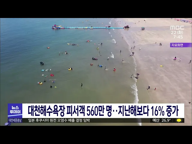 뉴스투데이 뉴스데스크뉴스투데이뉴스데스크 VOD(전체 다시보기)뉴스투데이 VOD(전체 다시보기)유튜브뉴스페이스북 뉴스카카오톡 뉴스인스타그램 뉴스 prev 2023.8.22 - 화요일 next 일본 오염수 방류 초읽기..지역 반응은?/투데이 ◀앵커▶ 일본의 후쿠시마 원전 오염수 해양 방류 결정이 임박하면서 우려의 목소리가 커지고 있습니다. 당장 수산물 식자재에 대한 걱정이 크지만 충남 서해안 어민들이 입을 피해에 대한 대비책도 서둘러... 고병권 '대통령 공약' 치의학연구원 유치 경쟁에 충남도 대응 윤석열 대통령이 천안 설립을 공약했던 국립치의학연구원을 놓고 대구와 광주 등 타 지역에서도 유치 경쟁에 뛰어들자 충남도가 대응에 나섰습니다. 도는 대통령 공약대로 공모 절차 없이 천안아산 연구개... 김광연 이장우 시장 "대전 서남부 스포츠타운 공정 차질" 오는 2027년, 충청권 하계세계대학 경기대회의 개막식이 열릴 대전 서남부 스포츠타운의 건립이 차질을 빚고 있습니다. 이장우 대전시장은 기자회견에서 서남부 스포츠타운 공정이 빡빡해 대회가 열리기 ... 이승섭 이용 저조에 대전·충남 공공 배달앱 지원 중단 저렴한 수수료를 앞세워 출시한 공공배달앱이 저조한 이용 실적으로 계약 해지 수순을 밟고 있습니다. 대전시는 코로나19 확산으로 배달 수요가 많았던 지난 2021년 5월부터 공공배달앱 '휘파람' 운영에 2... 문은선 '0시 축제' 애매한 콘텐츠는 과제/투데이 ◀앵커▶ 지난 11일부터 일주일간 개최된 0시 축제에 110만 명이 다녀간 것으로 집계됐습니다. 원도심 활성화에 대한 가능성을 보여줬다는 긍정적 평가도 있지만 교통 불편, 핵심 콘텐츠 부재 등은 개선해... 김지혜 대전 신협 강도 나흘째 추적..수사 난항 대전 신협 강도 사건을 수사하고 있는 경찰이 나흘째 추적을 이어가고 있지만 아직 용의자 신원조차 파악하지 못하면서 장기화될 가능성이 커지고 있습니다. 경찰은 차량과 달리 오토바이는 앞쪽 번호판이... 박선진 대전시교육청, `스승찾기 서비스` 잠정 중단 대전시교육청이 최근 고교 교사 피습 사건을 계기로 홈페이지에서 제공하던 '스승 찾기 서비스'를 중단했습니다. 시 교육청은 교사 이름을 입력하면 재직 중인 학교를 확인할 수 있는 '스승 찾기' 탭을 지... 고병권 음주운전 차량에 숨진 배승아양 유족, 재판부에 엄벌 대낮에 어린이보호구역에서 음주운전 차량에 치여 숨진 배승아 양 유족이 재판부에 음주 운전자 처벌을 강화해 달라고 호소했습니다. 대전지법 형사 12부 주재로 열린 관련 재판에서 배 씨의 오빠는 "사상... 고병권 대형화재 한타, 대전 대신 헝가리에 증설?/투데이 ◀앵커▶ 대형 화재로 제2공장이 불에 탄 한국타이어가 헝가리 공장 증설을 추진하는 것으로 확인됐습니다. 2백 명 이상의 노동자들이 명예퇴직이나 휴업 중인 상황에서 지역경제에 대한 기대와 우려가 엇... 조형찬 사랑의 집 고치기 44호점 착공식 열려 대한전문건설협회 세종시·충남도회가 대전MBC와 함께 하는 '사랑의 집 고치기' 제44호점 착공식이 금산군 군북면에서 열렸습니다. '사랑의 집 고치기”사업은 열악한 주거환경에 거주하는 불우한 이웃의 집... 최기웅 민주당 세종시의원 "최민호 시장 공약 예산 삭감해야" 더불어민주당 세종시의원들이 시의회에서 기자회견을 열고 최민호 세종시장이 자신의 공약 사업 예산을 삭감해야 한다고 주장했습니다. 의원들은 버스비 전면 무료화와 세종국제정원도시박람회 등 최 시장... 이승섭 을지훈련 시작..고구마·주먹밥 먹으며 훈련 참여 어제부터 나흘 동안 국가비상대비태세를 점검하는 을지훈련이 시작됐습니다. 대전 대덕구는 구내식당에서 국가비상사태에 식량이 부족한 상황을 가정해 주먹밥과 고구마로 끼니를 해결했고 대전 동구도 전... 이승섭 지역대 왜 이러나/투데이 ◀앵커▶ 지역 사립대에서 잇단 사건사고에 학교의 부실 대응까지 논란이 끊이질 않고 있습니다. 활동을 하지 않은 학생에게 학생회 임원 장학금을 지급하는가 하면 학내 성희롱 사건을 접수조차 하지 않은... 박선진 '꽃게 금어기 해제' 태안 가을 꽃게잡이 시작 태안의 대표 수산물이 꽃게 금어기가 해제돼 본격적인 수확에 들어갔습니다. 태안 안면읍 백사장항에서는 어제 새벽 꽃게잡이 어선이 바다로 출항해 6톤 가량을 수확했으며, 이는 지난해 가을 꽃게 금어기... 문은선 대천해수욕장 피서객 560만 명..작년보다 16% 증가 50여 일간의 올여름 보령 대천해수욕장 개장 기간 동안 관광객 560여 만 명이 다녀간 것으로 집계됐습니다. 이는 지난해보다 약 16% 증가한 것으로, 보령시는 이 기간 동안 하루 평균 120여 명의 안전 요... 문은선