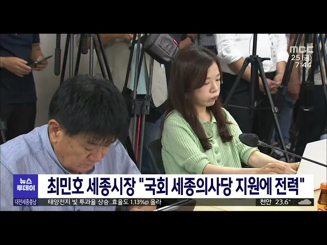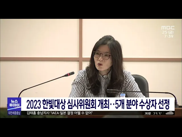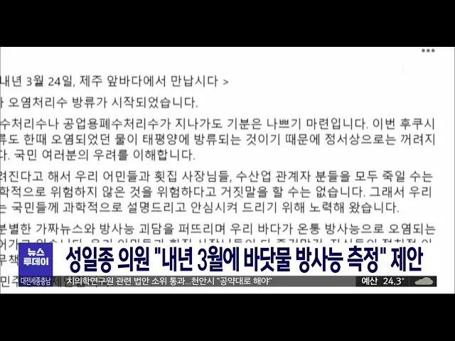 뉴스투데이 뉴스데스크뉴스투데이뉴스데스크 VOD(전체 다시보기)뉴스투데이 VOD(전체 다시보기)유튜브뉴스페이스북 뉴스카카오톡 뉴스인스타그램 뉴스 prev 2023.8.25 - 금요일 next 수산물 판매 '뚝' 횟집도 비상/투데이 ◀앵커▶ 일본 정부가 후쿠시마 오염수 방류를 시작하면서 서해를 끼고 있는 우리 지역 어민들은 물론 시민들의 우려가 커지고 있습니다. 시장에는 수산물을 찾는 소비자들의 발길이 뚝 끊기고 횟집 등에는... 뉴스팀 충남도 "해수·수산물 검사 강화"/투데이 ◀앵커▶ 충남은 보령과 태안 등 7개 시·군이 서해 바다에 맞닿아 있어 일본 후쿠시마 오염수 방류로 인한 상당한 피해가 예상되는데요. 충남도는 전담팀을 꾸려 바닷물과 수산물 검사를 강화하고 피해 어... 김태욱 성일종 의원 "내년 3월에 바닷물 방사능 측정" 제안 국민의힘 성일종 의원이 일본 후쿠시마 오염수 방류와 관련해 7개월 뒤인 내년 3월 24일, 제주 앞바다에서 방사능 수치를 검사해 보자고 더불어민주당에 제안했습니다. 성일종 의원은 자신의 SNS에 후쿠시... 이승섭 조승래 "R&D 예산 삭감에 슈퍼컴퓨터 셧다운 사태" 정부가 연구개발 혁신을 강조하며 내년도 전체 RD 예산은 13.9%, 출연연 예산도 11%가량 삭감하기로 하면서 국가 슈퍼컴퓨터의 가동 중단 사태가 우려된다는 지적이 제기됐습니다. 국회 과기정통위 더불어... 김윤미 `누리호 손님`이 해냈다…국내 큐브위성, 첫 영상 촬 지난 5월 누리호에 실려 우주에 안착한 국내 큐브위성이 한반도 지표면 영상을 선명하게 촬영하는 데 성공했습니다. 국내에서 개발한 큐브위성이 지구를 촬영해 보내온 것은 이번이 처음으로, 카이로스페... 문은선 세종 M버스 연기되지만 차질은 없다?/투데이 ◀앵커▶ 세종시와 대전시를 연결하는 광역급행버스, M버스 사업이 차질을 빚어 연기된다는 소식 보도해 드렸는데요, 세종시는 운수업체가 적자를 우려해 버스 운행이 연기됐다면서도 계획대로 차질 없이 ... 김지혜 2023 한빛대상 심사위원회 개최 한화그룹과 대전MBC가 공동으로 주관하는 올해 한빛대상 수상자 선정을 위한 심사위원회가 대전MBC에서 열렸습니다. 올해 한빛대상은 과학기술과 지역경제발전, 사회봉사, 문화예술, 교육체육진흥 등 5개 ... 문은선 김형렬 행복청장 취임.."실질적 행정 수도 완성 노력" 김형렬 신임 행정중심복합도시건설청장이 취임했습니다. 김형렬 청장은 취임식에서 대통령 제2집무실과 국회 세종의사당 건립 등을 차질 없이 추진해 행복도시가 실질적 행정수도이자 미래 선도 도시가 될... 이승섭 대전에 한복체험마을 개촌...쌍청당에 자리잡아 대전 쌍청 한복체험마을이 개촌식을 갖고 본격 운영에 나섰습니다. 쌍청 한복체험마을은 우암 송시열 선생의 8대 조부인 송유 선생의 학덕을 기리는 쌍청당에 조성됐으며 한복 3백벌이 전시되고 있습니다.... 최기웅 "빛 반사 막아라" 태양전지 효율 높인다/투데이 ◀앵커▶ 태양의 빛 에너지로 전기를 생산하는 태양전지는 반사되는 빛을 최대한 줄여야 효율이 높아지게 되는데요. 빛을 반사하지 않고 잘 투과시켜 전지 효율을 끌어올릴 수 있는 코팅 소재가 국내에서 ... 김윤미 특별재난지역 세종시, 하천 점·사용료 감면 지난 집중호우로 특별재난지역으로 선포된 세종시가 올해 하천 점용료와 사용료를 감면합니다. 대상은 침수피해를 입은 경작 목적의 하천으로, 점용료와 사용료를 전액 감면하고 경작 외 하천 부지는 지난... 조형찬 최민호 세종시장 "국회 세종의사당 지원 다 할 것" 최민호 세종시장이 국회 세종의사당 건립을 위한 규칙안이 국회 운영개선소위원회를 통과한 것과 관련해 차질 없는 추진을 위해 노력하겠다고 밝혔습니다. 최 시장은 기자회견을 갖고 올해 확보한 세종의... 이승섭 세종 역내 소비 15% 증가..한식, 의원, 편의점 순 세종시가 올해 2분기 신용카드와 여민전 등의 매출 데이터를 분석한 결과 역내 소비가 지난해 같은 기간보다 15% 증가한 것으로 나타났습니다. 2분기 총 카드 매출액은 1조 4,451억 원으로 지난해보다 15%... 조형찬