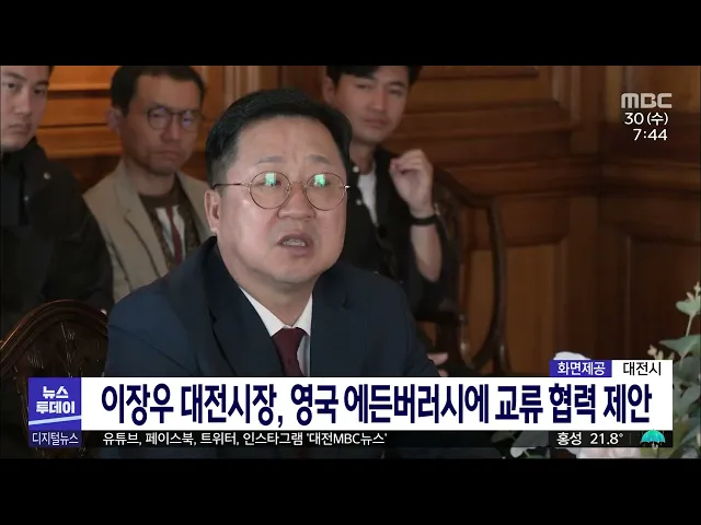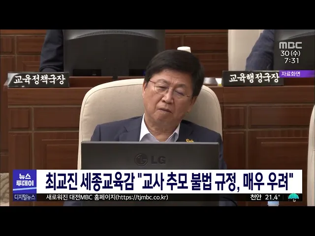 뉴스투데이 뉴스데스크뉴스투데이뉴스데스크 VOD(전체 다시보기)뉴스투데이 VOD(전체 다시보기)유튜브뉴스페이스북 뉴스카카오톡 뉴스인스타그램 뉴스 prev 2023.8.30 - 수요일 next 홍범도 장군 흉상 이전 논란에 시민들 '분노'/투데이 ◀앵커▶ 최근 정부가 육군사관학교와 국방부에 설치된 홍범도 장군 흉상을 이전하겠다는 계획을 밝혀 연일 논란이 일고 있는데요. 홍범도 장군이 안장된 대전현충원에는 흉상 이전을 반대하는 시민과 단체... 뉴스팀 오늘 국회 운영위 전체 회의..세종의사당 규칙안 심의 국회가 오늘, 운영위원회 전체 회의를 열어 국회 세종의사당 설치와 운영에 관한 규칙안을 심의합니다. 지난 23일 열렸던 소위원회에서 여야는 김진표 국회의장이 제시한 규칙안을 일부 수정해 처리했으며... 이승섭 최교진 세종교육감 "교육부의 불법 규정 매우 우려" 교육부가 다음 달 4일 일선 교사들이 재량 휴업과 연가 사용 등을 통해 집단행동에 나서는 것을 불법으로 규정한 것과 관련해 최교진 세종시 교육감이 우려를 표했습니다. 최 교육감은 기자간담회에서 "교... 박선진 두 배 커진 충남병원선 취항..32개 섬 주민 건강 책임 '섬마을 건강 지킴이'로 불리는 충남병원선이 기존보다 두 배 커진 320톤 규모에 최첨단 의료 장비를 갖추고 본격 임무를 시작했습니다. 지난 22년 동안 충남 도서지역 주민 건강을 책임진 충남501호를 대... 김광연 적자 기관이 시 축제 홍보?/투데이 ◀앵커▶ 대전 도시공사는 자본금보다 부채가 20% 더 많은 적자 기관입니다. 그런데, 도시공사가 공사 성격과 무관한 대전시 0시 축제에 사전 계획에도 없었던 예산 9천만 원을 쓴 사실이 드러났습니다. 도... 고병권 4개 출연연, 이차전지 초격차 기술 확보 위해 맞손 화학연구원과 에너지기술연구원 등 정부출연 연구기관 4곳이 기술 선점을 위한 각국의 경쟁이 치열해지고 있는 이차전지 초격차 기술 확보를 위해 손을 잡았습니다. 이들 4개 연구기관은 업무협약을 통해 ... 김윤미 중앙과학관, '필즈상' 허준이 교수 연구노트 등 공개 지난해 한국계 수학자 가운데 최초로 수학계의 노벨상으로 불리는 '필즈상'을 수상한 허준이 교수의 연구 노트 등 전시품이 수상 1주년을 기념해 국립중앙과학관에서 선보입니다. 해당 전시는 무료로 관람... 김윤미 세종시 보통교부세 정상 산정 촉구 고충민원 세종시가 보통교부세 1조 원 이상을 받지 못 해 재정 위기가 초래됐다는 주장이 제기됐습니다. 전직 충남 연기군, 세종시의원들의 모임인 세종시 의정회는 광역과 기초 사무를 동시 수행하는 세종시가 기... 조형찬 내년도 정부 예산안 발표..지역 확보 예산은?/투데이 ◀앵커▶ 내년도 정부 예산안이 다음(9) 달 국회에 제출될 예정인 가운데, 대전과 세종, 충남은 사업비로 13조 원 규모 국비가 반영됐습니다. 국회 세종의사당 부지 매입비와 서산공항 기본설계비 등이 포... 김광연 대전 국제와인엑스포 시음존 입장권 6천500장 예매 다음 주 대전컨벤션센터에서 열리는 대전 국제와인엑스포의 시음존 입장권이 지난해의 5배에 달하는 6천 5백장이 예매되는 등 행사가 순조롭게 추진되고 있습니다. 대전 국제와인엑스포는 다음 달 3~10일... 조형찬 대전시, '원도심 보물찾기' 확대 운영 검토 대전시는 최근 열린 '대전 0시 축제'와 연계해 진행됐던 '원도심 보물찾기' 프로그램을 확대해 운영하는 방안을 검토하고 있습니다. 시는 원도심의 숨은 가치를 찾고, 경제 활성화를 돕기 위해 지역 예술... 이승섭 천안시, 9월부터 산후조리 비용 지원 범위 확대 천안시가 다음 달부터 저소득층에게 3백만 원을 현금으로 또 50만 원을 지역화폐로 지급하는 등 산후조리 비용 지원 범위를 확대합니다. 또 기존에는 출산일 기준 1년 전부터 주민등록상 천안에 거주한 산... 김광연 '수술실 CCTV' 다음 달 시행인데../투데이 ◀앵커▶ 다음 달부터 이른바 '수술실 CCTV 의무화법'이 시행됩니다. 전신마취 등 환자가 의식이 없는 상태에서 수술할 경우 환자나 환자 보호자가 요청하면 수술 장면을 모두 녹화해야 하는 건데요, 2년 ... 박선진 이장우 대전시장, 영국 에든버러 시와 교류 협력 제안 유럽 출장에 나선 이장우 대전시장이 영국 에든버러 시청을 찾아 문화와 과학 분야의 교류 협력을 제안했습니다. 이장우 시장은 현지 시각으로 그제, 로버트 앨드리지 에든버러 시장을 만나 에든버러 축제... 이승섭