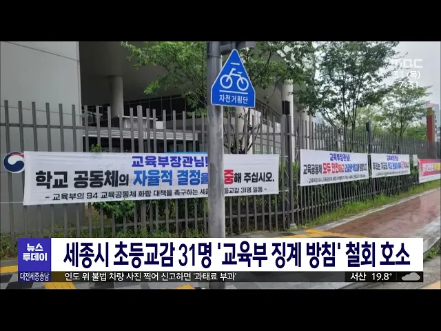 뉴스투데이 뉴스데스크뉴스투데이뉴스데스크 VOD(전체 다시보기)뉴스투데이 VOD(전체 다시보기)유튜브뉴스페이스북 뉴스카카오톡 뉴스인스타그램 뉴스 prev 2023.8.31 - 목요일 next 3년새 3명 사상.."시가 맡아달라"/투데이 ◀앵커▶ 차가 쌩쌩 달리는 큰 도로에서 진행되는 위험한 청소 작업, 가끔 보셨을텐데요. 이런 청소를 하다가 다치거나 사망하는 사고가 계속해서 발생하고 있습니다. 대전 각 자치구 환경노조는 이처럼 위... 조형찬 '12개 상임위 세종의사당 이전' 규칙안 운영위 통과 12개 국회 상임위원회를 세종의사당으로 이전하는 국회 규칙안이 어제 운영위원회에서 여야 합의로 처리됐습니다. 세종의사당으로 옮겨올 12개 상임위는 예결위와 정무위, 기획재정위, 행정안전위, 교육위... 김윤미 세종시 초등교감 31명 '교육부 징계 방침' 철회 호소 세종시의 초등 교감들이 서울 서이초 교사 49재 관련한 추모 집회 참석 논란과 관련해 교육부를 향해 "재량 수업 학교와 교사에 대한 징계 방침을 철회해 달라"는 호소문을 발표했습니다. 세종시 초등교감... 고병권 교육차관, 고등어구이 나온 급식 먹고 "학교급식 안심 후쿠시마 원전 오염수 방류 이후 학교 급식 원산지에 대한 관심이 커진 가운데, 장상윤 교육부 차관 등 교육부 관계자들은 어제 부여 백제 초등학교를 찾아 급식 제공 실태를 점검했습니다. 장 차관은 최... 고병권 대전 다시 청약 열기...불확실성은 여전/투데이 ◀앵커▶ 이른바 '바닥을 찍었다'라는 분석이 나올 정도로 최근 부동산 시장이 회복 조짐을 보이면서 지역 아파트 청약도 높은 경쟁률을 기록하고 있습니다. 주택 거래량도 연초대비 2배 늘면서 기대감은 ... 김지혜 박경귀 아산시장 상고..박상돈 천안시장 2심 기일 지난해 지방선거에서 공직선거법을 위반한 혐의로 기소돼 항소심에서도 당선무효형을 선고받은 박경귀 시장이 상고장을 제출했습니다. 박 시장은 지난 지방선거 당시 보도자료를 통해 상대 후보였던 오세... 김광연 대전 고교 교사 살인미수 20대 구속 기소 대전지검은 대전의 한 고등학교에서 40대 교사에게 흉기를 휘둘러 살해하려한 27살 남성을 기소하고, 재범 방지를 위한 전자발찌 부착 명령도 재판부에 청구했습니다. 검찰에 따르면, 해당 피고인은 범행 ... 고병권 전국 공사현장 돌며 1억여 원 공구 훔친 40대 구속 대전동부경찰서는 지난해 5월부터 지난달까지 대전을 비롯해 경기와 대구 등 전국의 신축 아파트 공사현장을 돌아다니며 1억여 원 상당의 공구를 훔쳐 판매한 혐의로 40대 남성을 구속 송치했습니다. 경찰... 뉴스팀 전통시장도 새벽 배송/투데이 ◀앵커▶ 코로나19 이후로 식품업계를 중심으로 번지기 시작해 이제는 거대 시장으로 자리잡은 새벽배송은 하나의 소비패턴으로 자리잡았죠. 그런데 대전의 한 전통시장이 판로를 넓히기 위해 대형 물류 업... 이승섭 19년 만에 KTX 이용객 10억명 돌파…국민 한명당 20번 KTX의 이용객이 개통 이후 19년 5개월 만에 10억명을 돌파했습니다. 한국철도공사에 따르면 지난 2004년 4월 1일 첫 운행을 시작한 KTX는 오는 31일 누적 이용객 10억 명을 넘어설 전망으로 이는 국민이 ... 최기웅 충남도 합동 임대청사 건립..공공기관 유치 준비 박차 충남도는 한국자산관리공사와 업무협약을 맺고 합동 임대 청사 건립 등 성공적인 공공기관 유치를 위해 협력하기로 했습니다. 도는 내년 총선 이후 발표될 것으로 예상되는 2차 공공기관 이전 계획에 대비... 김광연 세종시 여민전 한도 상향...다음 달 백만 원까지 세종시가 현재 1인당 40만 원인 지역화폐 여민전의 한도를 추석 연휴가 있는 9월에는 백만 원까지, 10월부터는 50만 원까지 상향합니다. 소비자가 받을 수 있는 캐시백 혜택도 월 최대 2만 8천 원에서 3만... 김지혜 과태료 대상이지만..여전한 '인도 위' 주차/투데이 ◀앵커▶ 걷다 보면 인도 위에 불법 주정차한 차량 때문에 차도로 내려와 아슬아슬하게 지나간 경험, 다들 있으실 텐데요. 이제 이런 인도 위 불법 주정차 차량 과태료 폭탄이 부과될 수 있습니다. 보행권... 박선진 아산시, 무량판 민간아파트 9곳 점검 "특이사항 없어" 아산시는 관내 무량판 구조 시공이 적용된 민간아파트에 대해 검사를 진행한 결과 균열 등 특이사항이 발견되지 않았다고 밝혔습니다. 시는 탕정면 7곳과 모종동, 배방읍 각각 1곳 등 무량판 구조 민간 아... 김광연