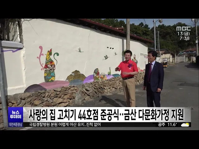 뉴스투데이 뉴스데스크뉴스투데이뉴스데스크 VOD(전체 다시보기)뉴스투데이 VOD(전체 다시보기)유튜브뉴스페이스북 뉴스카카오톡 뉴스인스타그램 뉴스 prev 2023.10.13 - 금요일 next 금값 배추·소금에 김장 포기까지/투데이 ◀ 앵 커 ▶요즘 삼겹살로 깻잎을 싸 먹어야 한다는 우스갯소리가 나올 정도로 채소 물가가 심상치 않습니다.폭염에 폭우와 태풍 등으로 작황이 좋지 않기 때문인데요,일본 후쿠시마 오염수 방류로소금가격... 김지혜 과기정통부 "4대 과기원 학생연구원 등 축소 없어" 카이스트를 비롯해 과학기술원을 포함한 정부의 연구개발 예산 삭감으로 학생연구원 등의 인건비 감축 우려가 커진 가운데 정부가 지원 축소는 없다며 진화에 나섰습니다.과학기술정보통신부는 "4대 과기... 김윤미 대전현충원서 5년간 폐조화 처리 예산 1억 4천여 만 원 소요 대전현충원에서 발생한 폐조화를처리하느라 지난 5년간 1억 원이 넘는예산을 쓴 것으로 나타났습니다.더불어민주당 황운하 의원이국가보훈부에서 받은 자료를 보면대전현충원에서 폐기한 추모용 플라스틱... 문은선 "2명 이상 사망 산재 업체, 5년간 1조 원대 국가계약" 최근 5년간 2명 이상 사망사고를 낸 업체의 국가계약 규모가 1조 원대에 달하는 것으로 나타났습니다.정의당 장혜영 의원이 조달청에서 받은자료에 따르면 최근 5년 동안 2명 이상산재 사망사고를 일으킨 ... 문은선 통계 조작 의혹 공방/투데이 ◀ 앵 커 ▶오늘(투:어제), 정부대전청사에서 열린 국회 기획재정위원회의 국정감사는통계청의 통계 조작 의혹이 최대 화두였습니다.여당 의원들은 통계청이 국가 통계를 생산할자격이 없다고 비판했고,야당... 이승섭 사랑의 집 고치기 44호점 준공식...다문화가정 지원 대한전문건설협회 세종시·충청남도회와 대전MBC가 함께 하는 '사랑의 집 고치기' 제44호점 준공식이 금산군 군북면 장유미씨 자택에서 열렸습니다. 협회 지원금과 해당 지역 회원사들의 무료봉사, 그리고 ... 최기웅 충남 초·중학교 2026년까지 학급당 학생 수 28명으로 감축 충남교육청이 오는 2026년까지단계적으로 초·중학교 학급당 학생 수를28명으로 줄입니다.이를 위해 2026년까지 19개 학교를 신설하고 6개 학교에 33개 교실을 확충하는 예산을내년에 추가 반영할 계획입니... 문은선 비수도권 개발부담금 완화..경기 활성화책 시행 서울, 경기, 인천 등 수도권을 제외한 비수도권에서 지역경기 활성화를 위해 소규모 개발사업 때 부과하는 개발부담금대상 면적이 한시적으로 완화됩니다.내년 12월 31일까지 건축허가 등을 받은 개발사업... 조형찬 경찰병원 유치는 했지만..축소 우려/투데이 ◀ 앵 커 ▶대통령 공약이었던 경찰병원 분원을공모까지 거쳐 어렵게 아산으로유치하기는 했는데 1년이 다 되도록진전이 없습니다.이런 와중에 병상 규모가 줄거나완공이 늦춰질 수 있다는 우려가 나오면서... 김광연 "공터·정류장 주소로 신고" 경찰·소방 출동시스템 탑재 앞으로는 건물이 없는 도로나 공터, 버스정류장에 쓰인 주소로 신고하면 경찰과 소방에서 신속한 위치 파악과 출동이 가능해질 전망입니다.행정안전부는 도로나 공터 등 건물이 없는 곳의 위치를 표시하는... 김윤미 대전시장배 이스포츠 한밭대전 한 달 간 열려 대전시장배 이스포츠 한밭대전이 오는 28일부터 다음 달 26일까지 한 달간 엑스포 첨단과학관 일대에서 열립니다. 대회 종목은 리그오브레전드와 발로란트 등 총 4개 종목으로, 프로와 아마추어, 시민 등 ... 조형찬 보령해경, 연안안전사고 위험예보 '주의보' 발령 보령해경은 오는 주말과 대조기 기간이 맞물림에 따라 오늘부터 엿새간 연안 안전사고 위험예보 ‘주의보’를 발령했습니다.‘주의보’ 단계는 연안 해역에 안전사고 발생 우려가 높거나 피해 확산이 우려되는... 박선진 억새도 보고 새우젓도 즐기고/투데이 ◀ 앵 커 ▶아침저녁으로 부는 바람에제법 가을색이 짙어졌는데요, 홍성 오서산은 은빛 억새가 꽃망울을터뜨리기 시작했고 김장철을 맞아 광천 토굴새우젓도 제철을 만났습니다.김태욱 기자입니다.◀ 리포트 ... 김태욱 세종시의회 임시회 개회..세종의사당 조속 건립 세종시의회가 제85회 임시회를 열고16일 간의 의정 ?동에 돌입했습니다.어제 열린 1차 본회의에서 의원들은 국회 세종의사당이 차질없이 건립되도록 정부의 강력한 의지와 여야의 초당적 협력을 요구하는... 이승섭