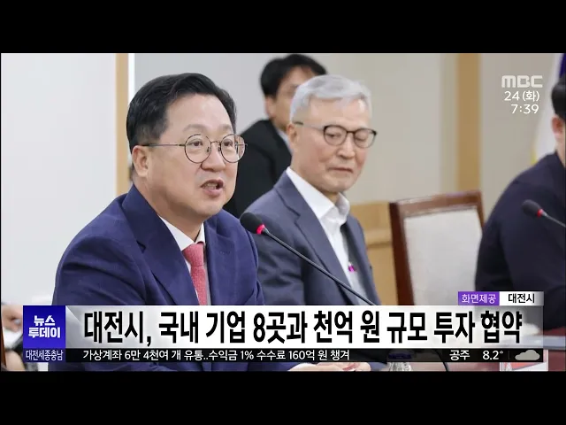 뉴스투데이 뉴스데스크뉴스투데이뉴스데스크 VOD(전체 다시보기)뉴스투데이 VOD(전체 다시보기)유튜브뉴스페이스북 뉴스카카오톡 뉴스인스타그램 뉴스 prev 2023.10.24 - 화요일 next 럼피스킨병 확산..섬세한 대응 필요/투데이 ◀ 앵 커 ▶지난주 서산에서 처음 발병한소 바이러스성 피부병 럼피스킨병확산세가 심상치 않습니다.충남 도내에서만 3개 시군, 9개 농가로 늘었는데 백신은 부족하고보상금을 지급해야 하는 지자체 부담이 ... 김광연 충남경찰청 국감서 젊은 세대 범죄 예방 주문 충남경찰청 국정감사에서는 논산 청소년 성폭력 사건과 MZ 조폭 등젊은 세대에서 발생하는 강력범죄 예방에 대한 주문이 이어졌습니다.의원들은 최근 논산 성폭력 사건 등을 언급하며 청소년 강력범죄가 ... 김광연 대전 탑립·전민지구 국가산업단지 행정 절차 착수 대전시가 탑립·전민지구 국가산업단지조성을 위한 행정 절차에 착수했습니다. 시는 개발제한구역 해제를 위해 국토교통부와 사전 협의를 마쳤으며 올 연말까지 개발제한구역 해제를 마무리할 계획입니다.... 이승섭 지방시대 엑스포, 다음 달 1~3일 대전서 열려 전국 지자체들의 우수 정책과 사례를 한 자리에서 볼 수 있는 2023 대한민국 지방시대 엑스포가 대덕특구 50주년을 기념해 다음 달(11) 1일부터 3일까지 대전 컨벤션센터 일대에서 열립니다. 이번 엑스포... 조형찬 육군 국감서도 '홍범도 장군 흉상 철거'/투데이 ◀ 앵 커 ▶육군사관학교가 홍범도 장군을 비롯해교내에 있는 독립운동가 6명의 흉상 이전을추진해 논란이 일고 있죠. 특히 홍범도 장군 흉상은 육사 외부로 이전하겠다고 밝혀 '역사 지우기'라는 지적이 제... 박선진 10.29이태원 참사 대전대책회의, '희생자 추모주간' 선포 서울 이태원에서 발생한 10.29 참사 1주기를 맞아 대전 대책회의는 시청 앞에서 기자회견을 열고 이번 주를 희생자 추모주간으로 선포했습니다.이들은 피해자 모교에 1주기 분향소를 운영하고 추모제를 열... 고병권 최교진 세종교육감, 교육부 대입 개편안 비판 교육부의 2028 대입제도 개편안에 대해최교진 세종시교육감이 교육과정과고교학점제 취지와 어울리지 않는 대입 개편안이라며 비판하고 나섰습니다.최 교육감은 입장문에서정부가 만든 교육과정과 대입제... 문은선 세종시 공동캠퍼스 공사 중단..개교 일정 차질 세종시 집현동에서 추진되는대학 공동캠퍼스 조성 공사가 중단돼내년 3월로 예정된 개교 일정에 차질이예상됩니다.행정중심복합도시건설청은 시공사가 원자재값과 인건비 상승을 이유로지난 17일부터 세종... 이승섭 "우주청, 국회 논의 더이상 없다"/투데이 ◀ 앵 커 ▶윤석열 정부가 야심차게 추진 중인 우주항공청이 삐걱거리고 있습니다. 여야가 안건조정위에서 도출한 합의가 무산되자 야당 측이 이번 국회에서 더 이상 논의는 없다고 선언했는데요.우주항공청... 조형찬 부여 은산·복덕지구, 재해위험개선지구 선정 침수 피해가 반복됐던 부여 은산·복덕지구가 재해위험개선지구로 선정됐습니다.은산천과 복덕천 일대는 집중호우로 상가와 농경지, 주택 등이물에 잠기는 등 반복적인 피해가 발생해 왔던 곳입니다.부여군... 문은선 대전시, 국내 기업 8곳과 천억 원 규모 투자 협약 대전시가 국내 기업 8곳과천억 원 규모 투자 협약을 체결했습니다.이들은 바이오와 항공, 배터리 분야 기업으로대전 서구 평촌산업단지와 유성구 둔곡산업단지 등으로 기업을 이전하거나 설비를 늘리는 등... 이승섭 오는 29일 '부분 월식'..천문연 "맨눈으로 관측 가능" 달의 일부가 지구 그림자에 가려지는 부분 월식을 오는 29일 볼 수 있을 전망입니다.한국천문연구원은 29일 새벽 4시 34분 지구 그림자가 달을 가리는 부분식이 시작돼 5시 14분 6초에 최대를 이루겠고, ... 김윤미 범죄 조직에 가상계좌 유통…160억 원 챙긴 일당 검거/투데이 ◀ 앵 커 ▶가상계좌 수만 개를 만들어전화금융사기나 인터넷 도박 등범죄 조직에 제공하고160억 원을 챙긴 일당이 검거됐습니다.통장 발급 절차가 강화되면서대포통장 사용이 여의치 않자가상계좌를 새로운... 뉴스팀 대전시, 반려동물 놀이터 설치·운영 MOU 대전시가 우송정보대학, CNCITY 에너지 등과업무 협약을 맺고, 반려동물 놀이터 설치와운영에 협력하기로 했습니다.이들 기관은 우송정보대학 반려동물학부 훈련장 등의 부지에 반려동물 놀이터를 설치하... 이승섭 아산시, 외암마을 짚풀문화제 세계문화유산 등재 추진 아산시가 외암민속마을 짚풀문화제의유네스코 문화유산 등재를 추진합니다.짚풀문화제는 노동요 공연과전통 상여 행렬 재현을 비롯해 전통 벼베기 체험, 짚풀 놀이터,짚신 짜기 시연 등으로 구성됐습니다.... 문은선 '구급차 로고젝터 설치, 아이디어 경진대회 전국 1위 조치원소방서 119 구급대 소속 조승환 소방교가 제안한 '구급차량 교차로 교통사고 예방' 아이디어가소방청 주관 연구개발 사업 아이디어 경진대회에서 전국 1위를 차지했습니다. 조 소방교는 구급차가 긴... 김지혜 당진 해나루쌀, 2023 대한민국 쌀 페스타 브랜드 당진 해나루쌀이 최근 서울에서 열린대한민국 쌀 페스타에서 브랜드 대상인대