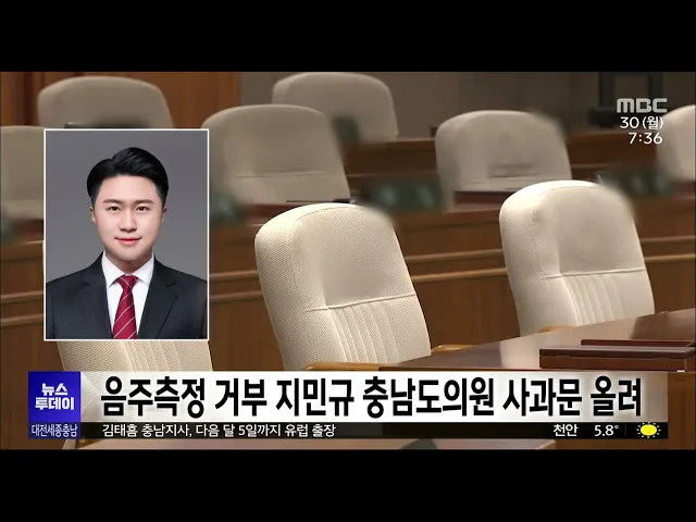 뉴스투데이 뉴스데스크뉴스투데이뉴스데스크 VOD(전체 다시보기)뉴스투데이 VOD(전체 다시보기)유튜브뉴스페이스북 뉴스카카오톡 뉴스인스타그램 뉴스 prev 2023.10.30 - 월요일 next 작업까지 자율로..미래 농업 경쟁력 확보한다/투데이 ◀ 앵 커 ▶자율주행 기술이 도로 위 자동차에서농기계까지 적용을 확대하고 있습니다.농촌의 고령화로 인한 노동력 감소 문제를 해결할 대안이 될 수 있을지 주목됩니다.김광연 기자가 보도합니다.◀ 리포트... 문은선 충남 럼피스킨 긴급백신 접종율 20%.. 꾸준한 확산 소 럼피스킨병 확산세가 전국적으로이어지고 있는 가운데,충남도가 긴급 백신 접종에 나섰지만완료율은 20%에 그치고 있습니다.충남도는도내 긴급 백신 대상 소는 52만 3천 두로,이 중 10만 8천 두를 대상... 김태욱 음주측정 거부 물의 지민규 충남도의원 SNS에 사과 지난 24일 새벽 천안시내 한 도로에서 보호난간을 들이받은 뒤 음주측정을 거부해 물의를 빚은 지민규 충남도의원이 개인 SNS에 사과문을 내고 음주운전 사실을 시인했습니다.지 의원은 사고 이후 변명은 ... 김태욱 김태흠 지사, 다음 달 5일까지 독일·폴란드 출장 김태흠 충남지사가 투자협약과설명회 개최 등을 위해 어제부터다음 달 5일까지 6박 8일 일정으로독일·폴란드 출장길에 오릅니다.충남도는 먼저 독일 바이에른주를 방문해교류 활성화 방안을 논의하고,독일... 김태욱 이완섭 서산시장, 국토부장관에 서산공항 등 현안 협조 요청 이완섭 서산시장이 성일종 의원의 서산 사무실에서 원희룡 국토부장관을 만나 예타 문턱에 막힌 서산공항과 중부권 동서횡단철도 등 현안 사업협조를 요청했습니다.서산시는 이 시장이 대산항과 석유화학... 김태욱 검찰, '文정부 통계 조작 의혹' 강신욱 전 통계청장 소환 조사 문재인 정부의 통계 조작 의혹을 수사 중인 검찰이 강신욱 전 통계청장을 소환해 조사하는 등 수사에 속도를 내고 있습니다.대전지검은 지난 27일 강 전 청장을 피의자 신분으로 불러 조사를 벌였으며지난... 김윤미 비노조원 폭행 등 한국타이어 민주노총 조합원 2명 징역형 비노조원을 폭행하고 화물차량 운송을 방해한 혐의로 기소된 한국타이어 민주노총 소속 조합원 2명에게 징역형이 선고됐습니다.대전지법 형사4단독 황재호 판사는 업무방해 등의 혐의로 재판에 넘겨진민주... 김윤미 세종 스마트 국가산단 최종 승인.. 2029년 완공 세종시 연서면 일대에 추진 중인스마트 국가산업단지 조성사업이 지난 2018년 후보지 선정 이후 5년 만에국토교통부로부터 최종 승인을 받았습니다.세종 스마트 국가산업단지 조성 사업은연서면 일원 275... 김태욱 세종시의회 '지방법원·행정법원 설치 촉구 결의안' 채택 세종시의회가 인구 증가와 행정기관 이전 등에 따른 사법 수요 증가에 부응할 법원 설치를강력히 촉구하고 나섰습니다.세종시의회는 최근 임시회 본회의에서시민 사법 접근성 제고와 효율적인 행정소송 대... 김윤미