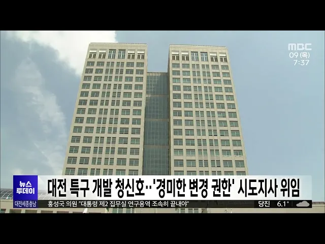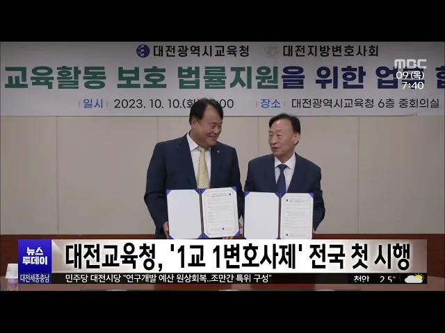 뉴스투데이 뉴스데스크뉴스투데이뉴스데스크 VOD(전체 다시보기)뉴스투데이 VOD(전체 다시보기)유튜브뉴스페이스북 뉴스카카오톡 뉴스인스타그램 뉴스 prev 2023.11.9 - 목요일 next 총선 여야 '내부 경쟁구도' 시동/투데이 ◀ 리포트 ▶22대 총선을 5개월 앞두고 각 당 예비주자들이 앞다퉈 출마를 공식화하면서 경쟁구도가 속속 그려지고 있습니다.윤창현 국민의힘 의원과 박정현 더불어민주당 최고위원은 대전 출마를 분명히 했... 김지혜 홍성국 의원 "대통령 제2 집무실 연구용역 조속히 끝내야" 대통령 제2 집무실이 예정대로 오는 2027년 상반기 완공되기 위해서는입지와 규모 등을 결정하는 건립 연구용역을조속히 끝내야 한다는 주장이 제기됐습니다. 더불어민주당 홍성국 의원은 최근 국회 운영... 조형찬 민주당 대전시당 "삭감된 연구개발 예산 원상회복해야" 더불어민주당 대전시당이 5조 원 넘게 삭감된 정부의 연구개발, RD 예산의 원상회복을 촉구하며시당 차원의 특별위원회 구성을 예고했습니다.특위를 준비 중인 정기현 전 대전시의원 등은성명을 내고, "대... 김윤미 대전 특구개발 청신호..'경미한 변경 권한' 지자체로 이관 연구개발특구 개발사업의 '경미한 변경 권한'이 시도지사로 위임돼대전시의 특구 개발에 청신호가 켜졌습니다.대전시는 사업 면적 10%나 3만㎡ 미만의 경미한 변경 권한과 관련해그동안 과기정통부 장관의... 조형찬 아시아 최대 데이터센터 세종에/투데이 ◀ 앵 커 ▶아시아 최대 규모를 자랑하는네이버 데이터센터가 세종에 문을 열었습니다.세종시는 네이버와 함께 산학연 협력과시민을 위한 IT 교육도 강화하기로 했습니다.이승섭 기자입니다.◀ 리포트 ▶세종... 최기웅 대전시교육청, '1교 1변호사제' 전국 첫 시행 대전시교육청이 교육활동보호 법률지원을 위한 1교 1변호사, 이른바 '우리학교 변호사' 제도를 전국 최초로 시행합니다.시 교육청은 대전변호사회와 업무협약을 맺고 변호사 65명을 학교 변호사로 위촉했... 최기웅 충남대 20대 총장 임용 후보자 4명 등록 오는 23일 실시되는 충남대학교 제20대 총장 임용 후보자 선거가 4파전으로 치러질 전망입니다.대전 유성구선거관리위원회 등에 따르면,기호순으로 김정겸 사범대학 교육학과, 임현섭 농업생명과학대학 응... 최기웅 'ADD 창립 직원' 80대 강춘강 여사 100만 달러 국방과학연구소 창립 당시 직원이었던올해 여든 살의 강춘강 여사가 100만 달러, 우리 돈 13억 원 상당의 유산을 연구소에 기부하기로 했습니다.연구소 측은 지난 8월, 미국에 거주 중인 강 여사로부터 기... 김윤미 홍성역 임시주차장 차량 파손 50대 용의자 검거 지난 7일 홍성역 임시주차장에 주차된 차량 20대의 유리를 깨고 금품을 훔쳐 달아난 혐의로 50대 남성 용의자가 경찰에 붙잡혔습니다.홍성경찰서는 조사 결과, 피의자는 일정한 직업이 없는 사람으로 차량... 김태욱 충남 시민단체 "전농 압수수색은 정권 위기 탈출용 공안 탄압" 국가정보원과 경찰이 국가보안법 위반 혐의로 전국농민회총연맹 충남도연맹 사무실 등을 압수수색한 것을 놓고 충남 시민사회단체들이공안 탄압이라며 즉각 중단을 촉구했습니다.11개 시민사회단체와 정당... 김윤미