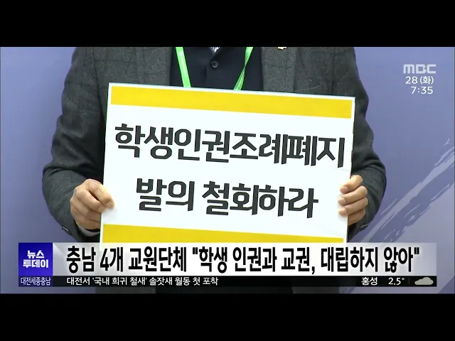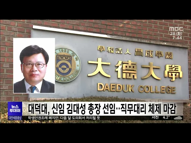 뉴스투데이 뉴스데스크뉴스투데이뉴스데스크 VOD(전체 다시보기)뉴스투데이 VOD(전체 다시보기)유튜브뉴스페이스북 뉴스카카오톡 뉴스인스타그램 뉴스 prev 2023.11.28 - 화요일 next 전 구청장 모두 총선 도전/투데이 ◀ 앵 커 ▶대전의 전직 구청장 4명이 이례적으로 내년 총선에 도전장을 냈습니다. 풍부한 풀뿌리 행정경험을 바탕으로 중앙 정치에 역할을 하겠다는 건데, 기대만큼 우려도 나오고 있습니다. 조형찬 기자가... 문은선 "혁신·도전적 연구는 예타 면제" 정부 R&D 혁신방안 발표 정부가 내년도 연구개발 예산을 5조 원 넘게 대폭 삭감한 배경으로 든 RD 혁신방안의 밑그림이 나왔습니다.이종호 과기정통부 장관은 어제열린 국가과학기술자문회의에서 확정한 정부의 RD 혁신 방안을 발... 김윤미 충남 4개 교원단체 "학생 인권과 교권, 대립하지 않아" 충남도의회에서 충남학생인권조례 폐지가추진되고 있는 가운데, 지역 4개 교원단체는 도청에서 기자회견을 열고 폐지 추진 중단과 교권 보호 조례 강화를 촉구했습니다.이들은 "학생인권조례가 폐지된다고... 김광연 이장우 "전세사기 소극 대처에 책임 물을 것".."이 시장 면담 응하라" 이장우 대전시장이 최근 지역에서 전세사기가 끊임없이 발생하는 것과 관련해공무원들의 소극적 대처에 엄중한 책임을묻겠다고 밝혔습니다.이 시장은 주간업무 회의에서 전세사기 피해와 관련해 대전시 대... 문은선 지역별 출생아 수 차이 커..인구 정책에도 지역 균형 필요/투데이 ◀ 앵 커 ▶출생률이 크게 감소하면서 지자체마다 출산을 독려하기 위해 다양한 정책을내놓고 있는데요.하지만 하나의 도시 안에서도지역마다 격차가 커 이를 해소할 수 있게세밀한 인구 정책을 펴야 한다는... 문은선 가세로 태안군수, 결혼장려금 600만 원으로 두 배 이상 상향 추진 가세로 태안군수가 군의회 시정연설에서 현재 250만 원인 결혼장려금을 2배 이상 많은 6백만 원으로 늘리고 출산장려금도 충남 최고 수준으로 높이겠다고 밝혔습니다.태안군은 현재 혼인신고를 하면 총 25... 김광연 대전 충남 의대 졸업생 51.% 수도권서 인턴 수련 대전과 충남 지역 의대 졸업생 10명 가운데 5명 이상이 지역을 떠나 수도권에서 인턴을 하는 것으로 조사됐습니다.국회 보건복지위원회 신현영 의원에 따르면,지난 2014년부터 올해까지대전과 충남 지역 ... 고병권 특별자치시도협 출범.."재정·세제 자율성 확대" 세종시를 비롯해 제주, 강원, 전북 등 4개 특별자치시·도가 참여한 '대한민국 특별자치시도협의회'가 공식 출범했습니다.협의회는 제정과 세제 자율성 확대를 위한제도 개선, 특별법 공동 대응 등과 관련... 조형찬 "놀면서 상담해요"..'치유도우미견'/투데이 ◀ 앵 커 ▶치유 도우미견을 아십니까?생명체와의 교감을 통해 신체적, 정서적 상호작용을 거친 참여자가 심신 안정과 긍정적인 감정을 이끌어내도록 도우는 강아지인데요. 대전시청소년상담복지센터에서도... 문은선 대전서 '국내 희귀철새' 솔잣새 월동 장면 첫 포착 국내 희귀 철새인 솔잣새가 대전에서 처음으로 포착됐습니다.대전환경운동연합은 지난 24일 대전 유성천 상류의 작은 야산에서 솔잣새 20여 마리가 활동하는 모습을 처음으로 촬영했다고 밝혔습니다. 붉은... 고병권 대덕대, 신임 김대성 총장 선임..총장 직무대리 체제 마감 대덕대 학교법인 창성학원이제16대 총장으로 김대성 이사를 선임해2년 가까이 이어졌던 총장 직무대리체제를 마감했습니다.김 신임 총장은 교육부 사립대학제도과장과충북도 교육감 등을 역임했으며 임기... 문은선 충남도·발전 3사, 여성 현장 안전 감시자 양성 협약..연 5백 명 채용 목표/ 충남도와 한국 중부와 서부, 동서발전 등 발전 3사는 업무협약을 맺고 산업재해 예방 업무를 하는 현장 안전 감시자를 양질의 여성 일자리로 만드는 데 힘을 모으기로 했습니다.발전 3사는 인력을 채용하... 김광연 "구치소 재소자 소수 종교 행사 보장해야"…인권위 진정 천주교인권위원회는 천안교도소 재소자 중소수 종교를 가진 이들의 종교행사도보장해달라며 국가인권위원회에 진정을 제기했습니다.천주교인권위원회 등은 보도자료를 통해 천안에 수용된 카자흐스탄 국적... 문은선