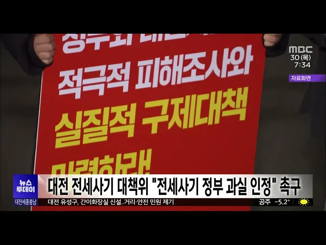 뉴스투데이 뉴스데스크뉴스투데이뉴스데스크 VOD(전체 다시보기)뉴스투데이 VOD(전체 다시보기)유튜브뉴스페이스북 뉴스카카오톡 뉴스인스타그램 뉴스 prev 2023.11.30 - 목요일 next '울산시장 선거 개입' 황운하 의원 '징역 3년'/투데이 ◀ 앵 커 ▶대전 중구를 지역구로 둔 황운하 국회의원이 지난 2017년 울산경찰청장 재직시절 울산시장 선거에 개입했다는 혐의로 기소된 재판 1심에서 징역 3년이 선고됐습니다. 황 의원은 검찰의 표적수사... 박선진 대전 전세사기 대책위 "전세사기 정부 과실 인정" 촉구 대전 전세 사기 피해자 대책위원회가'전세 사기는 사거래 영역이어서 사회적 재난이라는 데 동의하지 않는다'고 발언한 원희룡 국토교통부 장관이 공식 사과할 것과 함께 정부의 과실 인정을 촉구했습니다... 고병권 조경태 국민의힘 뉴시티 위원장 "6-7년 후 충청 뉴시티 출범" 조경태 국민의힘 뉴시티프로젝트 특위 위원장이 첫 지방 일정으로 대전을 찾아충청권 뉴시티 출범 가능성이 유력하다고 밝혔습니다.조 위원장은 대전과 세종, 충남·북이 내년 특별연합체 출범을 추진하고 ... 조형찬 원자력연, 중·저준위 방폐물 525드럼 연내 반출 한국원자력연구원에 보관 중인 중·저준위 방사성폐기물 286드럼이오늘(투: 어제) 경주 최종처분장으로 반출됐습니다. 대전시에 따르면, 원자력발전소 등에서 사용된작업복과 장갑 등의 폐기물이 원자력규... 조형찬 터미널 정류소 화장실 불편..설치는 하지만/투데이 ◀ 앵 커 ▶지은 지 25년 된 대전 도룡동 터미널 정류소는 인천공항행 고속버스 등이 오르내리는 경로로이용객이 많지만 화장실이 없어 불편하다는 민원이 많은데요. 터미널 측은 경영난을 이유로 화장실 ... 최기웅 충남 6곳, 노인 보행자 교통사고 고위험 지점 선정 노인 보행자 교통사고 발생이 높을 것으로 예측되는 전국 60개 고위험 지점에공주와 부여 등 충남 6곳이 포함됐습니다.행정안전부가 노인복지시설 등의 위치와 교통사고 자료 등을 분석해 선정한 고위험 ... 김윤미 충남도, 다음 달부터 한랭질환 응급실 감시체계 가동 충남도는 다음 달부터 내년 2월까지 한랭질환 응급실 감시체계를 가동합니다. 한랭질환은 추위가 직접 원인이 돼 인체에 피해를 줄 수 있는 질환으로 저체온증과 동상, 동창 등이 있습니다. 도는 이 기간 ... 최기웅 대전시 우주산업 육성 비전 선포식 대전시가 내년부터 5년 간 3,500억 원을 투입해 우주산업을 육성하기로 하고,미래 우주기술개발 등 5대 분야 20대 전략 추진에 나섰습니다. 시는 어제 대전 이스포츠경기장에서 우주산업 육성 비전 선포식... 조형찬 수험생 위한 특별한 음악회/투데이 ◀ 앵 커 ▶2주 전 수능을 치른 수험생들, 요즘은 3년간의 고등학교 생활을 마무리할 준비를 하고 있는데요. 더 넓은 세상으로 나갈 준비를 하는 고3 학생들을 위한 특별한 음악회가서산의 한 학교에서 마련... 김광연 대전 동구, 가오동 빈 상가건물 공영주차장으로 새 단장 대전 동구가 가오동 상권 활성화를 위해빈 상가 건물을 매입해 공영주차장으로 새 단장하기로 하고,최근 착공해 조성에 속도를 내고 있습니다.내년 3월 준공될 공영주차장은정부 공모사업을 통해 확보한 ... 김윤미 세종시 공동캠퍼스 5개 대학 내년 개교 세종시 공동캠퍼스 입주가 확정된 7개 대학 중 5대 대학이 내년에 문을 엽니다.행정중심복합도시건설청에 따르면, 내년 3월 한밭대를 시작으로9월에는 서울대와 한국개발연구원 국제정책대학원, 충남대, ... 최기웅 '맞춤형 진로교육' 세종교육청진로교육원 개원 세종시 청소년들의 진로 탐색을 돕는세종교육청 진로교육원이 보람동에 문을 열었습니다. 341억 원을 들여 지상 4층, 지하 1층 규모로 세워진 진로교육원에는 신기술을 접목해 미래 일상을 설계해 보는 AI... 박선진 대전·세종·충남 업황전망 일제히 대전 세종 충남지역 업황 현황과 전망이 일제히 하락해, 기업 경영의 어려움이 가중되고 있는 것으로 나타났습니다. 한국은행 대전충남본부에 따르면 11월 중 제조업 업황BSI는 63으로 전달보다 7p 하락했... 조형찬