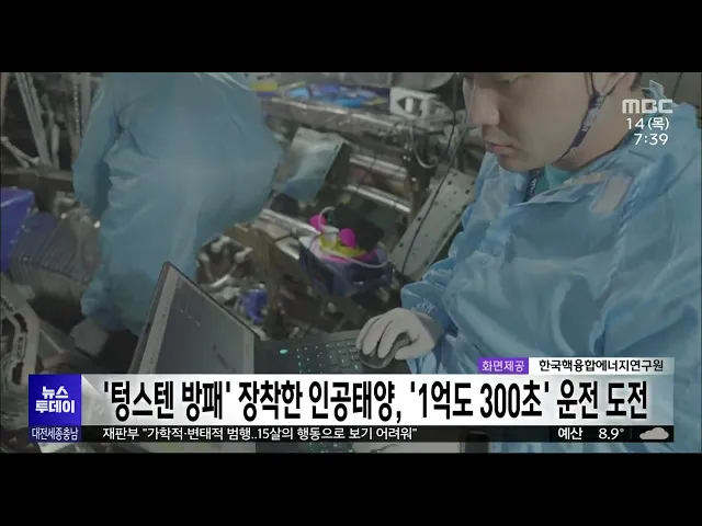 뉴스투데이 뉴스데스크뉴스투데이뉴스데스크 VOD(전체 다시보기)뉴스투데이 VOD(전체 다시보기)유튜브뉴스페이스북 뉴스카카오톡 뉴스인스타그램 뉴스 prev 2023.12.14 - 목요일 next 세종시갑 홍성국 의원 총선 불출마 선언 세종시갑 지역구의 초선 의원인더불어민주당 홍성국 의원이 내년 4월 총선에서 불출마를 선언했습니다.홍성국 의원은 국회에서 기자회견을 열어 후진적인 정치 구조가 가진 한계로 국회의원으로서 성과를 ... 이승섭 진보당 대전 총선 출마 후보들 합동 기자회견 22대 총선 대전 지역 출마를 선언한 진보당 후보들이 합동 기자회견을 열고,정권 심판과 함께 민주주의 완성을 위한 개헌의 필요성을 주장했습니다. 서구을 출마를 선언한 유석상 예비후보는 내년 총선은 ... 조형찬 정의당, KB국민은행 콜센터 상담사 고용 보장 촉구 정의당 대전시당은 성명을 내고 최근 KB국민은행 대전지역 콜센터 상담사 240여 명이 해고통지를 받은 것과 관련해 KB 국민은행이 고용을 보장해야 한다고주장했습니다.이들은 성명을 통해 콜센터의 모든 ... 고병권 대전 '기대와 과제' 쌓인 한해 /투데이 ◀ 앵 커 ▶올 한 해를 키워드로 돌아보는기획보도, 오늘은 민선 8기 대전시의 한해를 짚어봅니다.올해 대전시는 나노반도체 국가산단 선정,우주산업 클러스터 구축사업 예비타당성조사면제 등 굵직한 성과... 최기웅 학생인권조례 폐지, '민주주의에 대한 도전' 내일 충남도의회에서 국민의힘 주도로 학생인권조례안이 폐지될 것으로 전망되는 가운데, 충남학생인권위원회가 민주주의에 대한 심각한 도전이라며 반대 성명을 냈습니다. 인권위원회는 학생 인권조례안... 고병권 '텅스텐 방패' 장착한 인공태양, '1억도 300초' 운전 도전 인공태양으로 불리는 한국형 초전도 핵융합연구장치 'KSTAR'가 텅스텐 소재의 새로운 장치를 장착해 1억도 초고온에서 300초 운전에 도전합니다.핵융합에너지연구원은 초고온에서의 장시간 플라스마 실험... 김윤미 중이온 가속기 '라온' 내년부터 연구 활용…과제 공모 시작 1조 5천억 원이 투입돼 '단군 이래 최대 기초과학 프로젝트'로 불리는 한국형 중이온 가속기 '라온'을 활용한 연구가 내년부터 시작됩니다.기초과학연구원은 내년도 라온 빔을 활용할 연구 과제를 다음 달... 김윤미 버려지던 '배액' 비료로 순환/투데이 ◀ 앵 커 ▶최근 딸기와 토마토 같은 작물은 상당수가 수경재배 방식으로 키워지고 있는데요. 이때 양액을 공급하고 남은 배액이 그대로 배출돼 환경오염의 또다른 주범으로 꼽혔는데요.이를 재활용하는 배... 조형찬 KTX 천안아산역에 전국 최대 규모 복합환승센터 건립 KTX 천안아산역에 전국 최대 규모복합환승센터가 들어섭니다. 충남도는 'KTX 천안아산역 광역복합환승센터 지속가능한 구축 모델 마련을 위한 업무협약'을 맺고 2029년까지 민간자본8천693억 원을 유치해 ... 최기웅 서산공항 건설 본궤도..2028년 개항 목표 충남도 숙원 사업인 서산공항 건설 사업이오는 2028년 개항을 목표로 본궤도에 올랐습니다.충남도와 서산시는 공항 건설 비용을 484억 원으로 낮춰 정부의 예비타당성조사 없이추진하도록 사업 계획을 변... 이승섭 세종시, 전국 특광역시 최초 농업인 수당 지급 세종시가 전국 특광역시 가운데 처음으로농업인 수당 31억 5천만 원을 지급했습니다.대상은 천㎡ 넘는 농지를 3년 이상 경작한 농민 5천2백여 명으로, 지역화폐로 1년에 60만 원이 지급됩니다.세종시는 내... 이승섭 충남 관광객 10% 이상 증가...독립기념관 제일 많이 찾아 올해 9월까지 충남을 찾은 관광객이 지난해보다 10% 이상 증가한 것으로 나타났습니다.한국문화관광연구원이 발표한 주요 관광지점 입장객 통계 자료에 따르면 지난 9월 기준 누적 충남 관광객은 2천197만... 최기웅 "15살의 범행으로 보기 어려워"‥여성 납치 성폭행 중학생에 중형 /투데이 ◀ 앵 커 ▶지난 10월 충남 논산에서중학생이 여성을 납치해 성폭행한 사건이 있었습니다.구속 기소된 이 중학생에 대한1심 판결이 어 있었는데,법원은 소년범에게 내릴 수 있는법정 최고형인 징역 장기 10... 최기웅