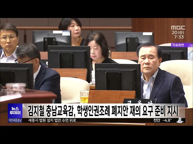 뉴스투데이 뉴스데스크뉴스투데이뉴스데스크 VOD(전체 다시보기)뉴스투데이 VOD(전체 다시보기)유튜브뉴스페이스북 뉴스카카오톡 뉴스인스타그램 뉴스 prev 2023.12.20 - 수요일 next 휴게소에 잠시 멈췄는데‥타고 있던 택시 빼앗아 달아난 20대 검거/투데이 ◀ 앵 커 ▶20대 택시 승객이고속도로 휴게소에서 갑자기 강도로 돌변해택시를 훔쳐 타고 달아났습니다.이 승객은경찰과 40여 분 추격전을 벌인 끝에 체포됐습니다.김성국 기자입니다.◀ 리포트 ▶지난 17일 ... 최기웅 김지철 충남교육감, 학생인권조례 폐지안 재의 요구 준비 지시 김지철 충남교육감이 지난 15일 도의회가 충남학생인권조례 폐지안을 본회의에서 의결한 것과 관련해 재의 요구 절차를 준비해 줄 것을 지시한 것으로 확인됐습니다. 김 교육감은 제정된 지 3년밖에 되지 ... 김태욱 서산 시내버스 운영 중단 사태 장기화 조짐 서산 시내버스 운행 중단 사태가 장기화될 조짐을 보이고 있습니다. 서산시는 그제 서령버스 대표에게 시청에서 만나 협의할 것을 요청했지만 응하지 않았고, 담당 공무원이 업체를 방문했지만 대표를 만... 김태욱 충남도, 소 럼피스킨 방역대 두 달만인 오늘 모두 해제 충남도가 오늘부터 소 럼피스킨 발생 상황 대응을 종료합니다.도는 소 럼피스킨 추가 발생위험이 없다고 보고서산 등 9개 시·군, 21개 방역대에 대한 이동제한 조치를 모두 해제하고 농장 소 거래도 전면 ... 김태욱 보건소장 "의사가 맡아야" vs "적격자 아냐"/투데이 ◀ 앵 커 ▶최근 대전 서구 보건소장 임용을 놓고 의사협회와 해당 자치구가 정면으로 충돌하고 있습니다. 의협과 일선 자치구가 부?치는 상황자체가 이례적인 일인데, 보건소장 임명을 둘러싸고 갈등이 ... 고병권 정용래 구청장, 민주당 유성을 지역위원장 직무대행 더불어민주당이 이상민 의원 탈당으로 공석이 된 대전 유성을 지역위원회를 사고위원회로 지정하고, 정용래 유성구청장을 직무대행으로 지명했습니다. 정 청장은 내년 총선후보가 확정될 때가지 유성을 지... 조형찬 한국전통문화대 교수 갑질 의혹에 문화재청 내부 조사 착수 최근 부여에 있는 한국전통문화대학교에서 특정 교수가 학생들에게 갑질을 했다는 의혹이 불거지면서, 문화재청이 내부 조사에 착수했습니다.지난 13일 학교 게시판과 온라인 커뮤니티에는 해당 교수가 학... 뉴스팀 "노루벌 국가정원 실현 가능성 의문" 대전시가 서구 흑석동 일대에 조성하려는노루벌 국가정원 조성사업이 졸속 추진으로 현실성이 떨어진다는 우려의 목소리가 나왔습니다.어제 더불어민주당 대전광역시당 정책위원회가 마련한 토론회에서 김... 김지혜 본회의 코앞...지역 현안 '국비' 확보는?/투데이 ◀ 앵 커 ▶오늘과 오는 28일 여야가 각각 예산안과 민생 법안을 처리하기 위한 본회의가 예정돼 있는데요. 예산 심사를 둘러싼 여야 대치 속에충청권 주요 현안도 산적해 있습니다.특히 대전특별법, 세종... 최기웅 '만화로 보는 시니어 전성시대' 전시회 천안시청서 개막 ‘만화로 보는 시니어 전성시대’ 전시회가 천안시청에서 개막해 오는 27일까지 계속됩니다. 이번 전시회는 천안시와 대전MBC, 한국만화가협동조합이 협업해 진행했으며, 지역 청년 작가가 어르신이 쌓아오... 최기웅 대전도시공사, '음성 중심' 한파예보 시범 운영 대전지역 주거 취약계층을 대상으로 내년 2월까지 음성 중심의 한파 예보 서비스가 시범 운영됩니다. 대전도시공사와 대전지방기상청은 겨울철 위험 기상이 예상될 때 아파트 관리사무소 안내방송으로 입... 김지혜 유망기술 6개사, 세종에 1,350억 투자 인공지능과 바이오 등에 유망기술을 보유한 6개 회사가 세종테크밸리에 1,350억 원의 투자를 약속해, 앞으로 생산시설 건립 등으로466개의 일자리 창출이 기대됩니다. 세종시는 관련 기업과 투자양해각서... 조형찬 세종시, 안전관리 미흡 사례 139건 확인·후속 조치 세종시 안전감찰 전담기구협의회가 올해 관내 안전 관리 미흡 사례 139건을 확인해 후속 조치를 완료했다고 밝혔습니다.협의회는 다중이용시설 안전관리 이행실태, 자동심장충격기 관리실태, 여름철 야영... 김지혜