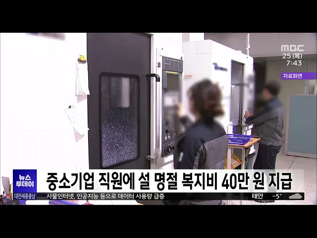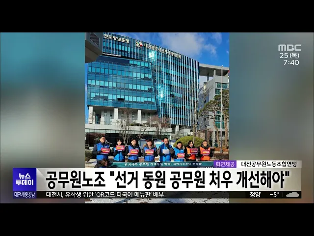 뉴스투데이 뉴스데스크뉴스투데이뉴스데스크 VOD(전체 다시보기)뉴스투데이 VOD(전체 다시보기)유튜브뉴스페이스북 뉴스카카오톡 뉴스인스타그램 뉴스 prev 2024.1.25 - 목요일 next 한 가게 수조 밝아지더니 스파크 '팍팍'..서천 시장 발화 영상 단독/투데이 ◀ 앵 커 ▶200개가 넘는 점포가 모두 타버린충남 서천 시장에서는 오늘(투데이 어제) 합동감식이 이뤄졌습니다. 피해범위가 넓고 모두 타버린 탓에정확한 화재 원인을 찾기 어려웠는데요, 오늘(투데이 어제... 최기웅 금융감독원, 서천 특화시장에 현장 금융상담센터 가동 금융감독원 대전세종충남지원은 서천 특화시장 화재로 피해를 입은 가구와 소상공인을 위한 현장 금융상담센터 가동에 들어갔습니다. 피해를 입은 지역민들은 현장 금융상담센터에 방문해 금융지원 관련 ... 최기웅 대전지방국세청, 서천 피해 상인들 세정 지원 대전지방국세청은 서천특화시장 화재로 피해를 입은 상인 등 사업자들의 피해 복구를 위해 세정 지원에 나서기로 했습니다. 이에 따라 피해 사업자들의 부가가치세 신고 및 납부 기한과 면세사업자 사업장... 최기웅 때마다 바뀌는 논리..주먹구구식 이전?/투데이 ◀ 앵 커 ▶한전기술 산하 대전 원자로 설계개발본부를 경북 김천으로 이전하려는 움직임과 그 파장 대전MBC가 연속해서 보도하고 있는데요. 한전기술은 과거 두 차례 원설 본부 직원 가운데 일부를 김천으... 최기웅 국민의힘 충청권 전략 공천 지역 최대 5+@ 될 듯 국민의힘 공천관리위원회가과거 국회의원 선거에서 3번 연속 패배한 곳을전략 공천 지역으로 하겠다고 발표함에 따라대전과 세종 충남은 최대 5곳 이상이 포함될것으로 보입니다.대전의 경우대전 서구 갑... 고병권 '공직선거법 위반' 박경귀 아산시장 내일 대법원 선고 2년 전, 지방선거에서 공직선거법 위반 혐의로 기소돼 1심에 이어 항소심에서도 당선무효형을 선고받은 박경귀 아산시장에 대한 대법원 판단이 오늘 오전에 나옵니다.박경귀 시장은 지난 지방선거에서 상... 이승섭 시내버스 노선 개편.."일부 지역 소외"/투데이 ◀ 앵 커 ▶오는 27일부터 천안시 시내버스 노선 체계가전면 개편됩니다.신규개발지역에 노선을 확대하고급행과 간·지선, 순환 체계를 수립해이용 편의성을 높이겠다는 건데요.그런데 일부 지역 주민들은 ... 김광연 유학생 위한 'QR코드 다국어 메뉴판' 배부 대전시가 해외 유학생이 밀집한 유성구 온천2동과 동구 자양동 식당 60곳에 QR코드 다국어 메뉴판을 무상 배부했습니다.QR코드 메뉴판은 유학생들이 스마트폰으로 촬영하면 영어와 중국어, 베트남어, 러시... 조형찬 공무원노조 "선거 동원 공무원 처우 개선해야" 대전공무원노동조합연맹은 대전시선거관리위원회 앞에서 기자회견을 열고오는 4월 총선을 앞두고, 선거 사무를 수행하는공무원 처우를 개선해야 한다고 주장했습니다.노조 측은 임시공휴일인 선거일에공무... 이승섭 "1초에 영화 5.6편 전송" 초고속 광통신 기술 나왔다/투데이 ◀ 앵 커 ▶초고속 통신에 인공지능까지 더해지면서점점 더 많은 양의 데이터를 빠르게 보내는 기술이 중요해지고 있는데요.2시간짜리 영화 대여섯 편을단 1초 만에 보내거나 내려받을 수 있는초고속 광통신... 김윤미 세종시 작년 대중교통 이용객 증가 지난해 세종시 시내버스 이용객은 천 957만 명으로 전년보다 11% 이상 증가한 것으로 나타났습니다.이는 코로나 팬데믹 발생 이전인 2019년 보다 14% 늘어난 것으로, BRT 증차와 운행 횟수 증회, 광역노선... 김지혜 충남공동근로복지법인, 중소기업 직원에 설 명절 복지비 40만 원 지급 충남공동근로복지법인이 오는 29일부터 사흘간 도내 중소기업 직원 1명 당 40만 원의 설 명절 복지비를 지급합니다.복지법인은 참여 중소기업과 도 그리고 각 시군에서 낸 출연금과 정부지원금으로 기금을... 김태욱