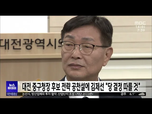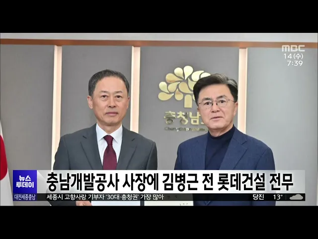 뉴스투데이 뉴스데스크뉴스투데이뉴스데스크 VOD(전체 다시보기)뉴스투데이 VOD(전체 다시보기)유튜브뉴스페이스북 뉴스카카오톡 뉴스인스타그램 뉴스 prev 2024.2.14 - 수요일 next 버스서 승객 난동·폭행 잇따라/투데이 ◀ 앵 커 ▶버스 기사들을 상대로 한 폭행 사건이 끊이지 않고 있습니다.다짜고짜 내려달라며 운전대를 잡은 기사를 때리는가 하면 술에 취한 승객의 난동까지이유도 다양한데, 기사는 물론 승객들의안전이 ... 뉴스팀 과기정통부 "카이스트 과기의전원 신설 추진" 최근 의대 정원 확대를 발표한 정부가 카이스트에 의사과학자 양성을 위한 과학기술의학전문대학원을 신설하겠다는 방침을 공식화했습니다.이종호 과기정통부 장관은올해 주요 정책 추진계획을 발표하면서... 김윤미 '공직선거법 위반' 박경귀 아산시장 파기환송심 다음 달 시작 1·2심에서 당선무효형이 선고됐으나 대법원이 2심 법원으로 돌려보낸 박경귀 아산시장의 공직선거법 위반 혐의 사건 파기환송심이 다음 달 26일 시작됩니다.대법원은 지난달 하급심에 절차상 위법이 있었... 김광연 세종 문화관광재단 대표이사 '인사청문회' 요구 잇따라 세종시의회와 세종참여자치시민연대가 최근 임명된 박영국 세종 문화관광재단 대표이사의 인사 청문회를 요구했습니다.이들은 문화관광재단 대표의 철학은 지역 경제와 세종시민의 복리에 미치는 영향이 ... 고병권 "방위산업체 반대" 주민 반발/투데이 ◀ 앵 커 ▶국방산업의 메카를 표방한 논산시가방산 기업을 유치하는 데 박차를 가하고 있습니다.그런데, 한 방위산업체가 들어서기로 한지역의 주민들이 사고 위험 등을 이유로 기업의 입주를 격렬히 반대... 이승섭 천안시, 노인복지 시행계획 수립..노인 인구 13.18% 지난달 기준 천안시 노인 인구가 전체 인구의 13.18%에 달하는 가운데, 시가 저소득 노인 지원 강화와 고령친화적 인프라 구축 등 5대 목표 33개 사업으로노인복지 시행계획을 수립했습니다.시는 의사와 ... 김광연 천안시, 시청 민원실에 인공지능 방역 로봇 도입 천안시는 민원인이 쾌적한 환경에서 업무를 처리할 수 있도록 시청 민원실에 인공지능 방역 로봇을 도입했습니다.카메라와 센서가 부착된 이 로봇은 사물을 인지하고 자율 주행하며공기 정화뿐 아니라 바... 김광연 세종시 고향사랑 기부자 '30대·충청권' 가장 많아 지난해 세종시가 모금한 고향사랑 기부금은1억 4천500만 원으로 기부자 연령대는 30대, 지역별로는 충청권이 가장 많았던 것으로 나타났습니다.세종시는 지난해 고향 사랑 기부에 동참한기부자는 천 587명... 고병권 '텃밭' 수성 VS '험지' 도전/투데이 ◀ 앵 커 ▶4.10 총선 관련 기획보도 순서입니다.상대 당이 오랫동안 당선된 지역, 이른바 험지에서 승리한다면 단순히 한 석 이상의 의미를 가지겠죠?이 때문에 충청권에서도 여야 가릴 것 없이 이른바 험... 고병권 대전 중구청장 후보 전략 공천설..김제선 "당 결정 따를 것" 더불어민주당이 영입한 김제선 전 세종시 교육감 비서실장이대전 중구청장 재선거 전략 공천설과 관련해중앙당 결정에 따를 것이라는 공식 입장을 내놨습니다.김 전 비서실장은 대전시의회에서기자회견을 ... 고병권 충남개발공사 사장에 김병근 전 롯데건설 전무 충남도가 제7대 충남개발공사 사장으로김병근 전 롯데건설 전무를 임명했습니다.예산 출신인 김 신임 사장은 34년간 롯데건설에서 근무하며건축·주택공사 부문장 등을 맡아시공과 사업관리 업무를 해왔습... 김태욱 대전시, 대학생 학자금 대출 이자 전액 지원 대전시가 올해 1억 6천만 원의 예산을 배정하고 대학생 학자금 대출 이자 전액 지원에 나섭니다. 시는 대상자를 55살까지의 만학도로 넓혔으며, 오는 10월까지 대전청년포털에서 신청을 받아 학자금 대출 ... 조형찬 '한 번에 360다발' 사용후핵연료 대량 운반/투데이 ◀ 앵 커 ▶원자력발전에 쓰인 사용후핵연료는방사선과 함께 뜨거운 열을 내뿜기 때문에용기에 담아 안전하게 운반해야 하는데요.한 번에 360다발씩, 기존보다 3배 더 많은 양을안전하게 나를 수 있는 장비... 문은선 2026년 발사할 '대전 위성' 컨소시엄 모집 대전 기업이 만든 소형 위성이 오는 2026년 우주로 발사될 전망입니다. 대전시는 한 달간 2026년까지 초소형 큐브위성과 개발과 발사를목표로 하는 대전 위성 프로젝트를 수행할 컨소시엄 참여 기업을 모... 조형찬 독립기념관, 정보통신기술 활용 스마트 기념관으로 탈바꿈 독립기념관이 지난 2020년부터 SK텔레콤과 함께 실감형 콘텐츠를 개발하는 등정보통신기술을 활용한 스마트 기념관으로 탈바꿈하고 있습니다.기념관 전역에는 5GX 망 인프라를 구축해대용량, 고화질 콘텐... 김광연 태안군 지난해 1,775만 명 방문..꽃지해수욕장 최다 지난해 태안에는 해수욕장에 가장 많은 관광객이 찾아왔고 또 지역별로는 경기도에서 가장 많이 온 것으로 분석됐습니다. 태안군이 한국관광공사 데이터를 분석한 결과지난해 1,775만여 명이 태안을 찾았... 김태욱