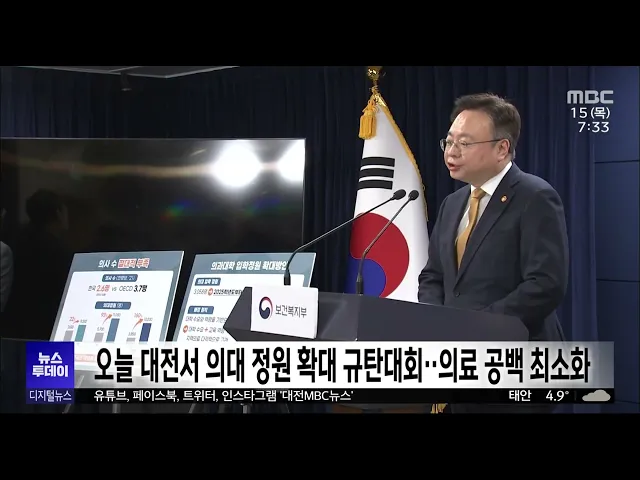 뉴스투데이 뉴스데스크뉴스투데이뉴스데스크 VOD(전체 다시보기)뉴스투데이 VOD(전체 다시보기)유튜브뉴스페이스북 뉴스카카오톡 뉴스인스타그램 뉴스 prev 2024.2.15 - 목요일 next 세수감소에도 월급 올리겠다는 의원들/투데이 ◀ 앵 커 ▶지방자치법 시행령 개정에 따라지방의회가 너도나도 의정활동비 인상을 추진하고 있습니다.대전시의회와 5개 구의회도 상한액 최대치인 월 4~50만 원을 올릴 계획인데세수감소로 지자체마다 재정... 김지혜 원설본부 이전, 지연 가능성 제기 대전MBC가 연속보도한한국전력기술 원자력설계개발본부의 김천 졸속 이전이 당초 계획된 3월보다 지연될 가능성이 제기됐습니다.산업통상자원부 관계자는 취재진과의 통화에서 "이전 방침이 철회된 것은 ... 박선진 의대 정원 확대 규탄대회 예고..의료 공백 최소화 대전시의사회가 오늘 낮,국민의힘 대전시당 앞에서 정부의 의과대학 정원 확대 방침을 규탄하는집회를 예고한 가운데 지역에서 의료 대란은 없을 전망입니다.대전시의사회는 내일 개인 병원을 운영하는의... 이승섭 준연동형 비례대표제, 따져보니.../투데이 ◀ 앵커 ▶오는 4.10 총선에서 적용될 것으로 보이는 현행 준연동형 비례대표제를 놓고 여야 모두 위성정당 등 대응 마련에 한창이죠.준연동형 비례대표제는 무엇이고,각 당의 노림수는 무엇인지 고병권 기... 고병권 민주당, 대전 동구 총선 2인-> 3인 경선으로 변경 더불어민주당 최고위원회가 대전 동구의 4.10 총선 후보 경선 방식을 2인 경선에서 3인 경선으로 변경했습니다. 민주당은 당초 컷오프 된 정경수 예비후보의 재심 신청을 인용해 3인 경선과 결선 투표 도... 고병권 대전시교육청, 45개 학교서 늘봄학교 시범운영 대전시교육청이 새 학기부터 시범 운영하려던 늘봄학교가 애초 70개 학교에서 45개 학교로 줄었습니다.대전교육청은 공간과 교육 여건 등이 부족해늘봄학교의 시범 운영을 줄이는 대신,나머지 25개 학교에... 뉴스팀 대전서 AI 돌봄 로봇이 잇따라 생명 구해 최근 대전에서 스마트 돌봄 로봇이잇따라 생명을 구해 관심을 받고 있습니다.대전 대덕구는 지난달 26일 두통을 호소하던 70대가 돌봄 로봇 AI 스피커를 향해 구조 요청을 했고, 119에 신고가 접수돼 병원... 문은선 택시 기사 살해범 징역 30년..유족 반발/투데이 ◀ 앵 커 ▶지난해 10월 아산의 한 도로에서 40대 남성이 70대 택시 기사를 살해한 뒤 태국으로 도주했다 검거됐는데요.1심 법원은 강도살인 등의 혐의로 기소된 이 남성에게 징역 30년을 선고했습니다.유족... 김광연 세종 아파트 화재 일가족 3명 모두 숨져 지난달 14일, 세종시 한솔동의 한 아파트에서발생한 화재로 중태에 빠졌던 일가족 3명이치료 도중 모두 숨졌습니다.화재 당시 전신 화상을 입고 병원으로 옮겨졌던초등학생 딸이 지난달 23일에 숨진 데 이... 이승섭 헤어진 여자친구 찾아가 살해한 50대 중형 대전지법 서산지원 제1형사부가헤어진 여자친구를 집으로 찾아가 흉기를 휘둘러 숨지게 한 혐의로 재판에 넘겨진50대 남성에게 징역 17년을 선고했습니다.피고인은 지난해 9월, 당진에 있는 전 여자친구의... 이승섭 13년째 방치.. 태안 '유령' 리조트/투데이 ◀ 앵 커 ▶태안에 콜로세움 등 유럽을 닮은 휴양시설을 짓겠다며 첫 삽을 뜬 이후공사가 중단돼 13년째 방치된 리조트가있습니다.한 법인이 소유권을 인수했지만8년째 사업을 진행하지 못하고 있고철거 등 ... 문은선 태안군, 소아청소년 제1형 당뇨 지원조례 입법 예고 지난달 태안에서 소아당뇨를 앓는 7살 아이와 부모가 극단적 선택을 한 것과 관련해 태안군이 소아청소년 제1형 당뇨병 환자 지원을 위한 조례안을 입법 예고했습니다. 조례안에는 소아청소년 제1형 당뇨... 김태욱 세종시 문화관광재단 대표이사 임명..시의회 '반발' 세종시의회와 세종참여자치시민연대가세종시문화관광재단 박영국 신임 대표이사에 대한 인사 청문회를 요구한 가운데 재단이 대표이사 임명 동의안을 의결했습니다. 시는 인사 청문 조례는 강제 사항이 아... 박선진 기초과학연-천문연, '우주 진화' 규명 위해 맞손 기초과학연구원과 천문연구원이초기우주와 블랙홀, 우주탐사 등 분야에서'우주 진화'를 규명하기 위해 업무협약을 맺고 천문우주 분야 공동 연구에 나섭니다.이번 협약에 따라 IBS의 슈퍼컴퓨터를 활용해... 김윤미