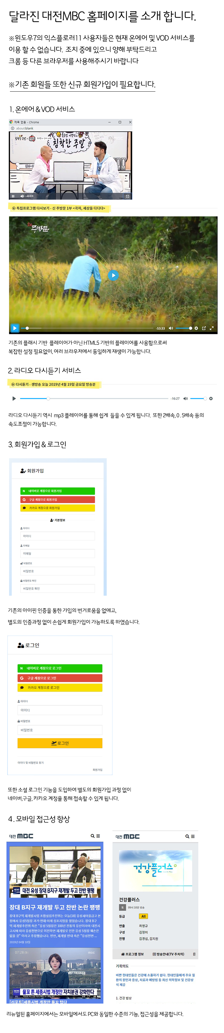 달라진 대전MBC 홈페이지 소개 및 추가 안내 사항 등록일 : 2019-05-02 13:51