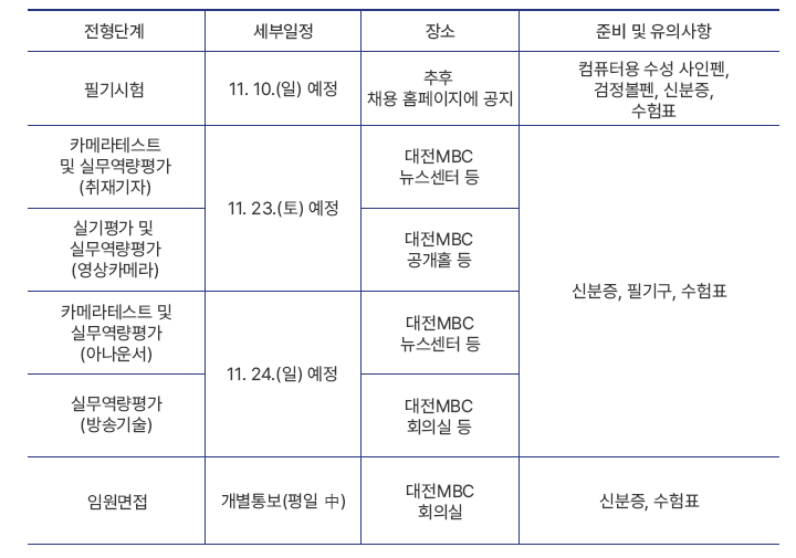 ※ 전형별 합격자 발표는 (http://tjmbc.saramin.co.kr)에 게시합니다.