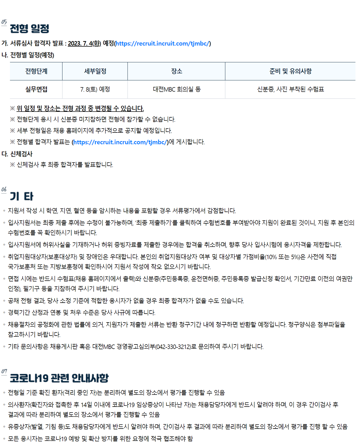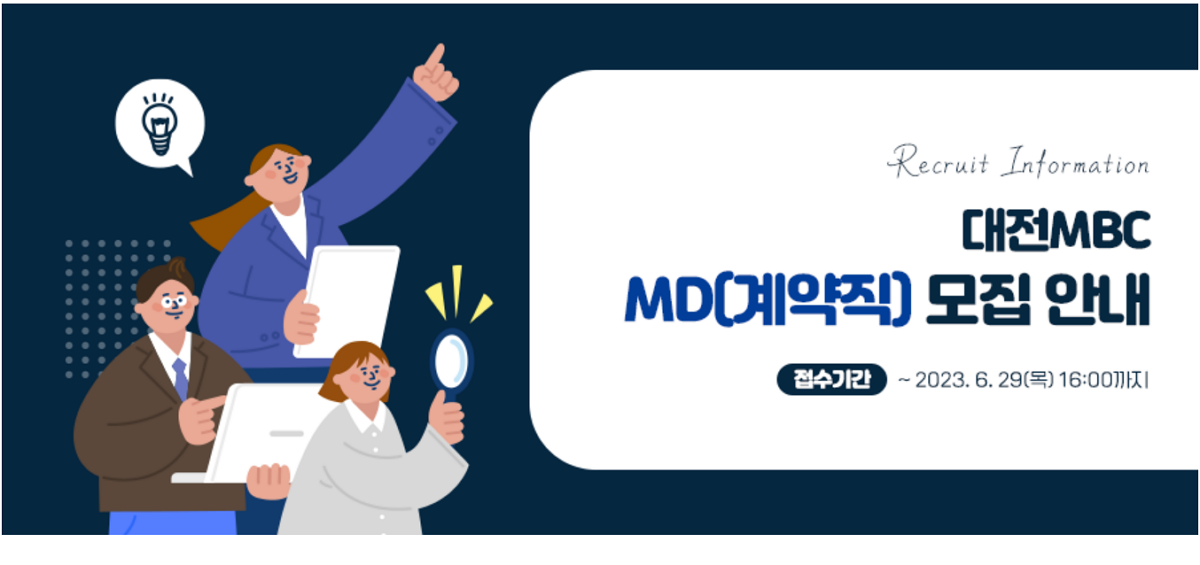 2023 대전MBC MD(계약직) 모집 안내 [마감] 등록일 : 2023-06-21 10:48