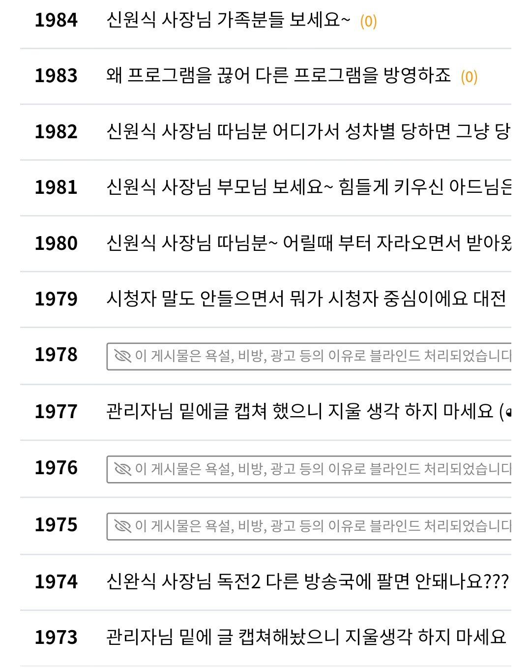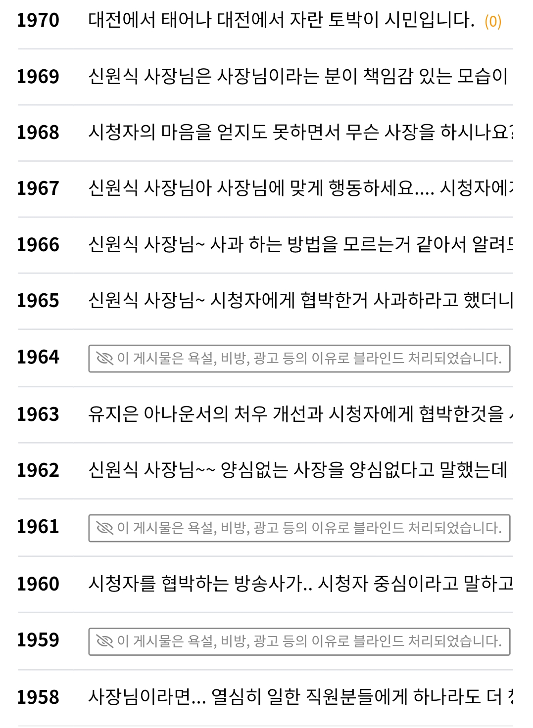 방송국 사장님이란 분은... 시청자에게 사과 한마디 없이... 몰래 몰래 시청자 글을 지우고 있습니다~ 등록일 : 2020-02-22 19:54
