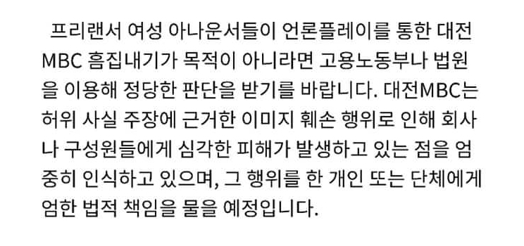 그런데 신원식 사장님은... 작년 10월달에 유지은 아나운서님이 국정감사 참고인으로 발언을 하러 간 당일에 사과하기는 커녕 유지은 아나운서와 시청자에게 협박성 입장문을 발표 하셨습니다!! 같은 사장님인데 어찌 시청자에게 대하는 방법은 이렇게 다를까요??? 신원식 사장님 님은 회사 간부님입니다 잘못을 했으면 당당하게 인정하고 개선 할줄도 아는 모습도 있어야 됩니다