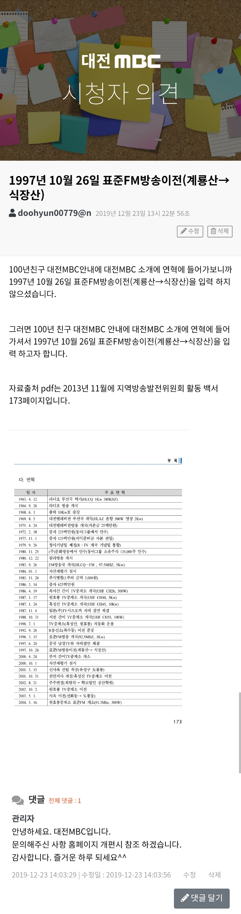 관리자님 밑에 게시글은 12월달에 관리자님이 직접 답변하신 내용 입니다 공지사항에 도배성 게시물은 삭제 한다고 이야기 하셨으니 관리자님 당신이 올린 공지 사항이니 답변된 내용은 지우세요^^