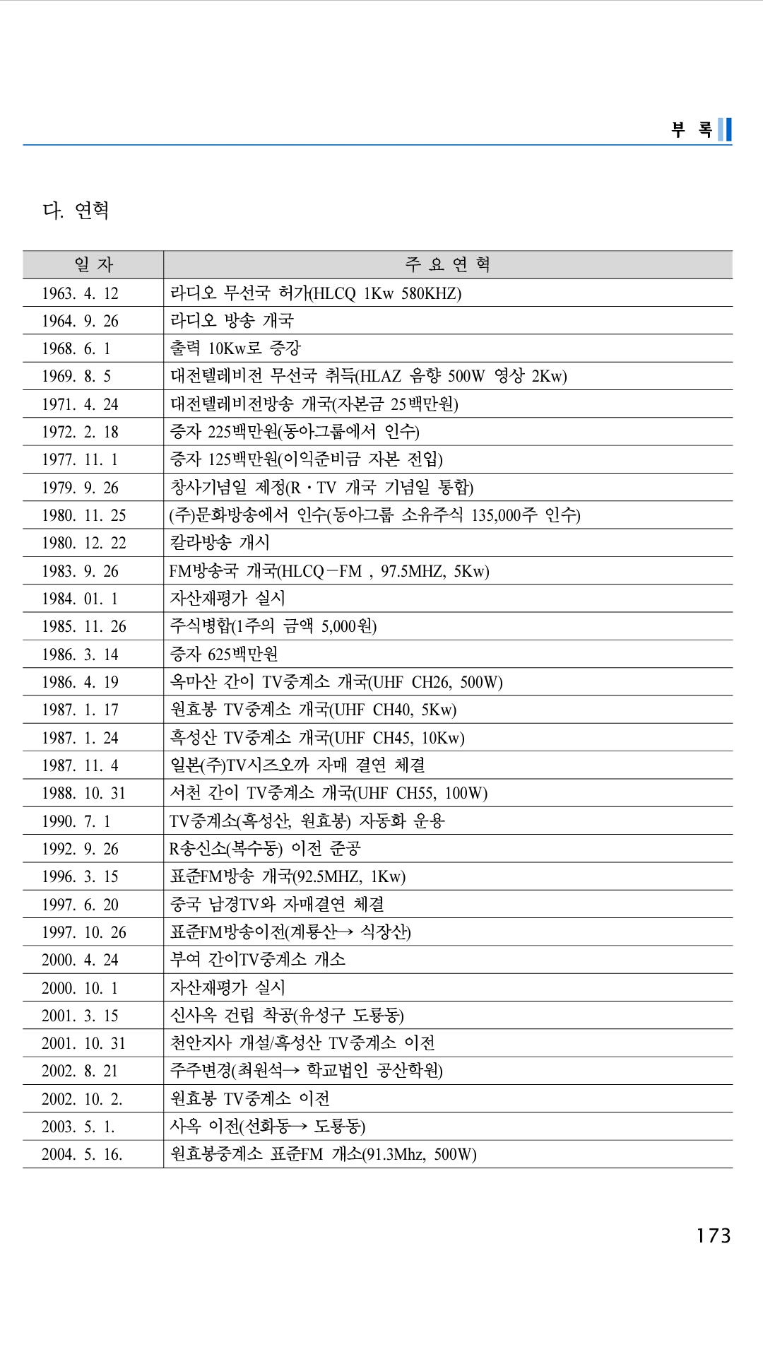 100년친구 대전MBC안내에 대전MBC 소개에 연혁에 들어가보니까 1997년 10월 26일 표준FM방송이전(계룡산→식장산)을 입력 하지 않으셨습니다.