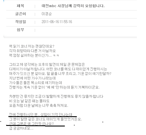 (이 방송을 그렇게 사랑하여 애청하고 시청자 게시판에 글을 쓸 정도의 열성자라면 전 진행자 이름을 모를 리 없