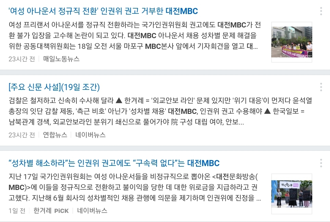 신원식씨 여성아나운서는 당신이 컬렉션 채우는것 마냥 수집하는 장난감이 아닙니다~ 여성아나운서분들도 그 자리에 오기 위해서 피땀을 흘리며 노력해서 아나운서 자리까지 온것입니다~ 그런데 왜 신원식씨는 여성아나운서를 채용해놓구선.. 자신의 말을 안듣거나 2년이 지나면 질렸다고... 다른 여성아나운서분들을 채용하나요?? 당신의 딸. 며느리. 손녀딸 처럼. 여성 아나운서분들도 어느 분의 예쁜딸 입니다~ 어서 인권위의 권고사항 "여성아나운서 정규직 전환과 500만원 위로금 지급 하세요" 신원식씨가 계속 무시하고 모른척 하신다면 당신의 딸 .며느리. 손녀딸도.. 다른 어떤 사장님의 장난감 처럼 2년 동안 일부려 먹다가 짤리겠지요~